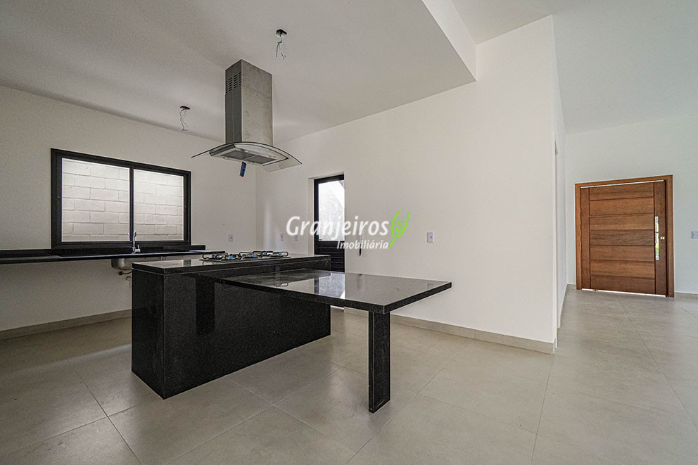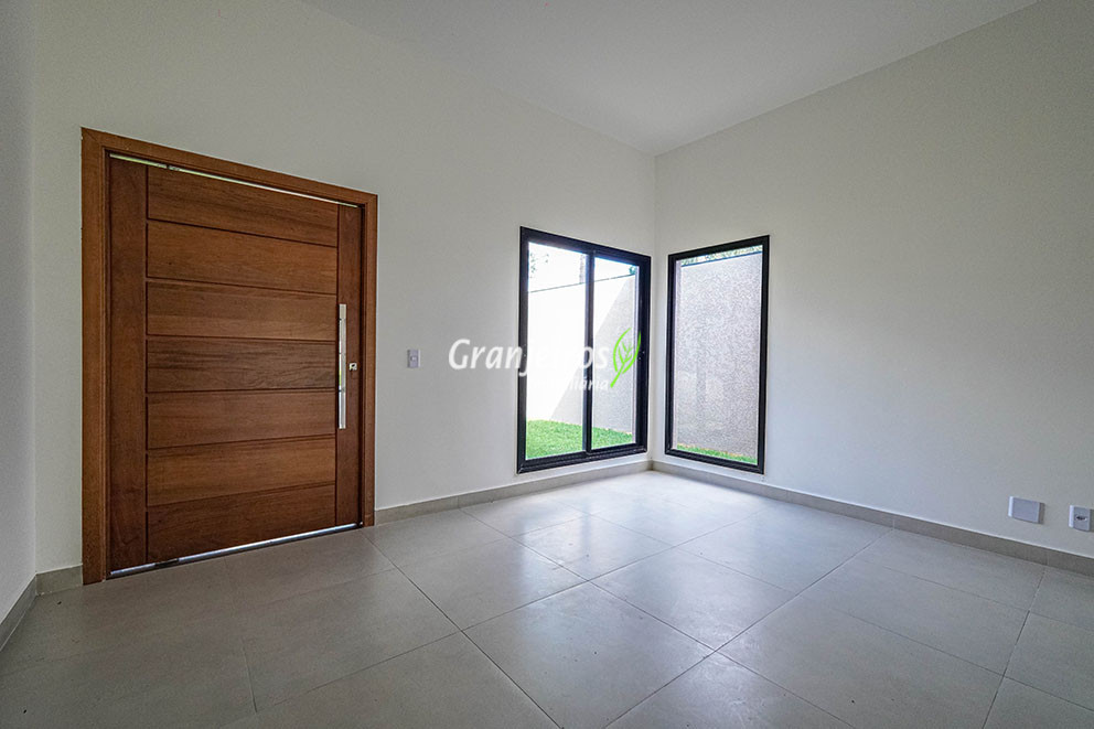 Casa NOVA! térrea, pronta para morar !!! Living espaçoso e amplo com 3,20m de pé direito para 3 ambientes com janelas grandes que deixam o ambiente super claros; Cozinha americana já equipada com cooktop Brastemp e coifa Cadence; Lavabo; 3 suítes amplas com interruptores em paralelo e portas balcão e escritório que pode ser utilizado como um 4º dormitório; Suíte máster com closet e banheiro com duas duchas; Varanda gourmet com churrasqueira à gás, pia e bancada; Piscina de 3m x 5m em alvenaria e revestida com pastilhas Quintal amplo com gramado; Área de serviço com banheiro; Aquecimento de passagem a gás da marca Rinnai; Piso porcelanato em toda casa; Preparação para split na sala, escritório e suítes; Garagem para 3 veículos, sendo 2 cobertas. Casa com a documentação em ordem para financiamento!! Vale a pena conhecer!