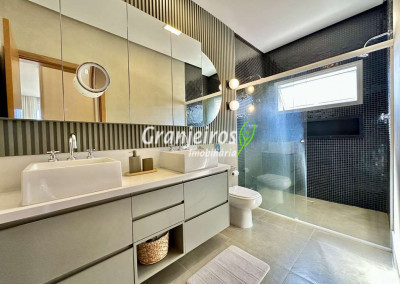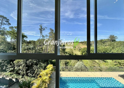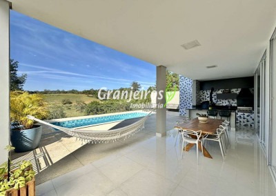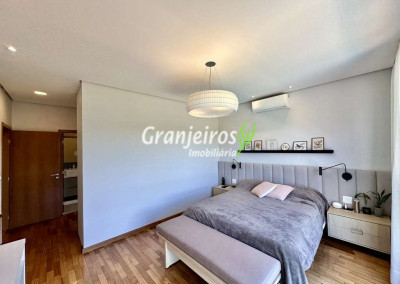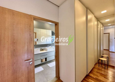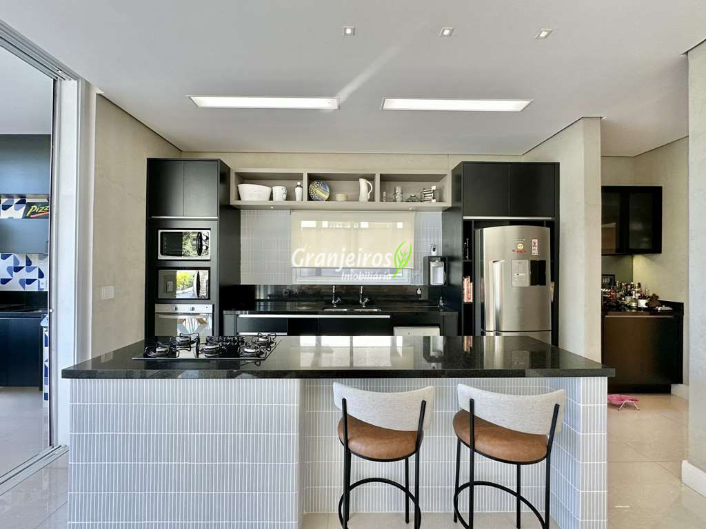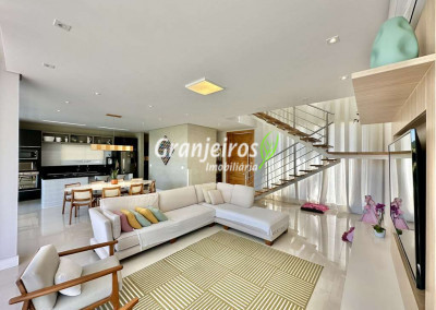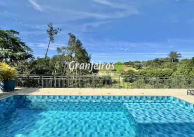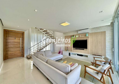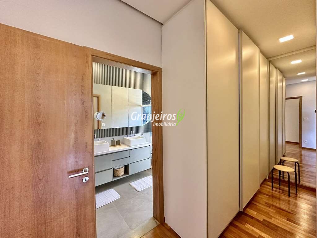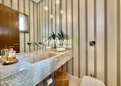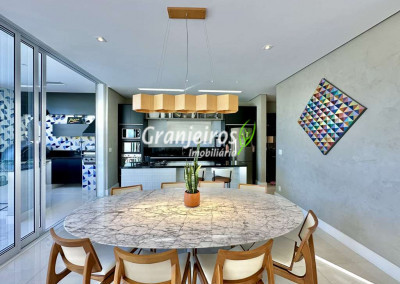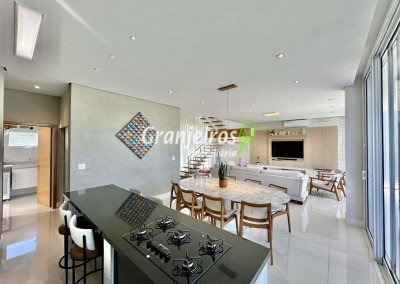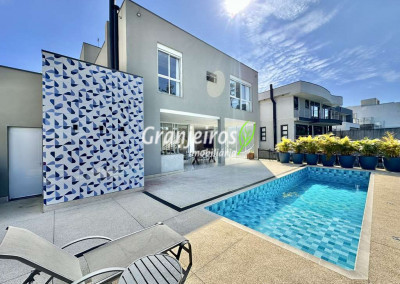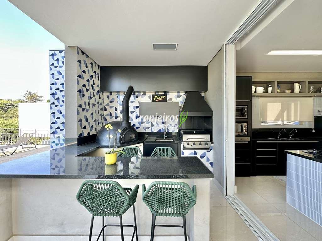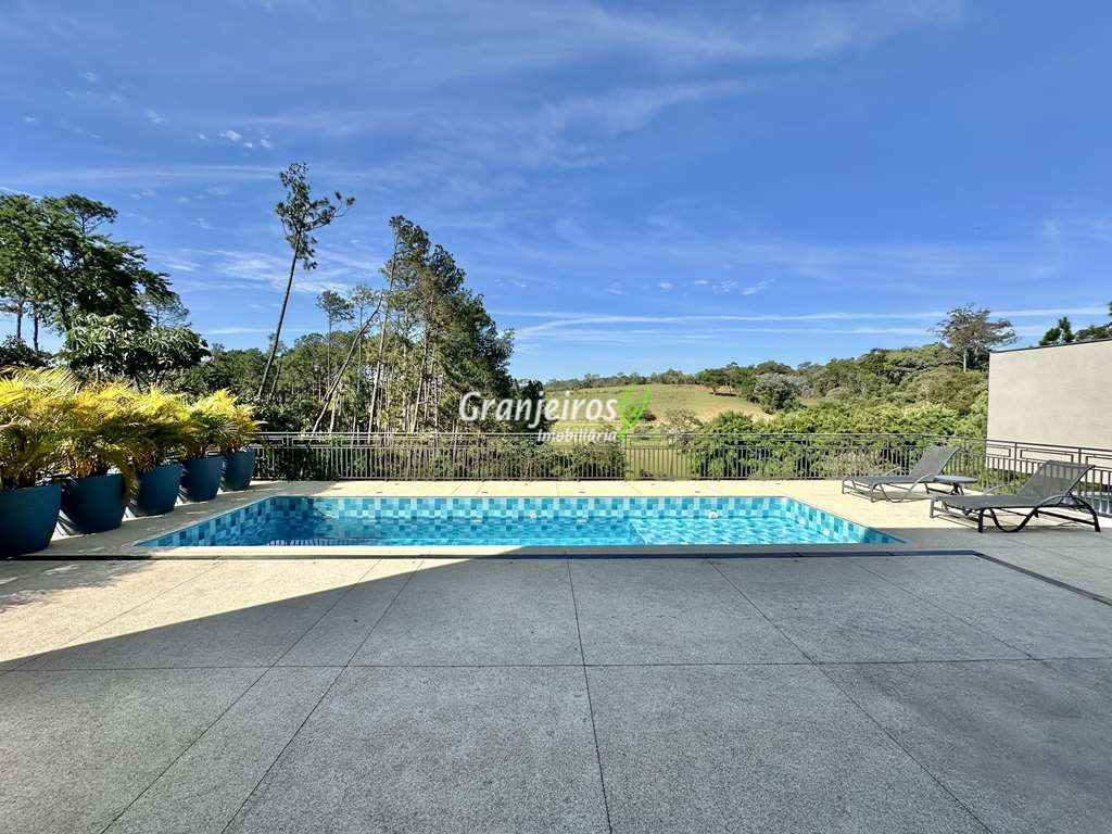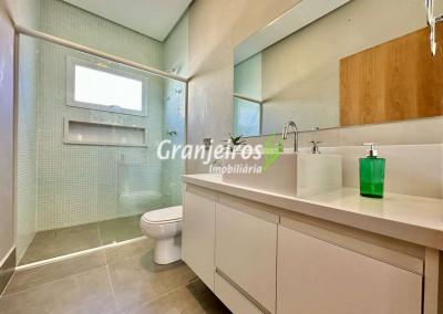 Casa moderna, living integrado ao lazer, completa! Totalmente planejada e equipada. Total privacidade e vista! Condomínio completo excelente. Imóvel repleto de armários planejados. Ar-condicionado em todos os ambientes. Jardim com paisagismo. Living para 6 ambientes integrados, com ar-condicionado Q e F, voltado para varanda Gourmet. Estar, lareira gás, TV, jantar, bar/café e cozinha. Lavabo decorado com tampo em travertino. Área íntima com roupeiro, escritório e 3 suítes. Escritório planejado com porta de correr, ar-condicionado Q e F. 3 suítes com janelas panorâmicas envidraçadas, com persianas elétricas, sendo 1 suíte com espaço para closet e a suíte master com closet maior sr e sra. Cozinha planejada com despensa. Varanda Gourmet integrada, voltada para piscina, com privacidade e vista. Forno de pizza, churrasqueira a gás. Piscina iluminada, preparada para aquecimento com prainha, hidro, grande solarium com vista panorâmica e casa de máquinas. Espaço para hidro e ducha. Garagem para 4 vagas, sendo 2 cobertas.
