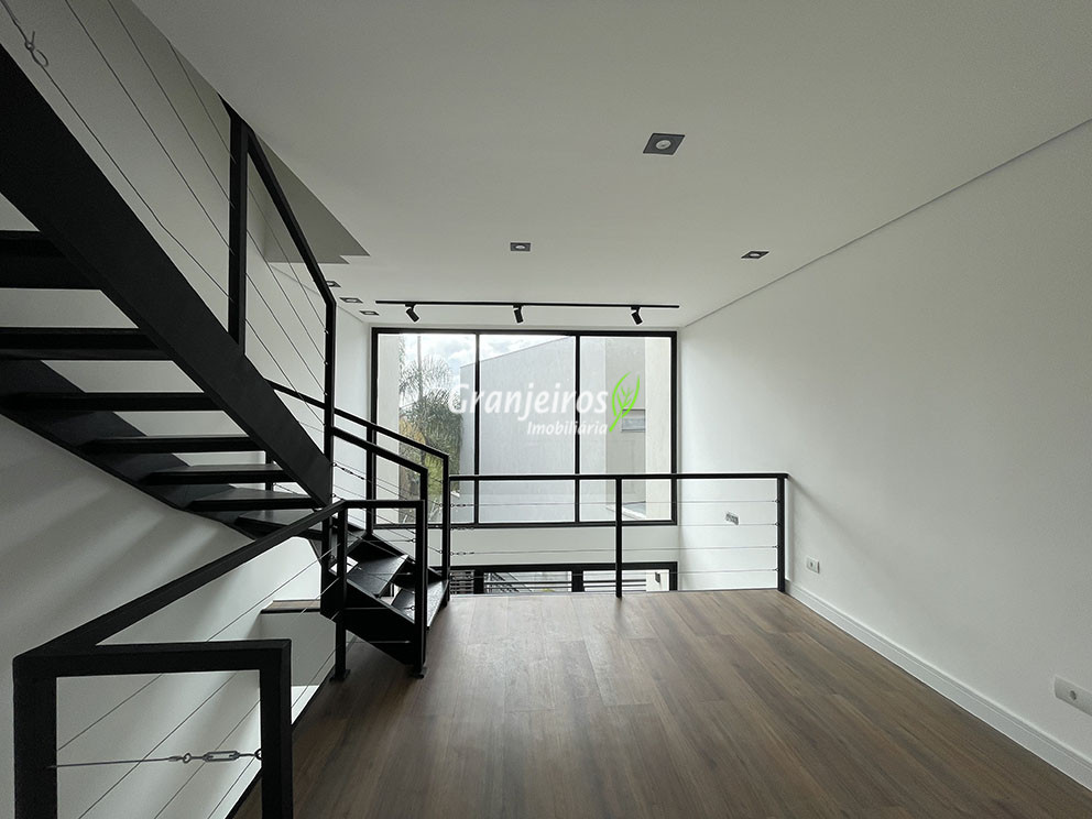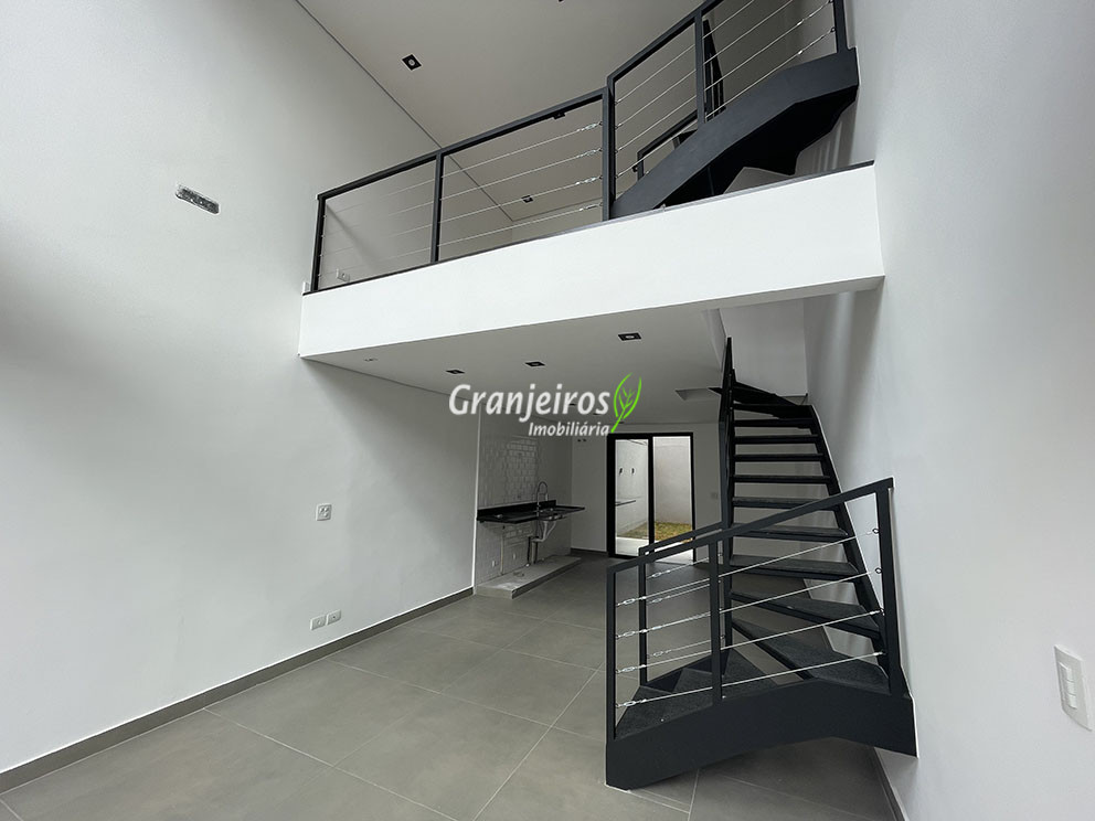 LOFT TRIPLEX MODERNO, COM EXCELENTE ACABAMENTO. O Condomínio GRAN LOFT é o lugar certo para quem quer viver, trabalhar e socializar. Localizado no coração da Granja Viana, com acesso fácil ao melhor da região. Os Moradores do GRAN LOFT tem acesso de pedestre interno exclusivo e direto ao GRAN JARDIM. Centro comercial charmoso e completo, com restaurantes, café, clínicas e lojas a menos de 1 minuto a pé. A unidade possui no piso térreo, living para 2 ambientes, cozinha integrada, lavabo e área para churrasqueira com pia, bancada e jardim. No piso intermediário, conta com espaço para escritório e 1 suíte. 3º piso com suíte master, varanda e vista. Garagem no subsolo para 2 vagas.