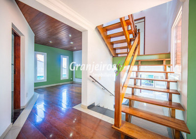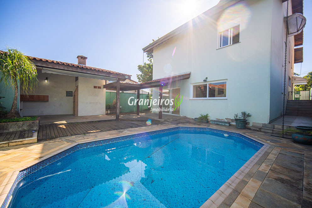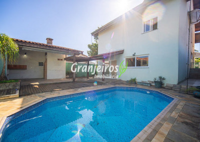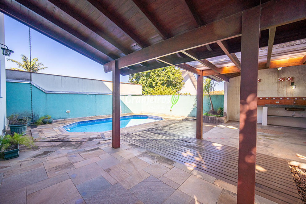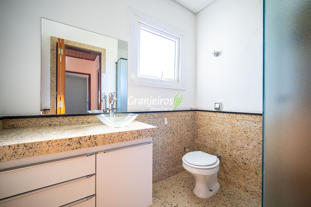 Casa térrea à venda no Condomínio São Paulo II, localizado na Granja Viana - altura do km 26 da Raposo Tavares. Em uma das melhores ruas do bairro, plana e sem saída, com vizinhança tranquila, esta casa oferece qualidade de vida e praticidade. São 355 m² de área construída em terreno de 360 m², com ambientes bem distribuídos e ótima iluminação natural. Possui três suítes, incluindo uma suíte master com cerca de 55 m², varanda e mezanino. Conta ainda com lavabo e banheiros com aquecimento (sistema Cardal), acabamento em granito e gabinetes planejados. A área social inclui ampla sala com desnível para dois ambientes, sala de jantar separada e cozinha com piso em porcelanato, armários planejados e sistema de água quente. A lavanderia é funcional e há também uma suíte de apoio. A área externa oferece quintal com piscina de vinil nova, espaço gourmet com churrasqueira e banheiro exclusivo. As entradas laterais proporcionam maior praticidade e circulação. Garagem para quatro carros, janelas em PVC, gás de rua encanado e estrutura pronta para morar.