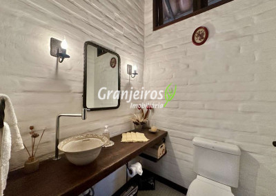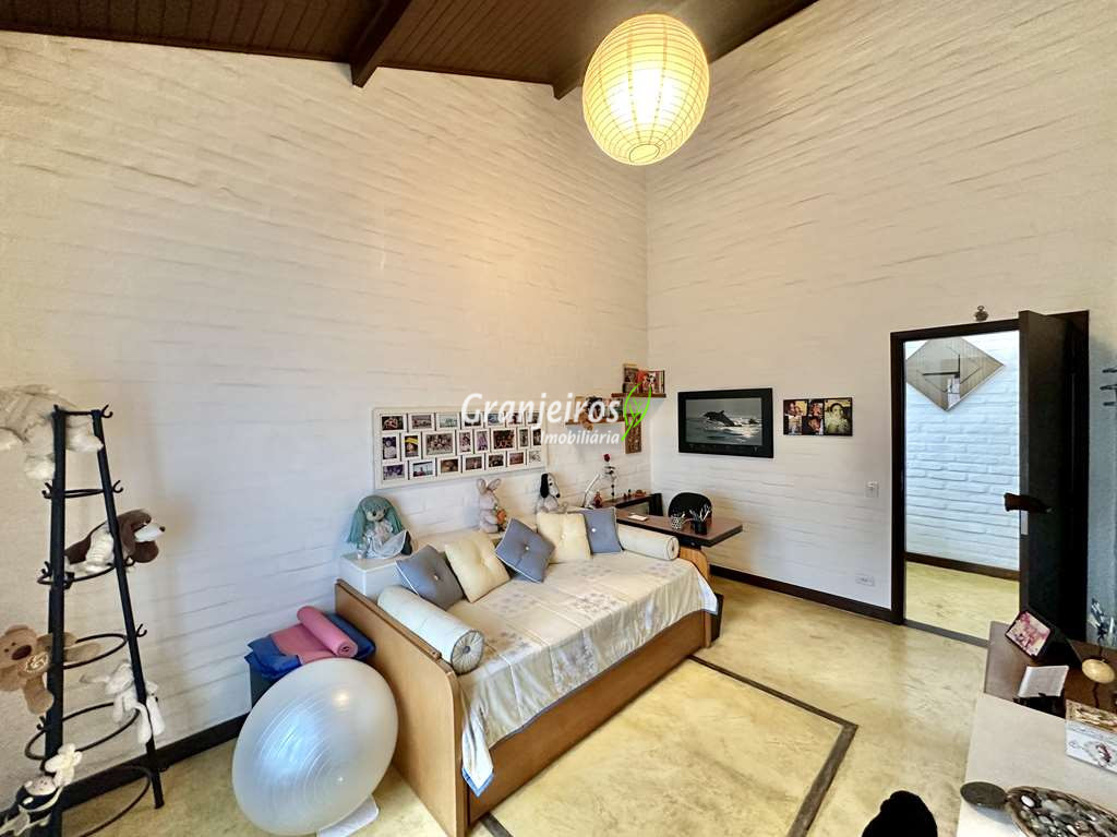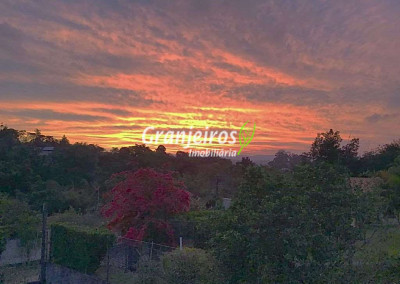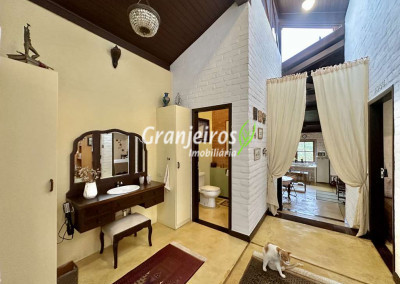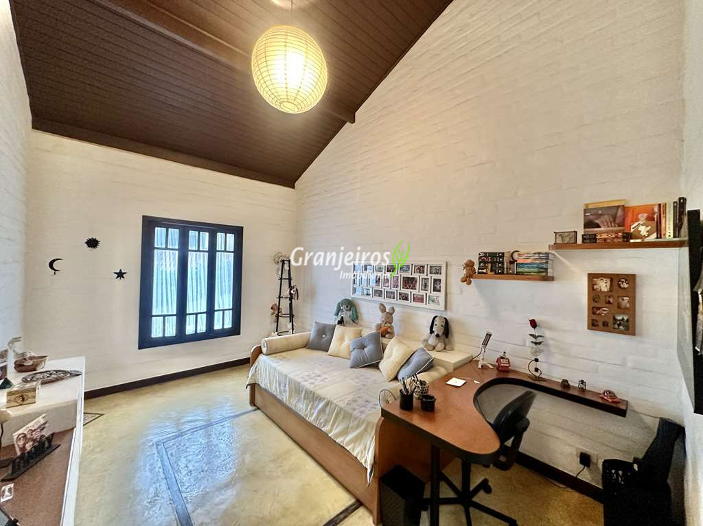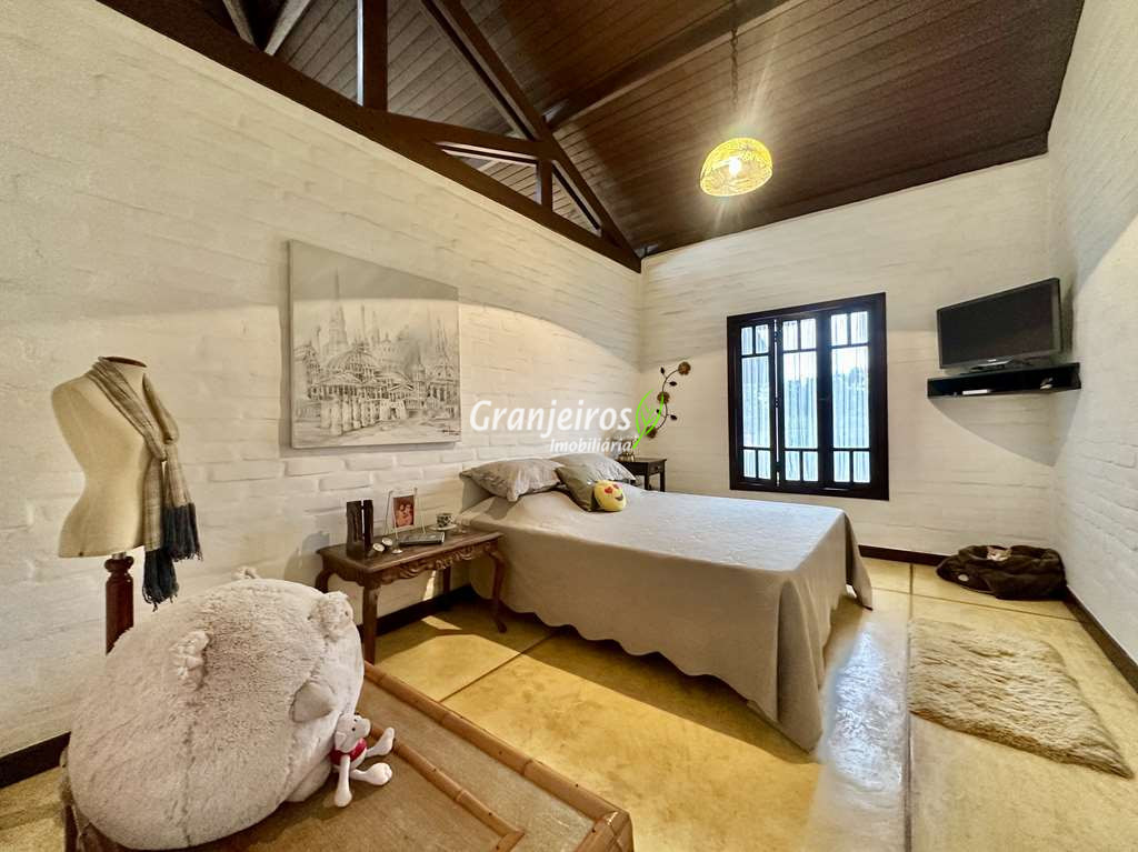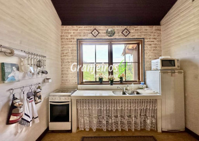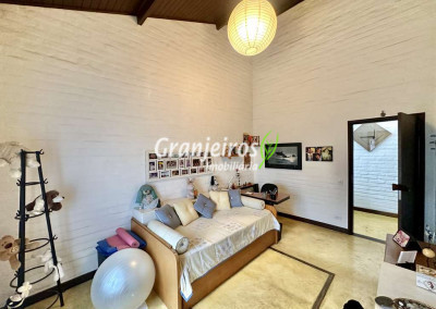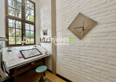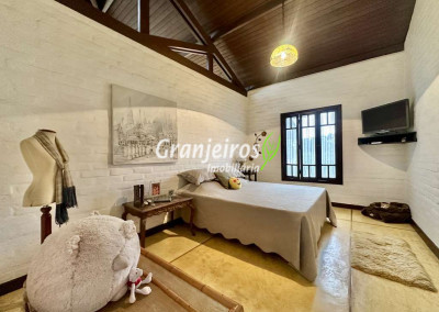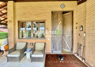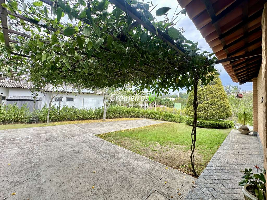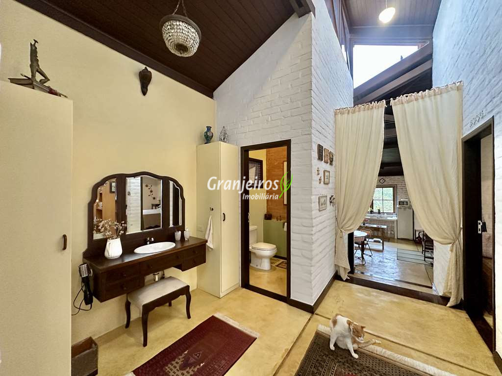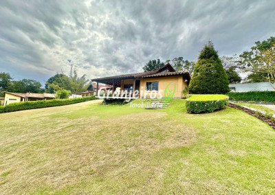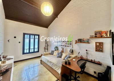 Um achado! “Simple chic”. Porteira fechada. Casa com móveis, utensílios, tapetes e maioria dos quadros. Vão tirar somente objetos pessoais e uma ou outra obra de arte. Casa estilo rústico fino, com tijolos antigos maiores que o padrão, receberam na parte externa uma nata de cimento com o pó do próprio tijolo. Piso interno de cimento queimado rústico em tom amarelado e piso da varanda em fulget. O telhado recebeu telhas de tamanho especial (acima do padrão) que dão um charme especial. Na área social, ampla sala para dois ambientes com porta e janelas originais das Docas de Santos. Anexo as salas, uma grande varanda para apreciar o incrível por de sol, especialmente no outono, conforme pode -se verificar nas fotos. Lavabo com tampo de madeira maciça rústica e pia em cerâmica artesanal (exclusiva). A cozinha fica integrada as salas e conta com uma boa despensa. Na área íntima, temos um amplo hall de distribuição para os dois quartos, grande closet que pode vir o terceiro quarto, e escritório. O banheiro possui a área de banho separada do lavatório. O terreno é um caso a parte, conta com paisagismo, repleto de árvores e flores, além da linda vista para o sol poente. A casa é abastecida por um Poço com 18m e caixa d’água de 3000 litros. Também com opção para abastecimento Sabesp. Ampla área de estacionamento e com pergolado florido muito agradável.