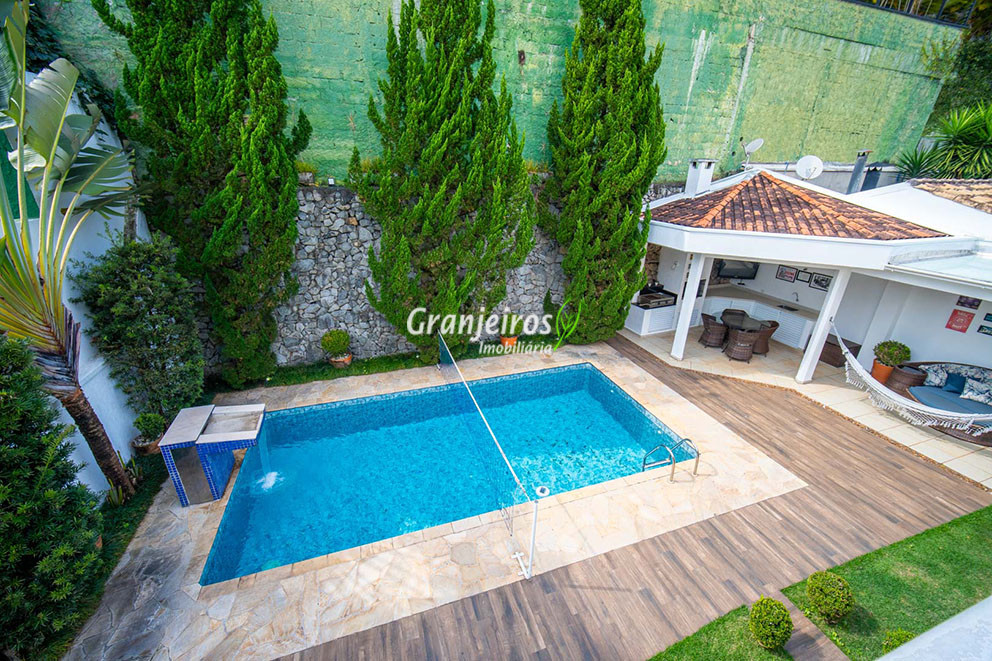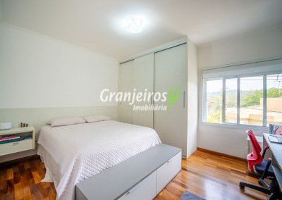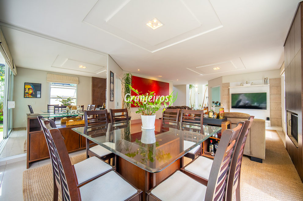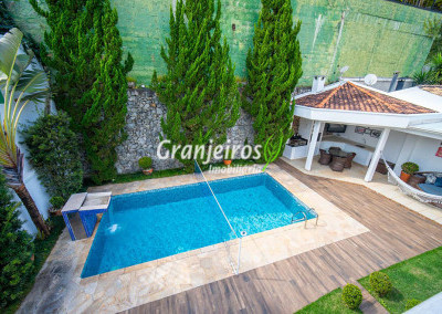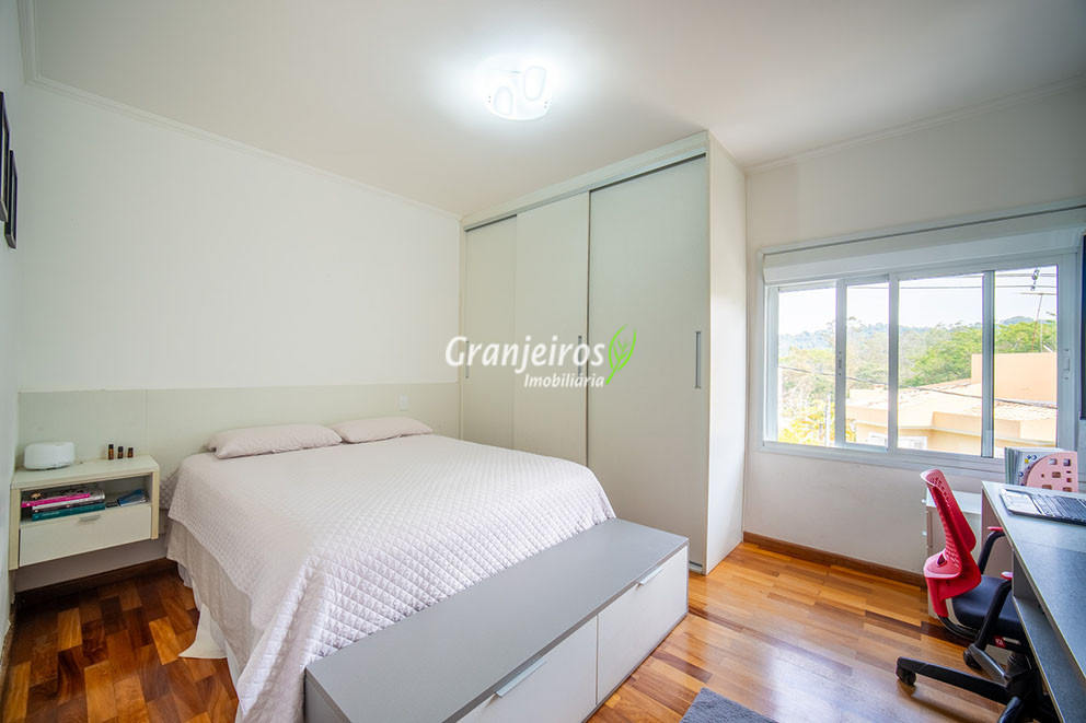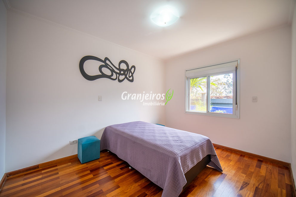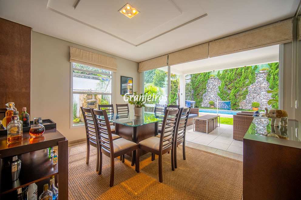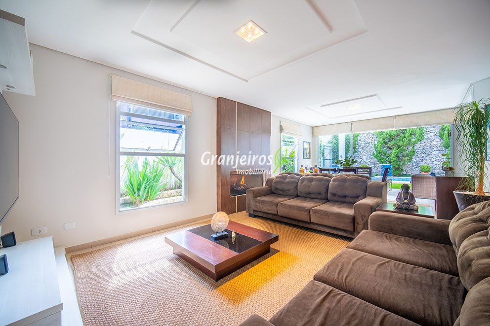 Encantadora residência familiar localizada no condomínio Golf Village, no km 23 da Rodovia Raposo Tavares, em um dos bairros mais valorizados da região da Granja Viana. Essa casa combina conforto, elegância e funcionalidade, perfeita para quem busca qualidade de vida e tranquilidade. Logo na entrada, o hall com pé direito alto dá as boas-vindas e conduz à sala de estar com lareira a gás, teto em gesso com projeto de iluminação e integração com a sala de jantar, que se destaca pela ventilação cruzada e iluminação natural. A cozinha é ampla, com armários planejados, bancada em L, espaço para refeições rápidas e acesso à área de serviço com lavanderia e despensa. A área externa é um verdadeiro refúgio, com varanda gourmet equipada com churrasqueira, piscina com aquecimento a gás e cascata, além de um lago de carpas que traz charme e serenidade ao ambiente. No piso superior estão os quatro quartos da casa, sendo dois deles suítes. A suíte máster se destaca por seu terraço privativo, closet planejado, amplo espaço e banheiro com banheira de hidromassagem. Os outros dormitórios também são bem iluminados e oferecem conforto e privacidade. Com quatro quartos, banheiros bem distribuídos, uma excelente área de lazer e localização privilegiada no bairro da Granja Viana, esta casa é uma oportunidade única para viver com estilo e bem-estar.
