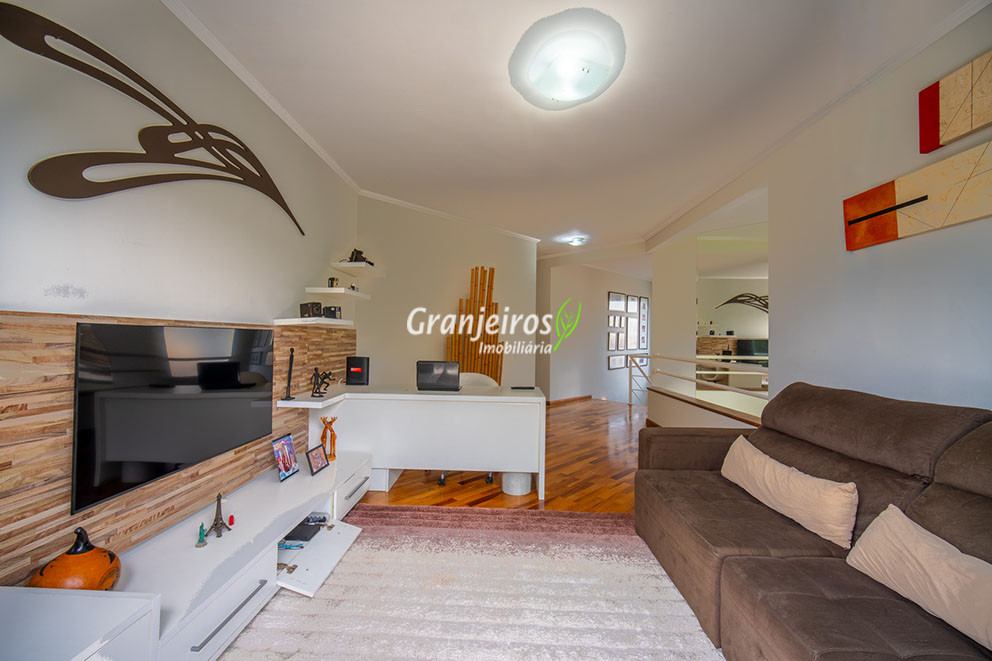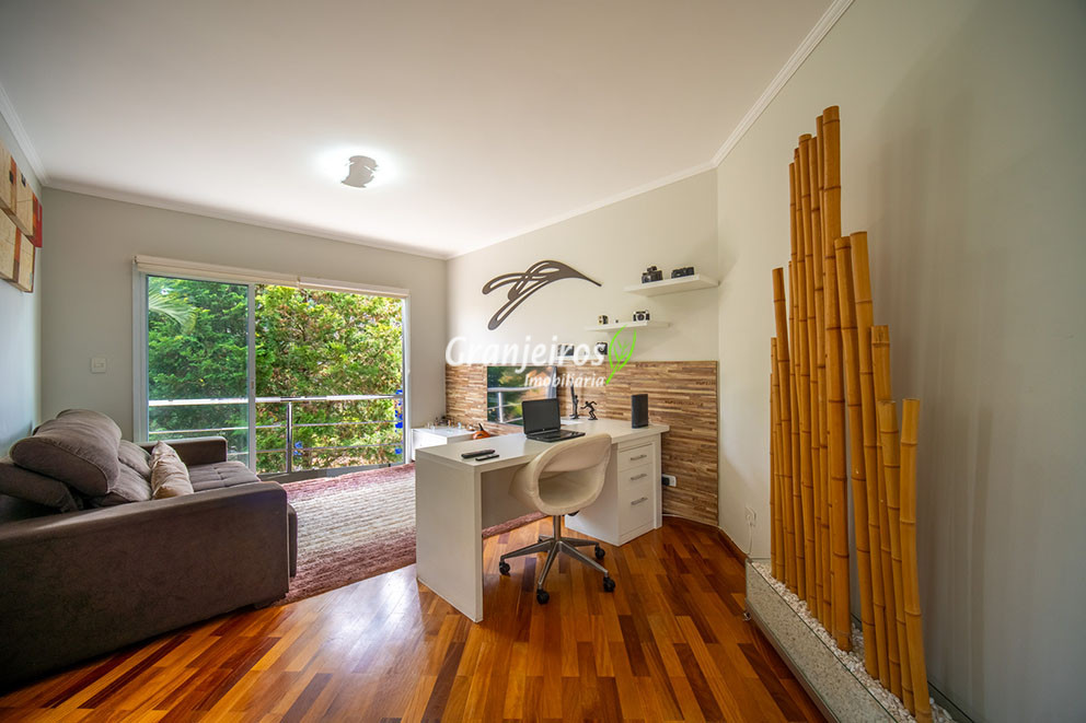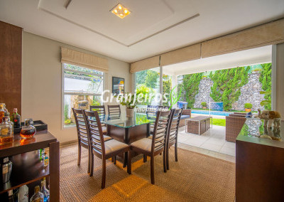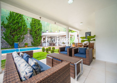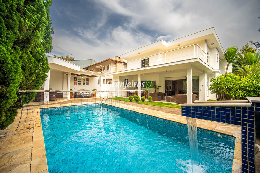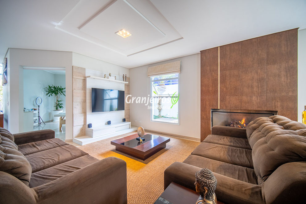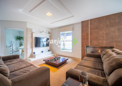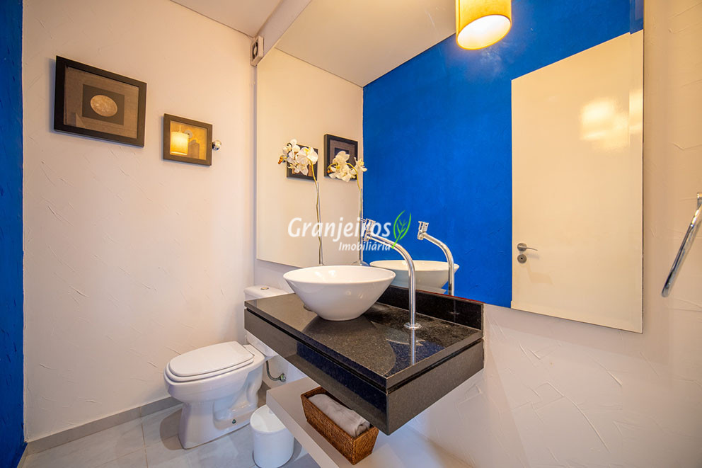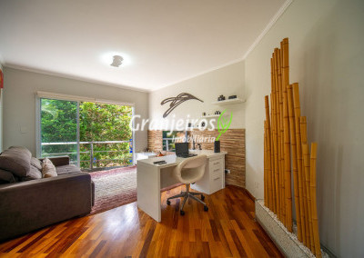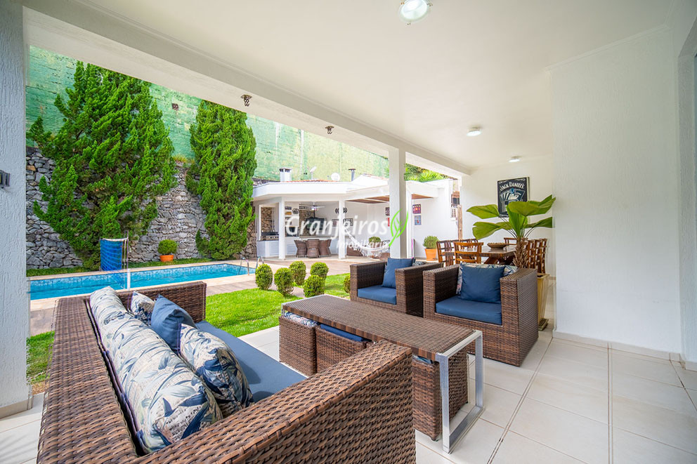 Encantadora residência familiar localizada no condomínio Golf Village, no km 23 da Rodovia Raposo Tavares, em um dos bairros mais valorizados da região da Granja Viana. Essa casa combina conforto, elegância e funcionalidade, perfeita para quem busca qualidade de vida e tranquilidade. Logo na entrada, o hall com pé direito alto dá as boas-vindas e conduz à sala de estar com lareira a gás, teto em gesso com projeto de iluminação e integração com a sala de jantar, que se destaca pela ventilação cruzada e iluminação natural. A cozinha é ampla, com armários planejados, bancada em L, espaço para refeições rápidas e acesso à área de serviço com lavanderia e despensa. A área externa é um verdadeiro refúgio, com varanda gourmet equipada com churrasqueira, piscina com aquecimento a gás e cascata, além de um lago de carpas que traz charme e serenidade ao ambiente. No piso superior estão os quatro quartos da casa, sendo dois deles suítes. A suíte máster se destaca por seu terraço privativo, closet planejado, amplo espaço e banheiro com banheira de hidromassagem. Os outros dormitórios também são bem iluminados e oferecem conforto e privacidade. Com quatro quartos, banheiros bem distribuídos, uma excelente área de lazer e localização privilegiada no bairro da Granja Viana, esta casa é uma oportunidade única para viver com estilo e bem-estar.
