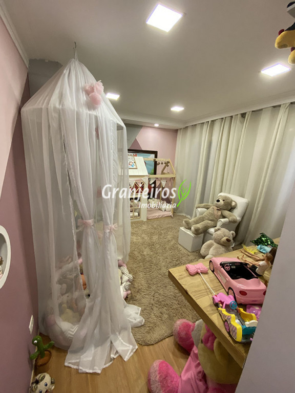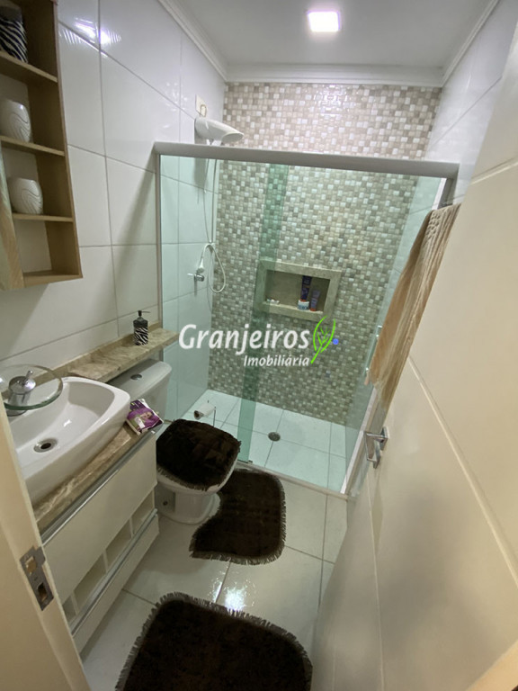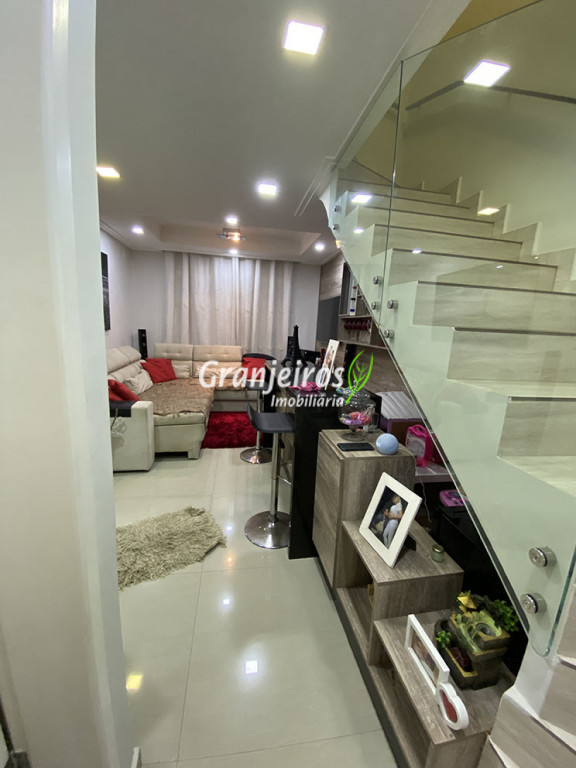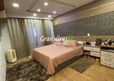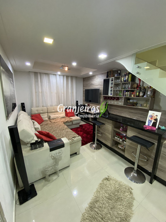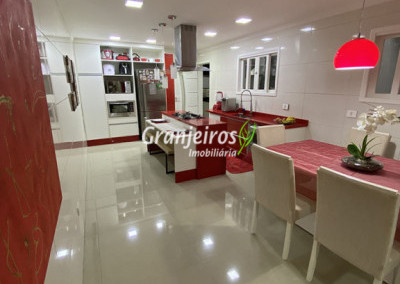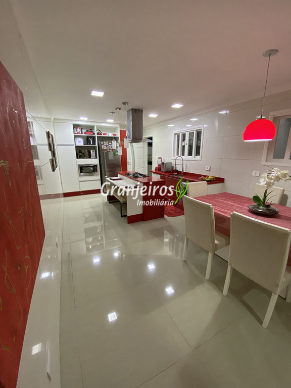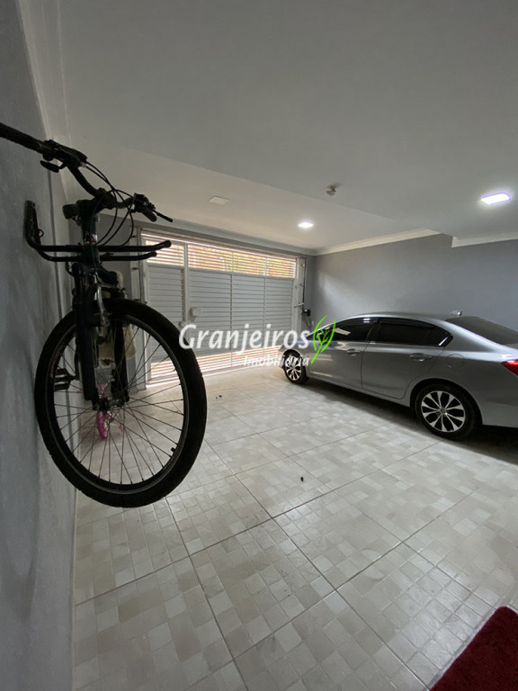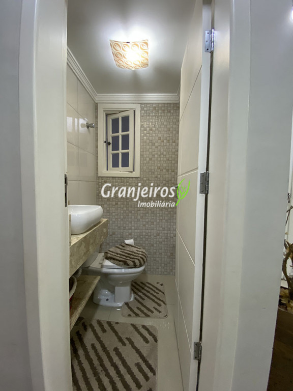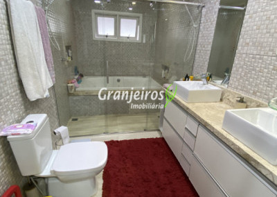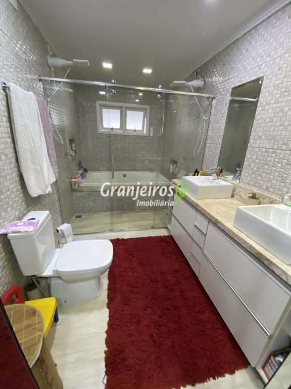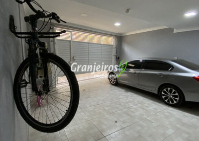 Casa ampla, sala de TV com Bar integrado, lavabo, cozinha e churrasqueira nos fundos da casa, andar superior com 3 suítes, uma delas com closet, e varanda privativa, banheira dois chuveiros, acabamentos com sanca de gesso e escada com guarda copos de vidro. Garagem coberta para 2 carros.
