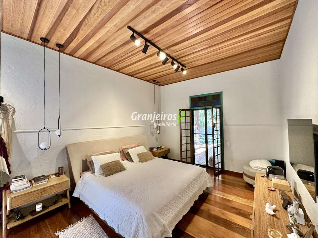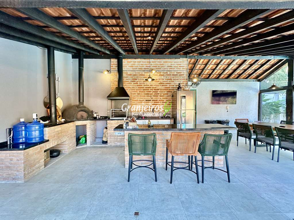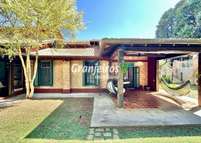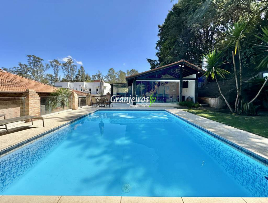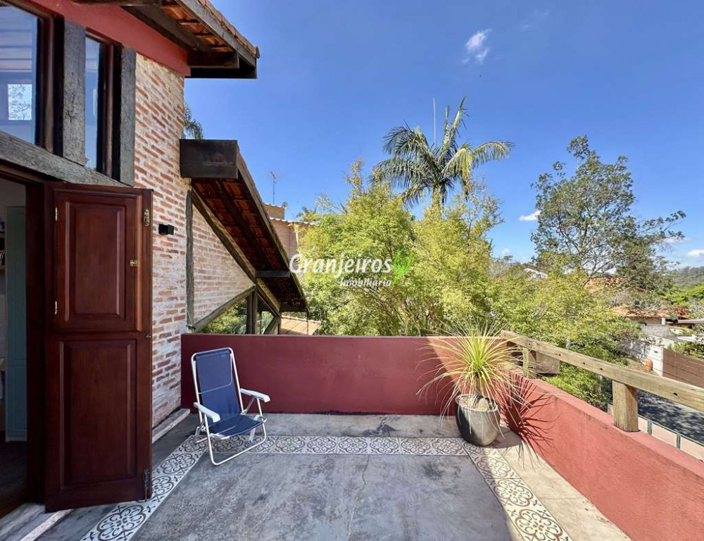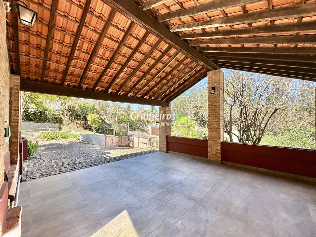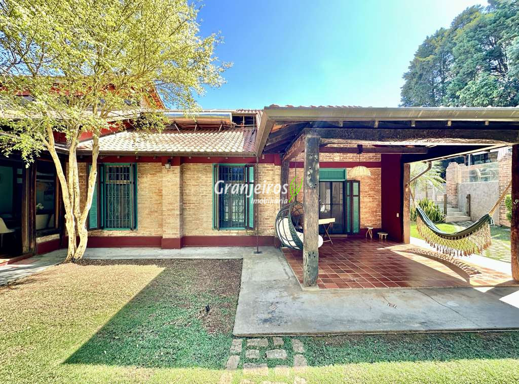 Rústica, charmosa e aconchegante. Totalmente reformada, com ótimos acabamentos. O Condomínio Palos Verdes está entre os melhores e mais bem localizados da Granja Viana. Imóvel repleto de armários. Living envidraçado com pé direito alto, para 4 ambientes, voltados para o lazer, quintal e jardim. Sala estar, lareira, jantar e bar. Lavabo. Cozinha americana integrada repleta de armários planejados e despensa. Family room - Sala íntima com lareira. São 3 suítes com armários, sendo a master com saleta, closet, terraço com vista, lavatório externo e hidro. Mezanino com escada de madeira com guarda corpo de ferro e corrimão de madeira. Espaço multiuso com varanda. Ideal para home theater, escritório, atelier, brinquedoteca, jogos, música e academia. Na área externa conta com piscina aquecida solar com guarda corpo de vidro e solarium. Anexo gourmet envidraçado (retrátil) para vários ambientes, com churrasqueira, forno de pizza, fogão à lenha e cooktop, com bancada, pia, gabinetes e balcão. Jardim com paisagismo formado e iluminado, com gramado e frutíferas em produção: jabuticaba, abacate, manga, pitanga, amora, limão. Praça do fogo. Garagem para 3 vagas, sendo 2 cobertas com carregador para carro elétrico com capacidade de 7kwh, 1 descoberta, além do pátio e rampa de acesso. Aquecimento: Solar com suporte de boiler elétrico, de 500 litros, nos chuveiros. Energia fotovoltaica on grid capacidade 600kwh/mês.