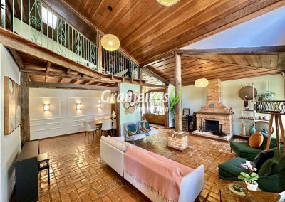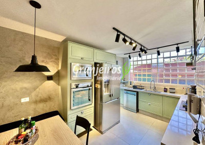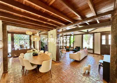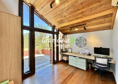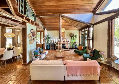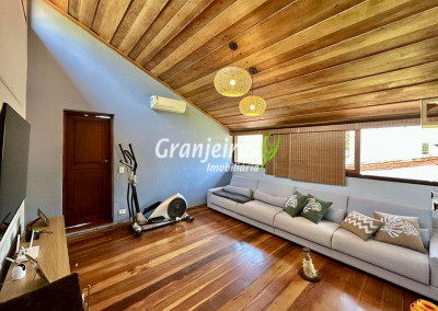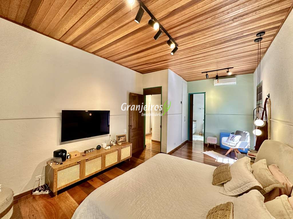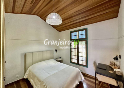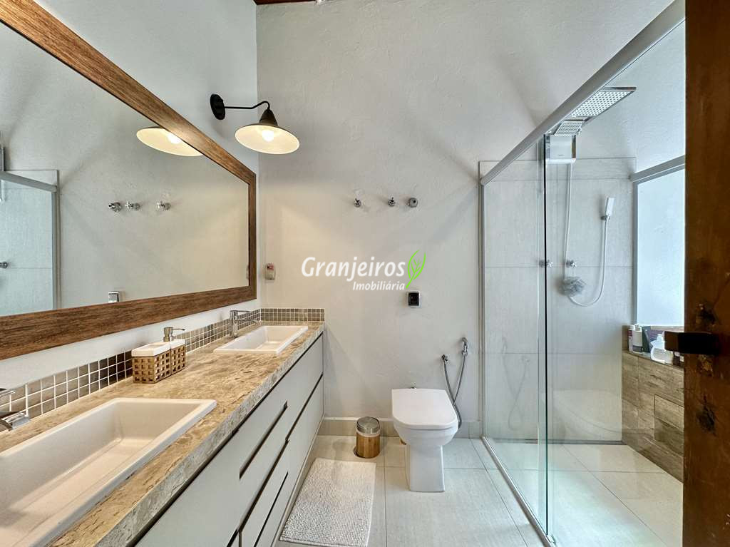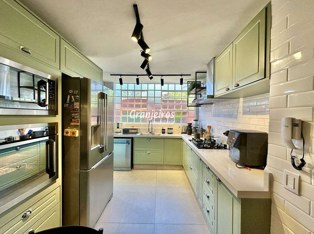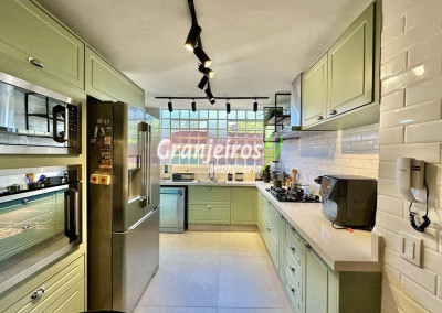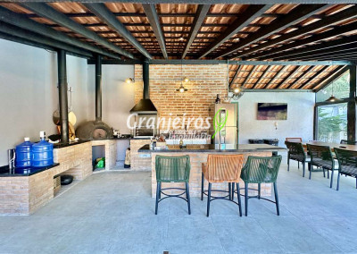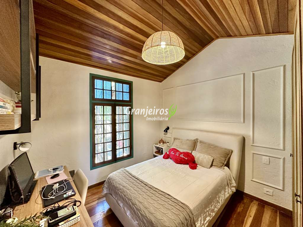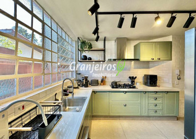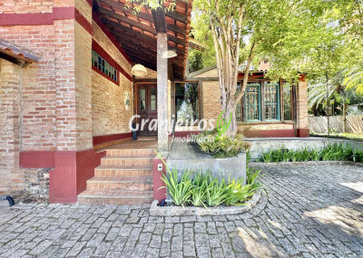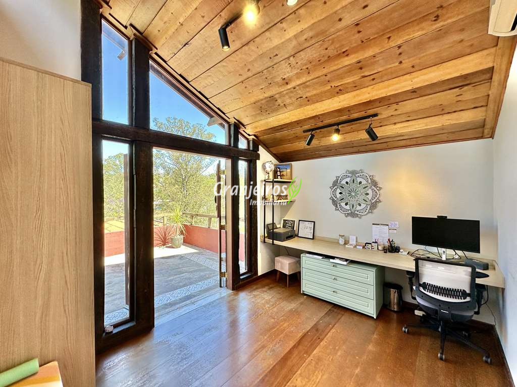 Rústica, charmosa e aconchegante. Totalmente reformada, com ótimos acabamentos. O Condomínio Palos Verdes está entre os melhores e mais bem localizados da Granja Viana. Imóvel repleto de armários. Living envidraçado com pé direito alto, para 4 ambientes, voltados para o lazer, quintal e jardim. Sala estar, lareira, jantar e bar. Lavabo. Cozinha americana integrada repleta de armários planejados e despensa. Family room - Sala íntima com lareira. São 3 suítes com armários, sendo a master com saleta, closet, terraço com vista, lavatório externo e hidro. Mezanino com escada de madeira com guarda corpo de ferro e corrimão de madeira. Espaço multiuso com varanda. Ideal para home theater, escritório, atelier, brinquedoteca, jogos, música e academia. Na área externa conta com piscina aquecida solar com guarda corpo de vidro e solarium. Anexo gourmet envidraçado (retrátil) para vários ambientes, com churrasqueira, forno de pizza, fogão à lenha e cooktop, com bancada, pia, gabinetes e balcão. Jardim com paisagismo formado e iluminado, com gramado e frutíferas em produção: jabuticaba, abacate, manga, pitanga, amora, limão. Praça do fogo. Garagem para 3 vagas, sendo 2 cobertas com carregador para carro elétrico com capacidade de 7kwh, 1 descoberta, além do pátio e rampa de acesso. Aquecimento: Solar com suporte de boiler elétrico, de 500 litros, nos chuveiros. Energia fotovoltaica on grid capacidade 600kwh/mês.
