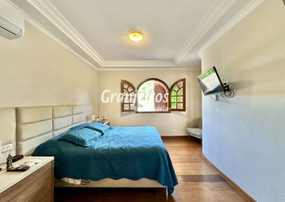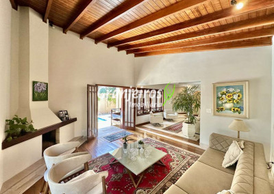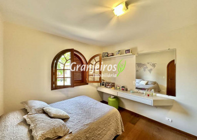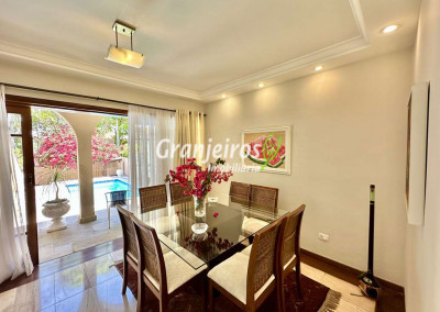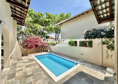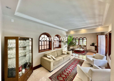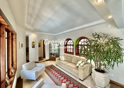 Casa com boa manutenção e privacidade, construída para morar. Boa localização em rua tranquila e arborizada. Imóvel repleto de armários. Living para 5 ambientes voltados para varanda e lazer com piscina e churrasqueira. Estar, bar, lareira, jantar mais reservada integrada à cozinha e um canto especial na varanda, ideal para um café da manhã, aperitivo ou almoço. Lavabo com lavatório externo, tampo de mármore e espelho. Family Room mais reservada, ideal para home theater com painel de TV, aparador e gavetas. Hall íntimo no piso superior com roupeiro e um acesso ao quintal dos fundos. São 4 dormitórios, sendo 1 suíte. 3 com armários de marcenaria em Pau Marfim, sendo a suíte com closet sr e sra e ar-condicionado. Copa cozinha planejada repleta de armários, com adega, despensa, tampo em granito, 2 cubas inox, fogão Electrolux 5 bocas e forno. Área de serviço aberta ensolarada e lavanderia fechada integrada à cozinha. Quarto e banheiro de serviço, com acesso externo. Vestiário. Piscina de alvenaria 5,5m x 2,5m revestida de azulejo, com escada, solarium, ducha e casa de máquinas. Churrasqueira anexa à piscina. Garagem para 4 vagas, sendo 2 cobertas.