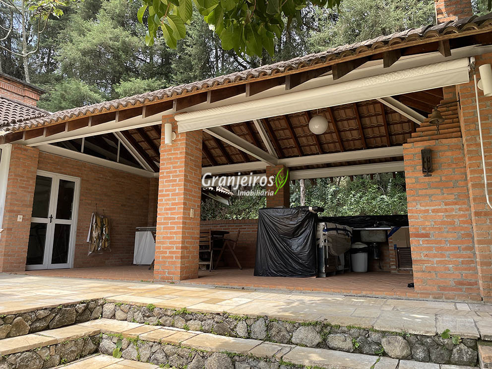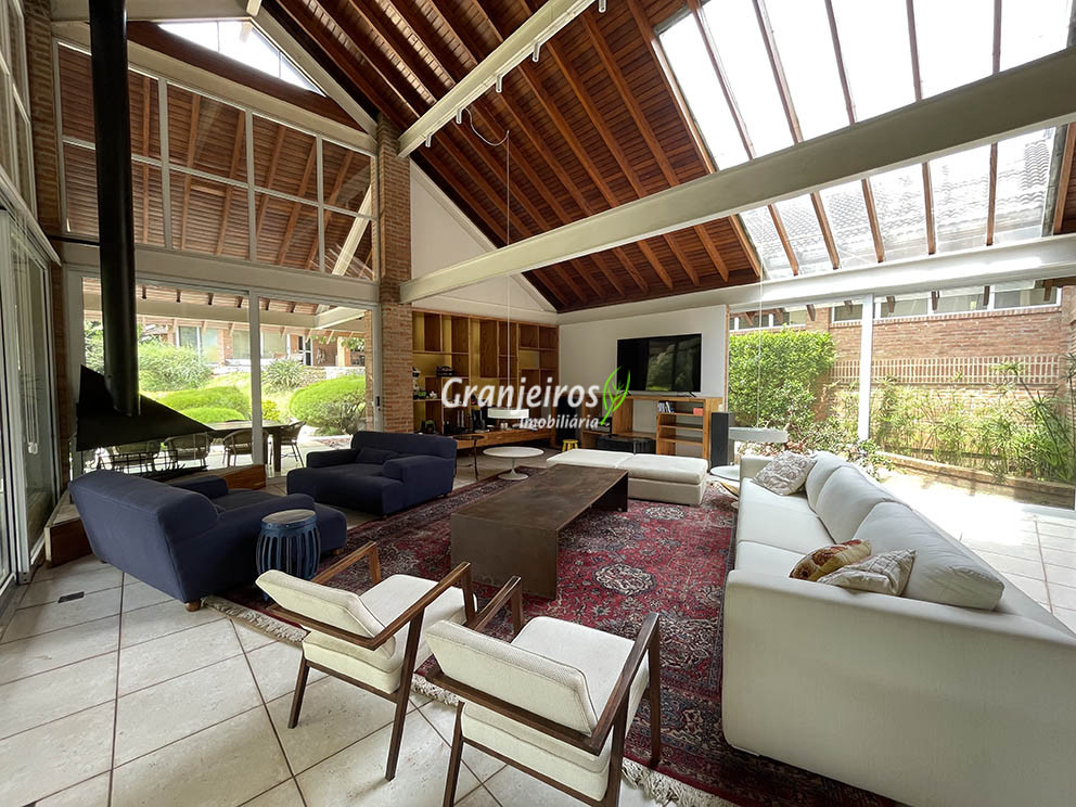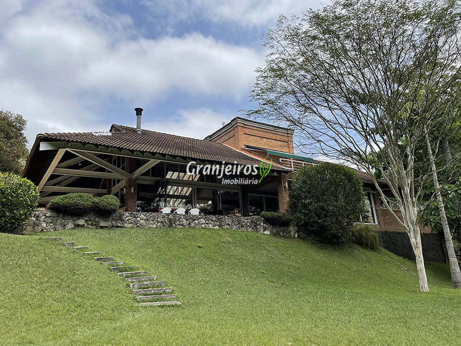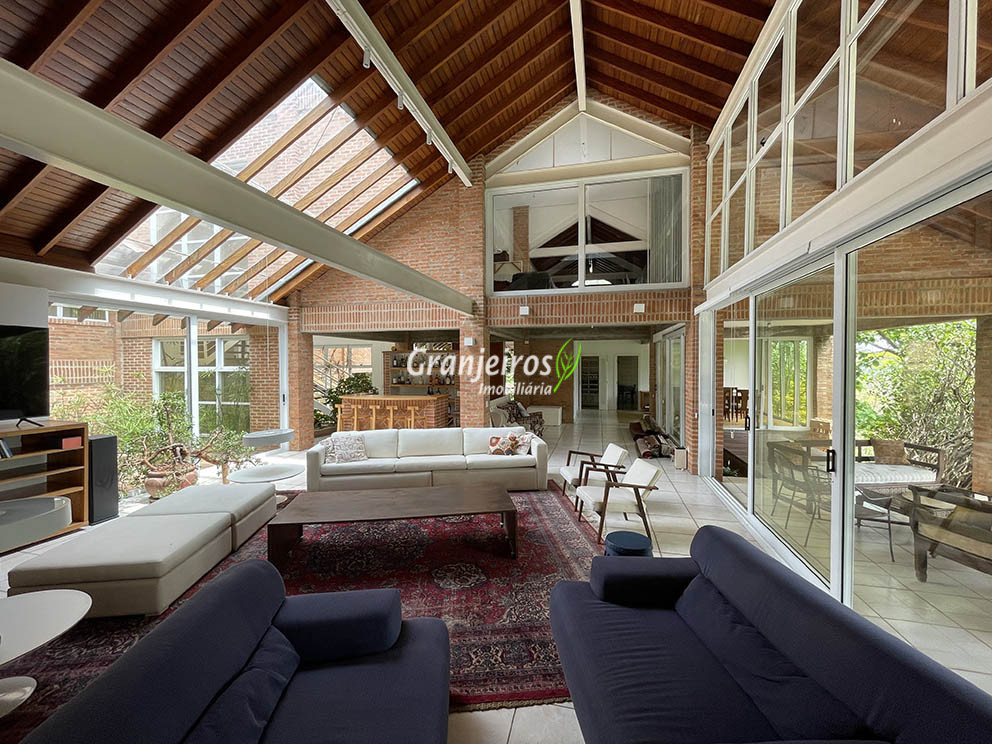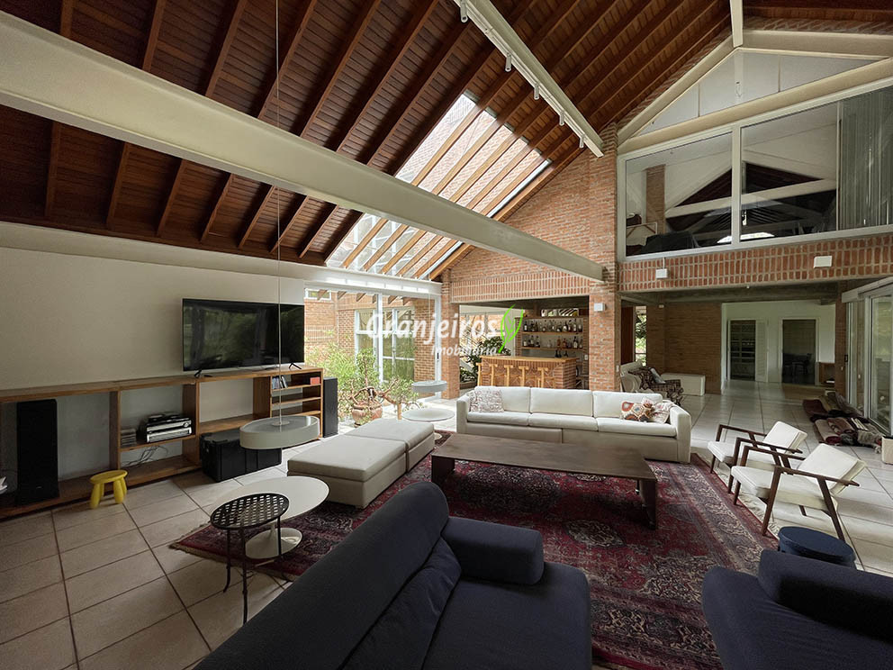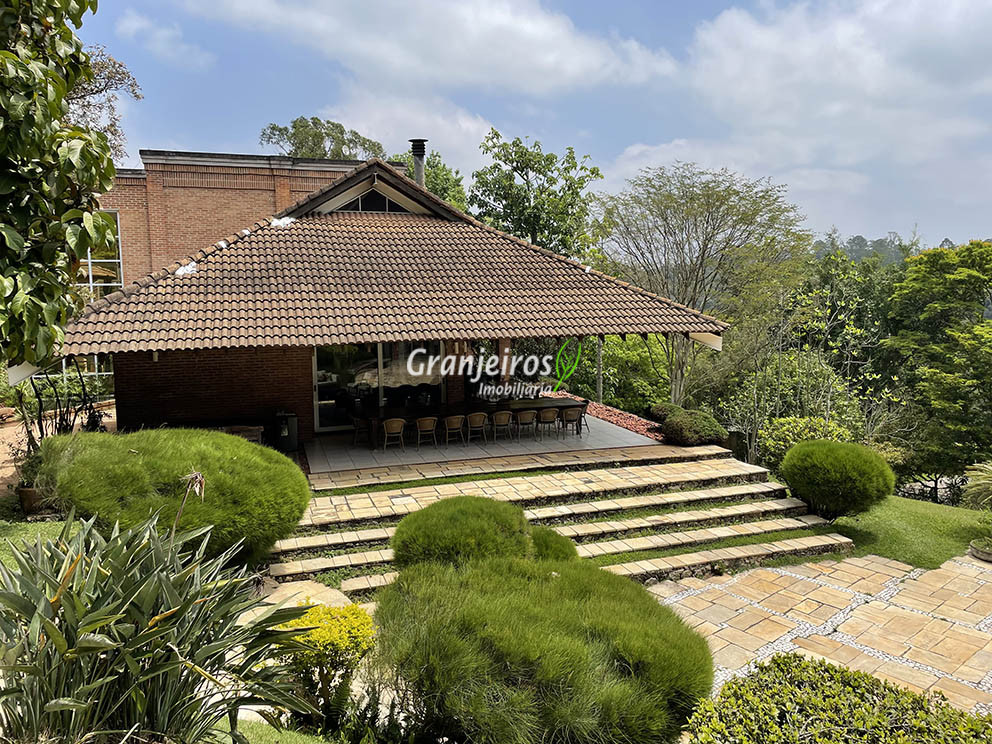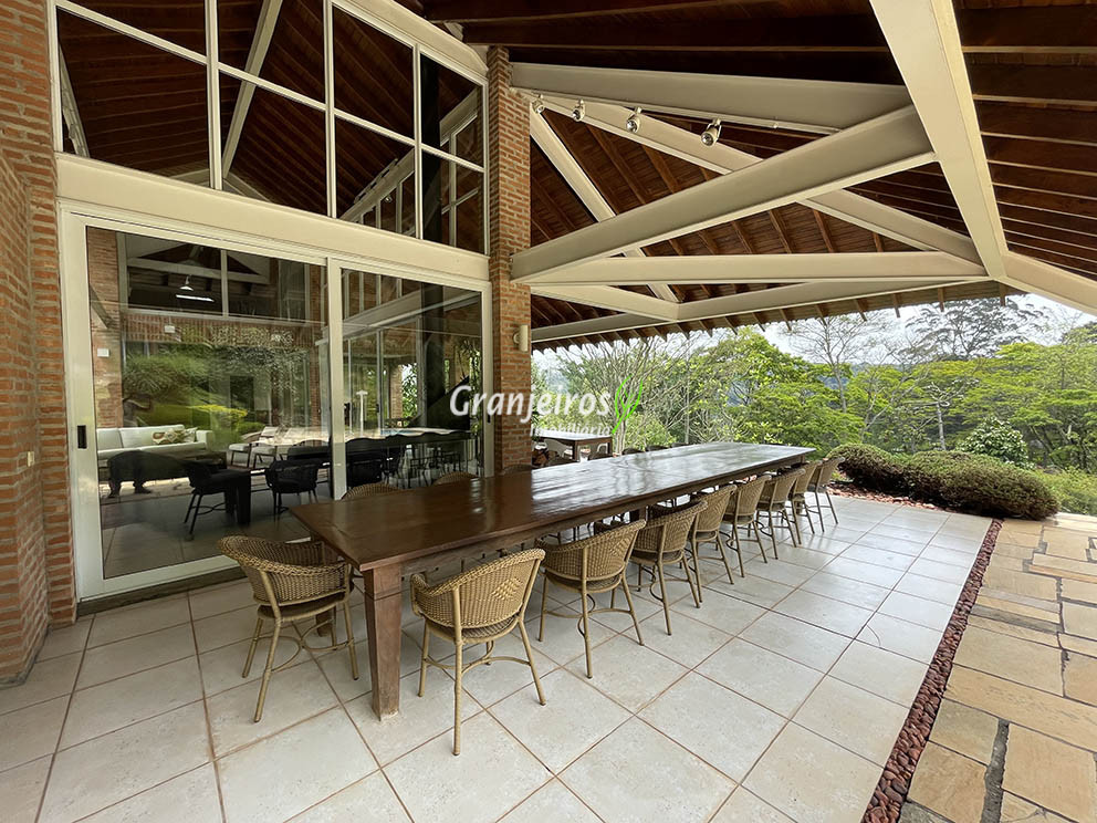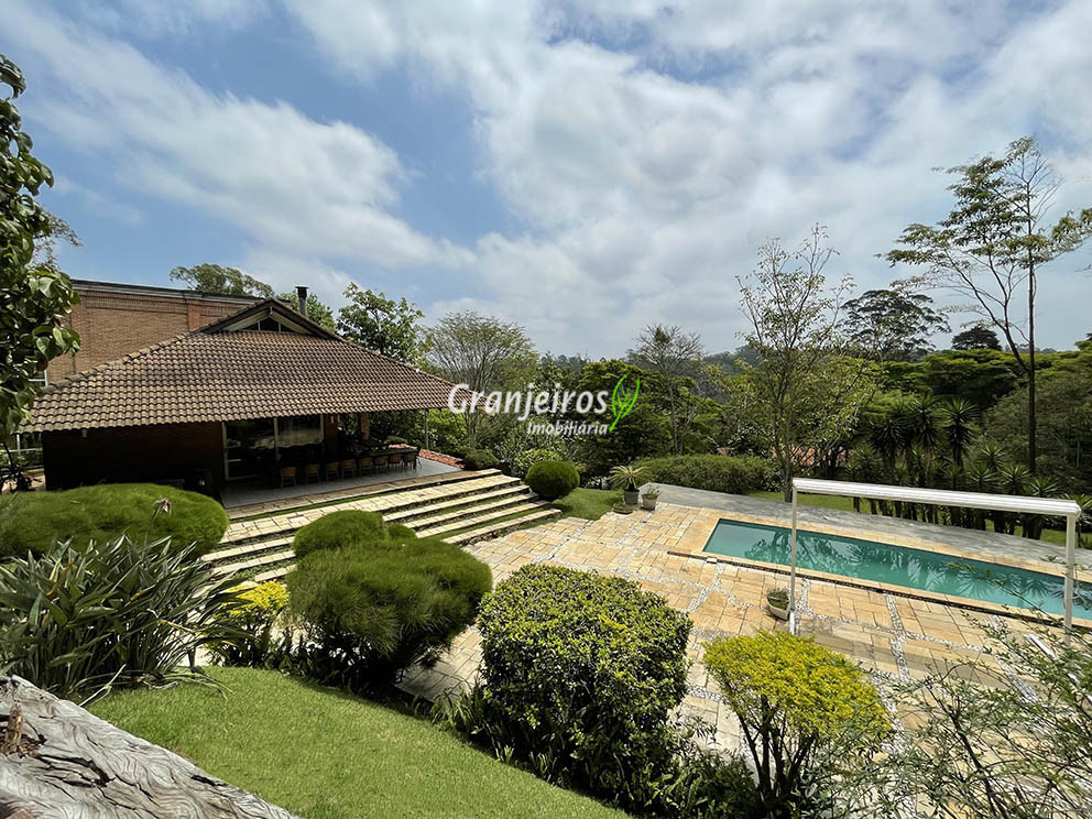 Casa com projeto “único”! Assinado pela arquiteta Clara Asbun. Localizada em condomínio de alto padrão com acesso pelo km 26 da Raposo Tavares. A casa está implantada no ponto mais alto do terreno proporcionado linda vista. A área social apresenta amplo hall de entrada, living com pé direito duplo com espaço para 3 ambientes com lareira, bar, sala de jantar, adega e lavabo, tudo envolto por 2 grandes varandas com linda vista. Anexo as salas temos a cozinha planejada, despensa e louceiro. Na área íntima são 4 suítes, sendo a master com jacuzzi, grande closet, mezanino e varanda, 2 outras também com mezanino e roupeiros, sala íntima de tv, copa, escritórios e sala de jogos com varanda. Na área de lazer conta com espaço gourmet com churrasqueira, Spa completo com sauna seca, úmida, sala de ginástica, espaço para relaxamento e piscina adulto e infantil. Anexo a casa principal há um grande atelier com um salão multiuso de 126m², com um mezanino com entrada independente para escritório (home office, biblioteca etc...). O paisagismo é muito bem tratado, com várias espécies de árvores e plantas, formando um conjunto visual incrível. Conta ainda com casa de caseiros completa com sala, cozinha, 2 dormitórios e banheiro. Garagem coberta para 4 veículos com pátio para mais 6.