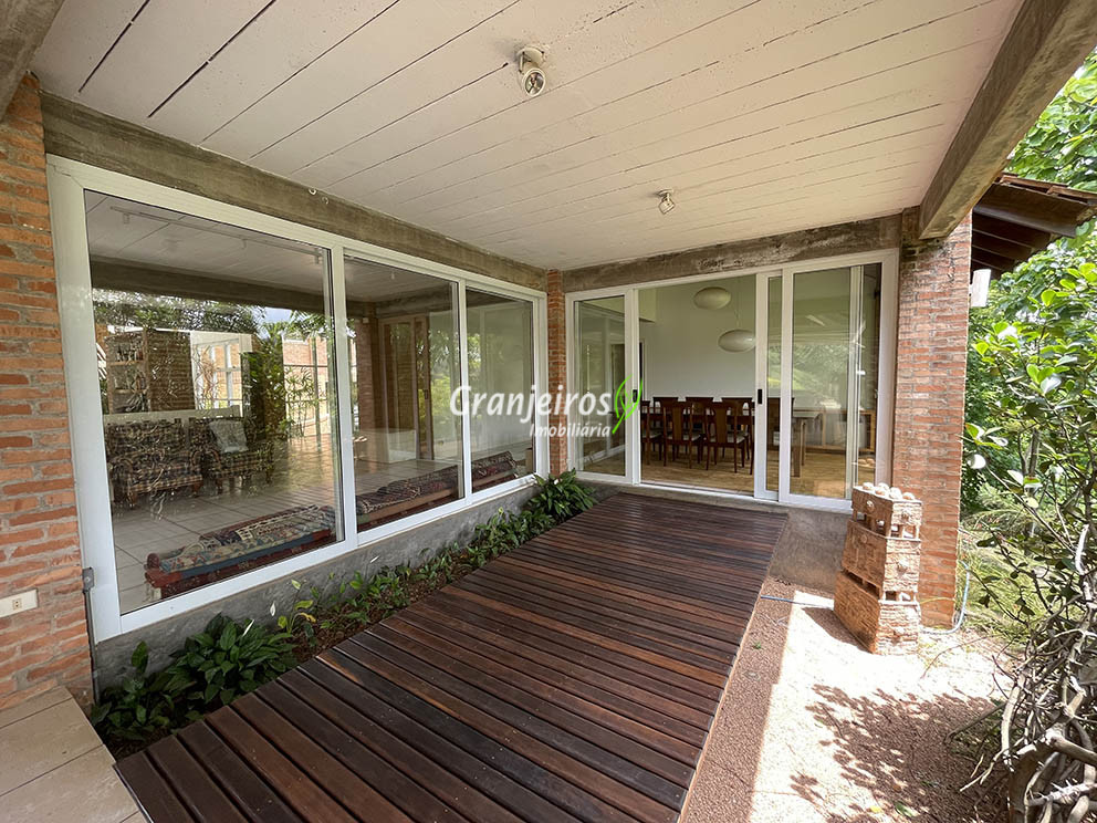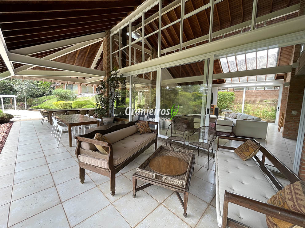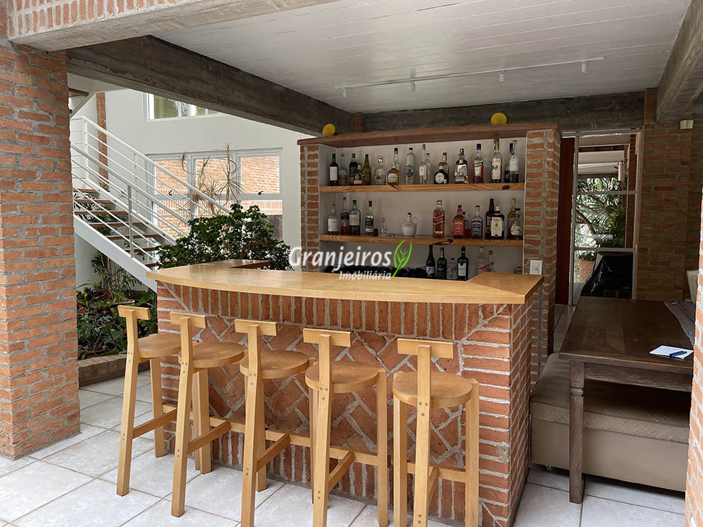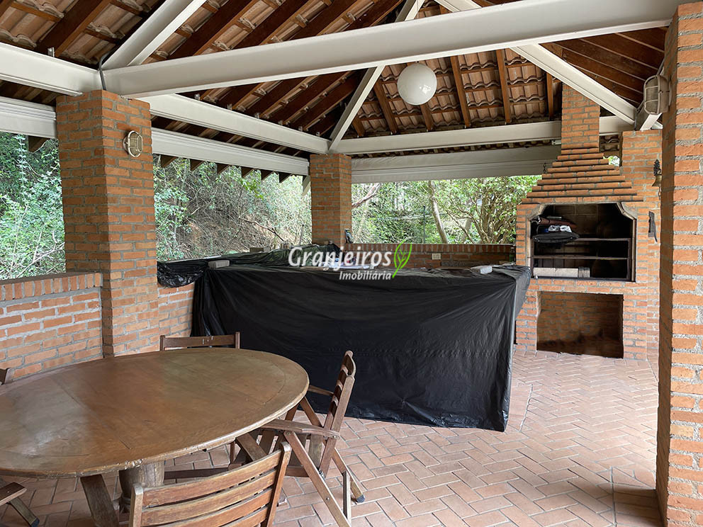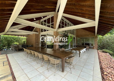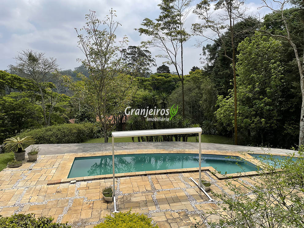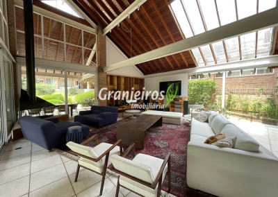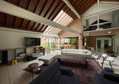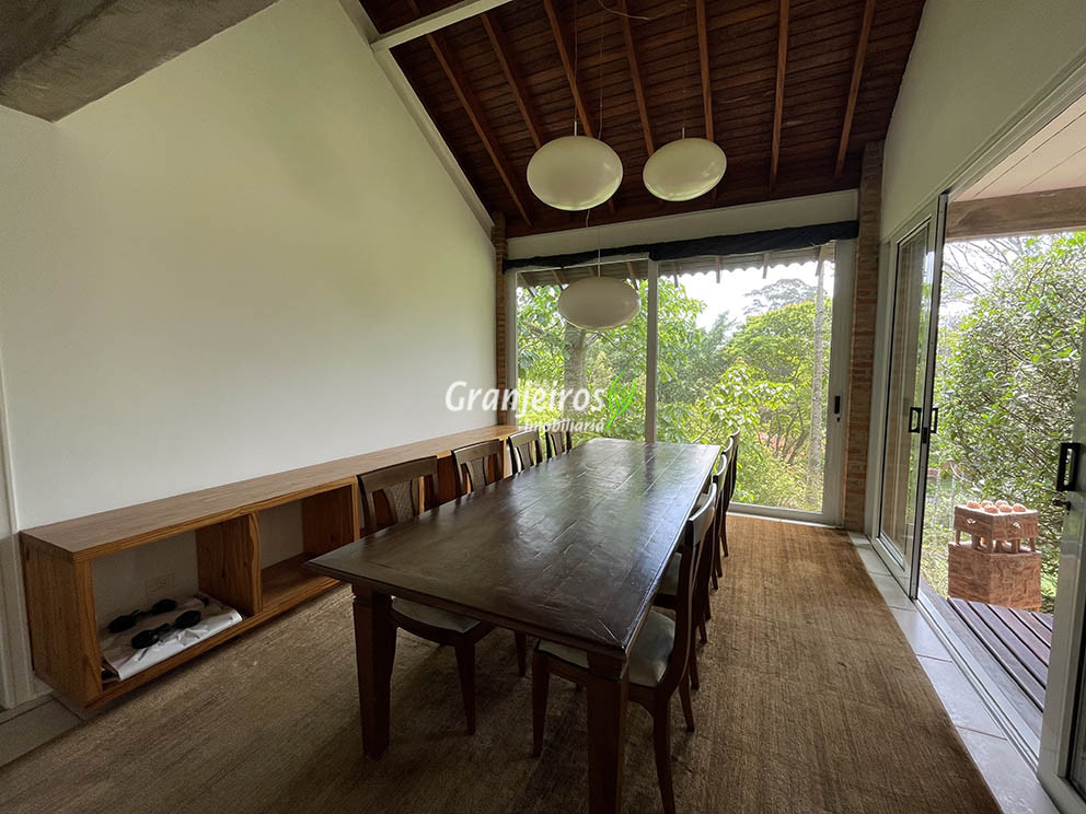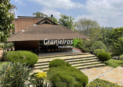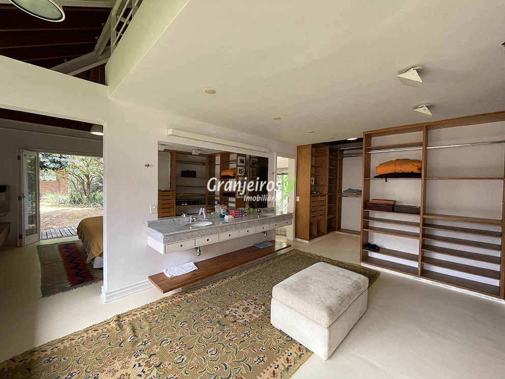 Casa com projeto “único”! Assinado pela arquiteta Clara Asbun. Localizada em condomínio de alto padrão com acesso pelo km 26 da Raposo Tavares. A casa está implantada no ponto mais alto do terreno proporcionado linda vista. A área social apresenta amplo hall de entrada, living com pé direito duplo com espaço para 3 ambientes com lareira, bar, sala de jantar, adega e lavabo, tudo envolto por 2 grandes varandas com linda vista. Anexo as salas temos a cozinha planejada, despensa e louceiro. Na área íntima são 4 suítes, sendo a master com jacuzzi, grande closet, mezanino e varanda, 2 outras também com mezanino e roupeiros, sala íntima de tv, copa, escritórios e sala de jogos com varanda. Na área de lazer conta com espaço gourmet com churrasqueira, Spa completo com sauna seca, úmida, sala de ginástica, espaço para relaxamento e piscina adulto e infantil. Anexo a casa principal há um grande atelier com um salão multiuso de 126m², com um mezanino com entrada independente para escritório (home office, biblioteca etc...). O paisagismo é muito bem tratado, com várias espécies de árvores e plantas, formando um conjunto visual incrível. Conta ainda com casa de caseiros completa com sala, cozinha, 2 dormitórios e banheiro. Garagem coberta para 4 veículos com pátio para mais 6.
