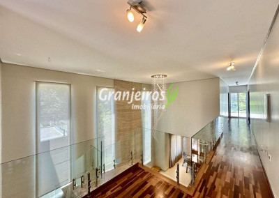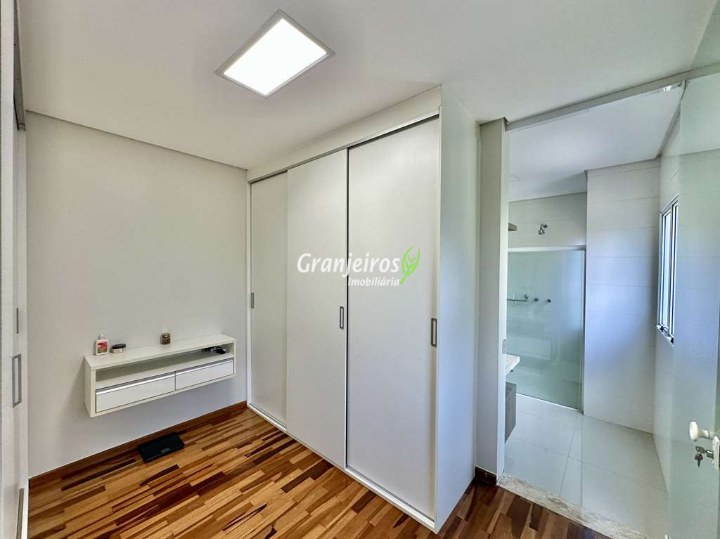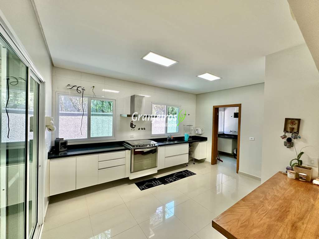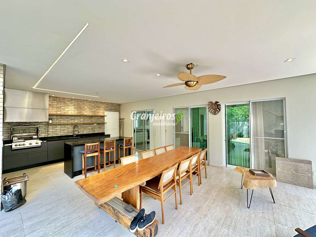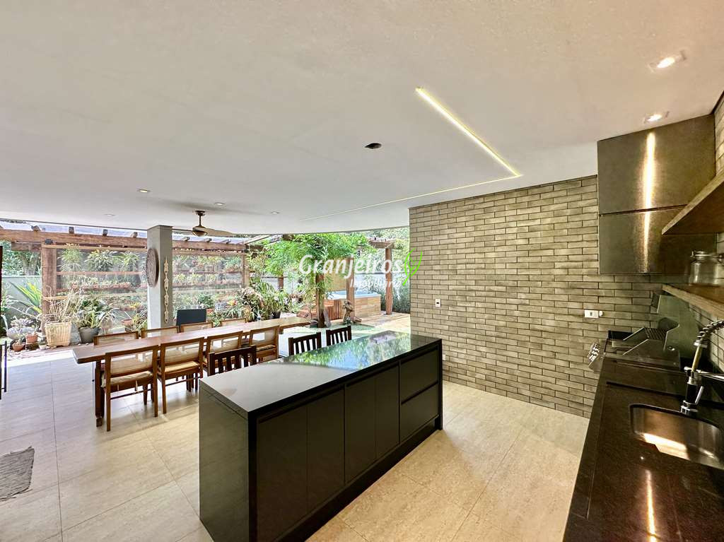 Casa com lindo projeto arquitetônico e de decoração. Espaçosa, elegante, com excelente acabamento e infraestrutura completa. O Condomínio Reserva Santa Maria está entre os mais completos charmosos e seguros da região. Casa envidraçada, bem arejada e iluminada. Amplo living integrado com pé direito alto, para 4 ambientes. Estar, TV, jantar e bar. 5 ar-condicionado Q e F, nas 4 suítes e escritório. Imóvel repleto de armários. Jardim com paisagismo formado, orquidário e frutíferas: jabuticabeira c/ 30 anos produzindo, amora, limão siciliano, limão rosa, cereja. Living com pé direito alto, para 4 ambientes integrados, voltados para varanda gourmet e jardim. Escritório no térreo com ar-condicionado, todo planejado com estação de trabalho, prateleiras, gabinetes. Cozinha planejada, integrada ao living e varanda gourmet, com balcão para sala de jantar, tampos em granito, fogão cooktop 5 bocas Electro Lux e 2 cubas inox. Hall íntimo no piso superior. São 5 suítes planejadas com armários, 2 com terraços integrados e guarda corpo de vidro. Sendo a master planejada para cama king size, closet sr e sra com janela e 1ste no térreo com acessibilidade, ideal para hóspedes. VARANDA GOURMET planejada e integrada ao SPA, orquidário e redário, churrasqueira. SPA com Hidro Ouro Fino para 6 pessoas, com cromoterapia, ozônio e cascata. Orquidário com 200 vasos, feito com dormentes de trem e cruzetas da Eletropaulo. Garagem para 11 vagas sendo 3 cobertas. Aquecimento: Solar com suporte de Boiler Elétrico.