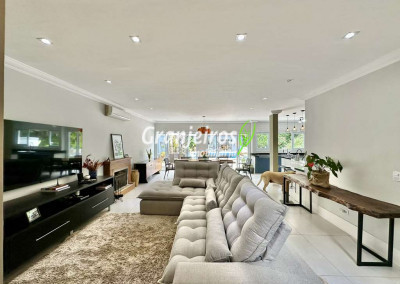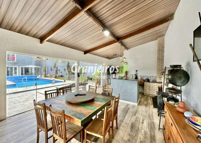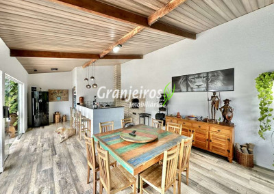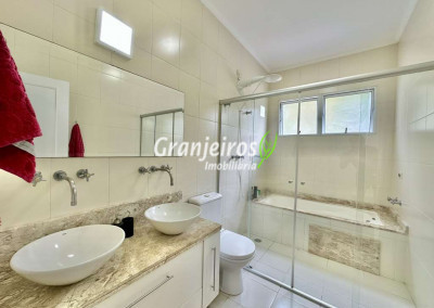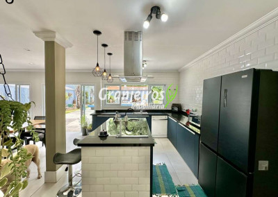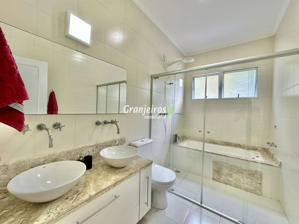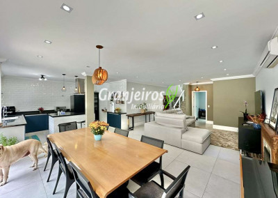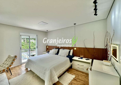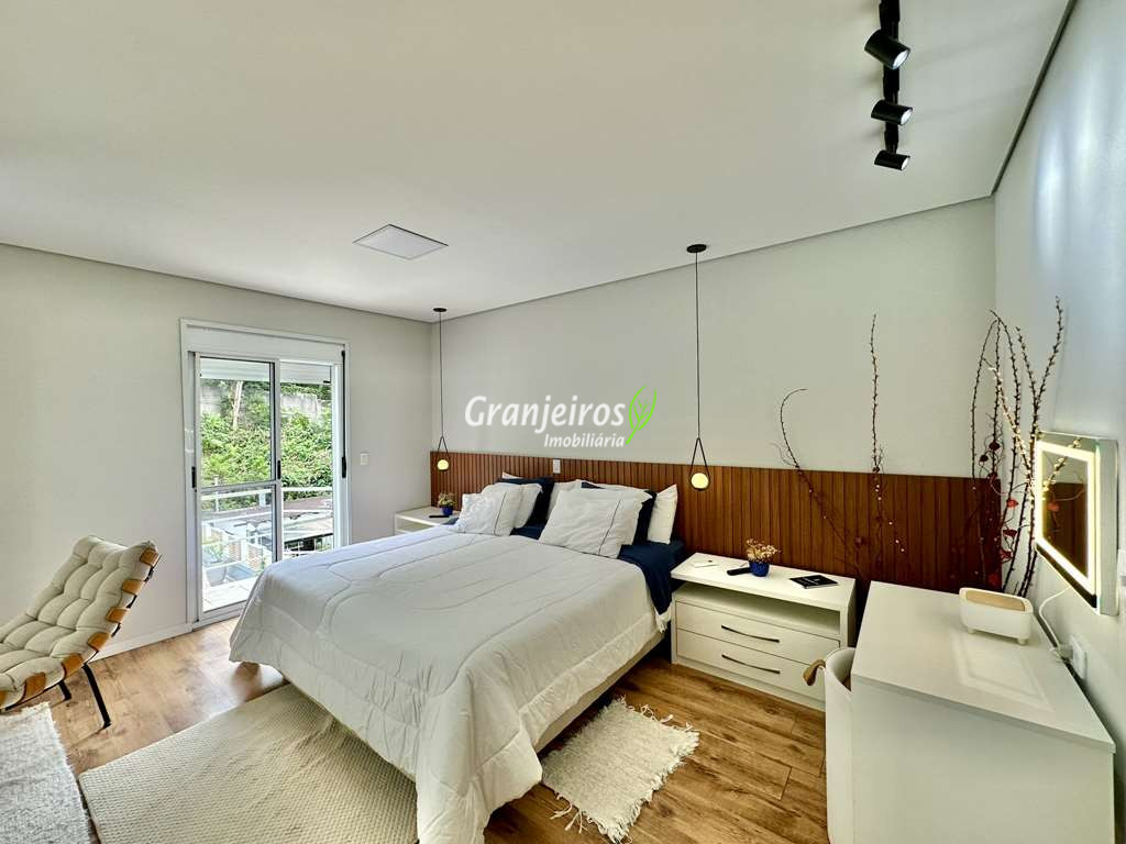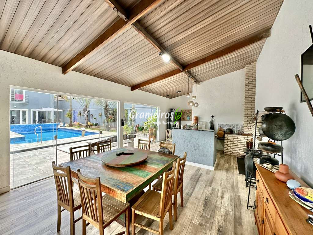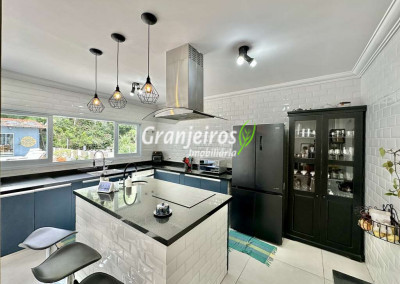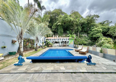 Casa contemporânea, integrada, com vista permanente e muito bom acabamento. Imóvel repleto de armários. ⚡ Energia elétrica fotovoltaica on-grid com 1400 kilowatts. Casa toda cabeada para internet. Lavabo. Escritório. Living para 5 ambientes integrados, voltados para o lazer com piscina e anexo gourmet. Estar, TV, jantar, lareira e bar. Cozinha integrada ao living com bancada em “L”. Área de serviço aberta ensolarada e lavanderia fechada com tanque e armários planejado. Family room. PROJETO ORIGINAL 4 suítes, sendo 1 suíte Master. PROJETO ATUAL 3 suítes com ar-condicionado, armários e terraços, sendo a master reformada, unificada e ampliada para MASTER PLUS, com 2 closets sr e sra. com 2 banheiros sr e sra e Hidro. Piscina 8m x 4m, aquecida por trocador de calor, iluminada, com prainha, cascata, ducha, solarium. Churrasqueira Fogo de Chão, entre a piscina e o Salão de Festas Gourmet. Salão de festas com churrasqueira, fogão à lenha, espaço para bar, estar, TV, Lavabo. Sauna úmida com ducha. Vestiário. Espaço para academia com TV, jogos, brinquedoteca, atelier. Garagem para 4 vagas, sendo 2 cobertas
