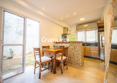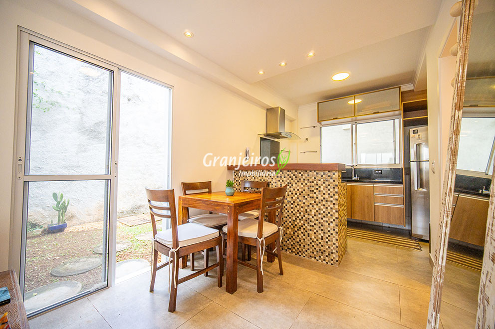 Charmoso sobrado à venda em condomínio fechado no bairro da Granja Viana, Cotia. Esta casa foi totalmente reformada e apresenta acabamentos modernos de excelente qualidade. O imóvel conta com 2 suítes amplas e bem iluminadas, com destaque para a suíte master que possui um aconchegante ofurô. São dois banheiros no total, todos com ótimo padrão de acabamento e ventilação natural. No pavimento térreo, a casa oferece uma sala de estar integrada à sala de jantar, criando um ambiente moderno e funcional. A cozinha americana é planejada, com armários sob medida e excelente aproveitamento de espaço. Há ainda um lavabo decorado, que complementa a área social. O grande diferencial está na área externa. O quintal é espaçoso, oferecendo uma agradável área gourmet com churrasqueira. O ambiente é cercado por muito verde e permite a instalação de rede ou mobiliário de descanso. A propriedade possui duas vagas de garagem e está localizada em um condomínio fechado com infraestrutura completa, segurança 24 horas e ambiente tranquilo. Localizado em um dos bairros mais desejados de Cotia, o sobrado está próximo a escolas, supermercados, comércios e ao fácil acesso pela Rodovia Raposo Tavares.