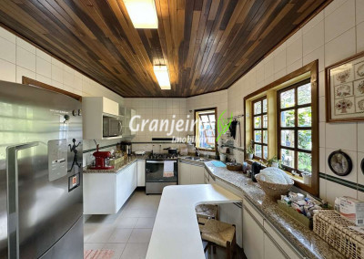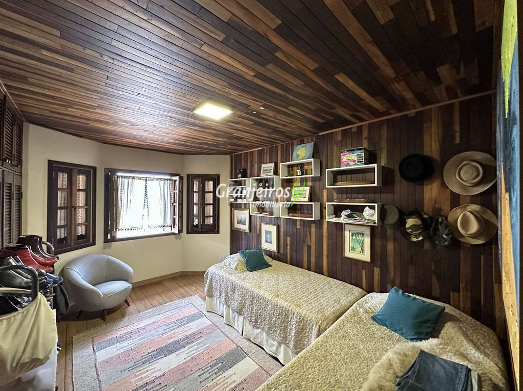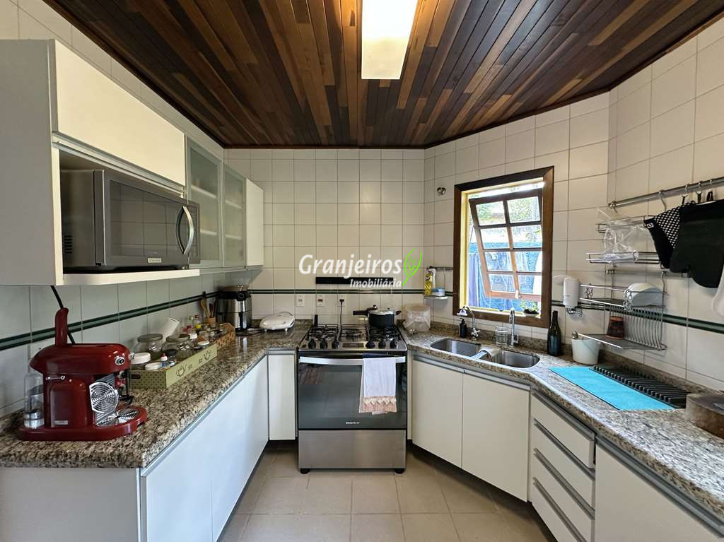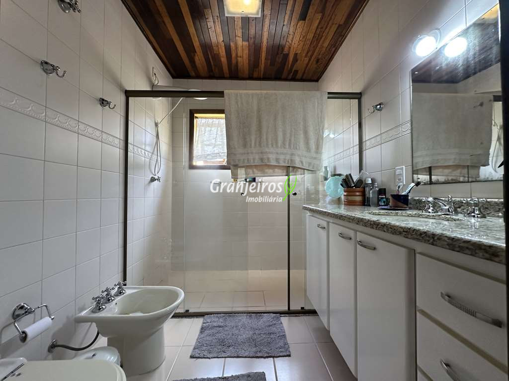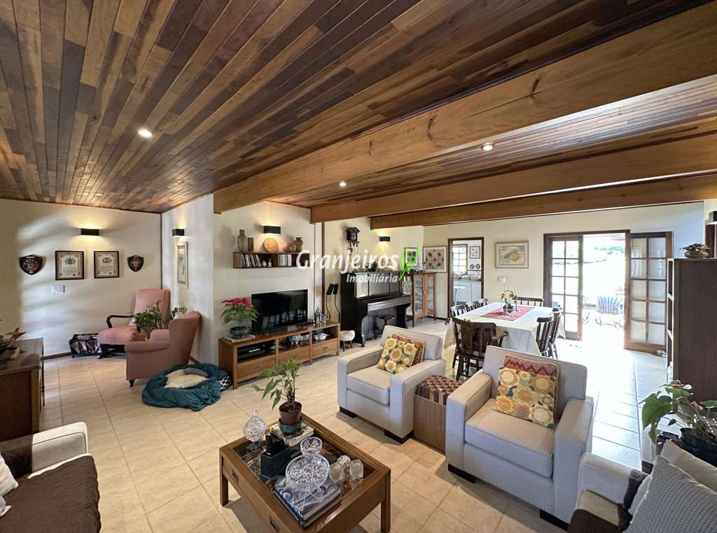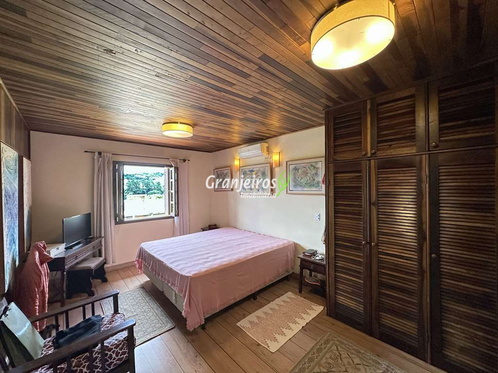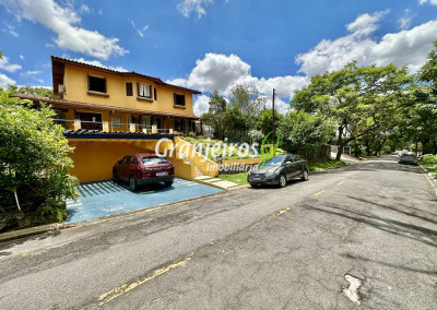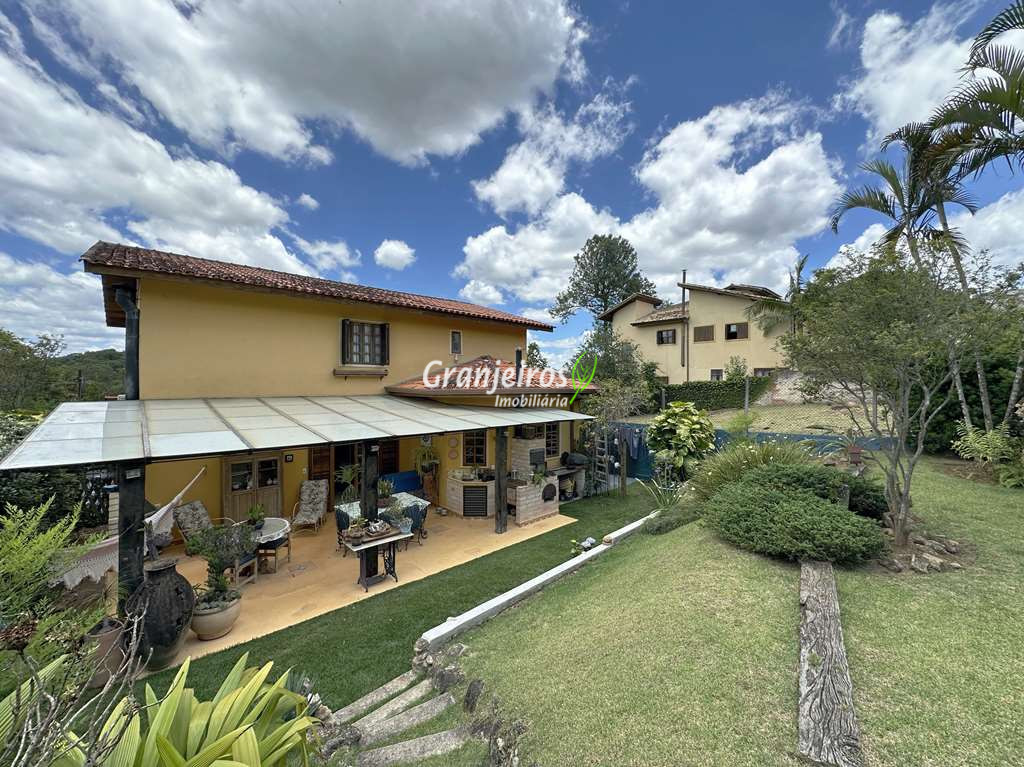 Casa rústica linda, avarandada, grande jardim com paisagismo e vista maravilhosa. Construção mista de alvenaria e madeira de lei (Imbuia). Ótima localização em rua tranquila e arborizada, sem saída. Grande jardim com paisagismo formado, frutíferas e gazebos. Living para 4 ambientes voltados para varanda e lazer, com grande jardim nos fundos e terreno lateral anexo. Estar, música, bar e jantar. Escritório/consultório com acesso interno, por uma entrada lateral externa independente. Varanda gourmet com cobertura de vidro, lareira e forno à lenha. Grande Jardim gramado, 3 gazebos, paisagismo formado com frutíferas, espaço para horta, pomar e piscina. Copa cozinha planejada repleta de armários com vista para o jardim. Área íntima com paredes internas de madeira. Hall íntimo / family room com roupeiro ideal para TV. São 3 dormitórios com armários, vista, sendo 1 suíte com ar-condicionado, closet e bay window. Banheiros com tampos em granito, espelho, gabinetes, box de vidro. 2 vagas descobertas.