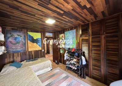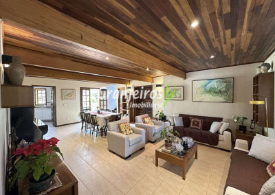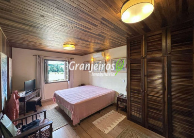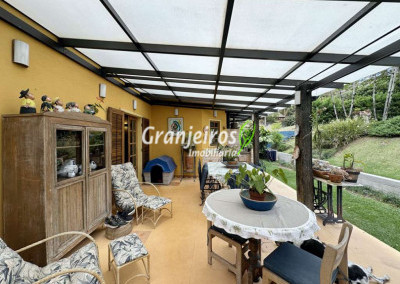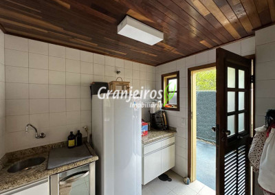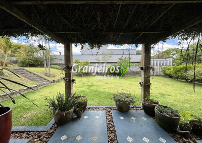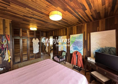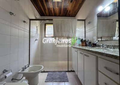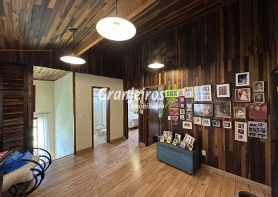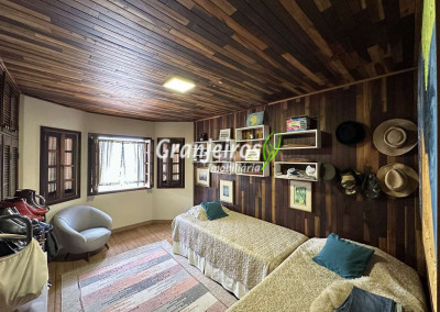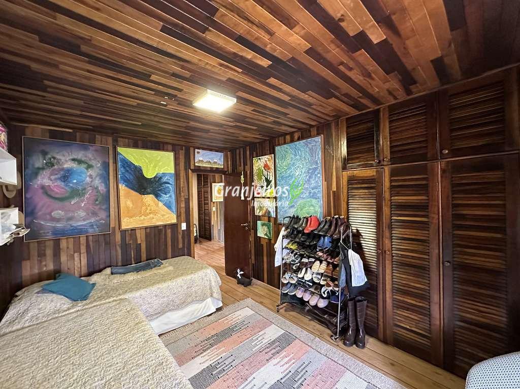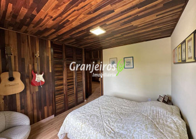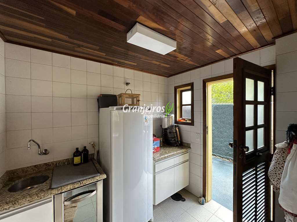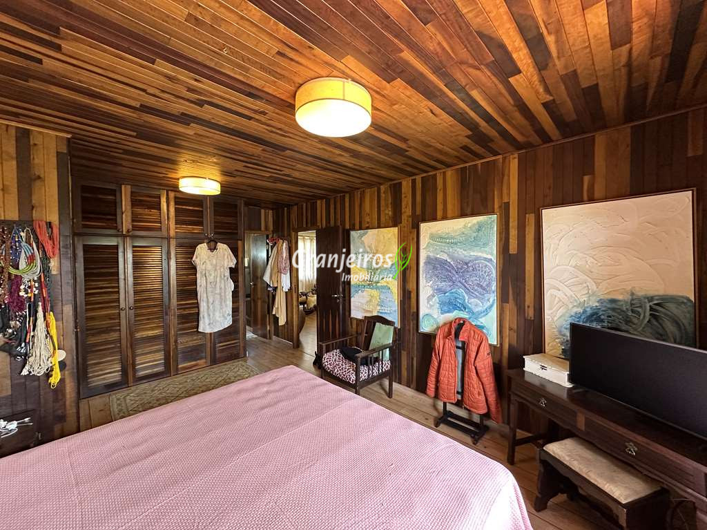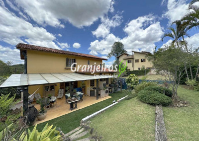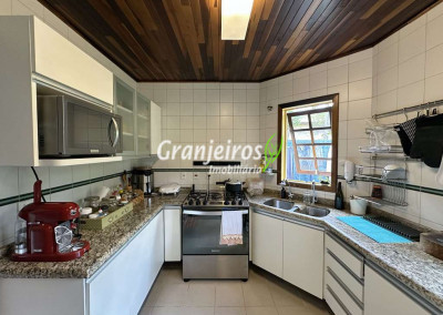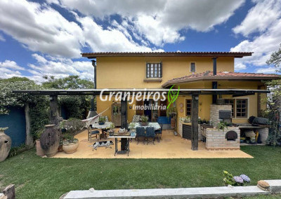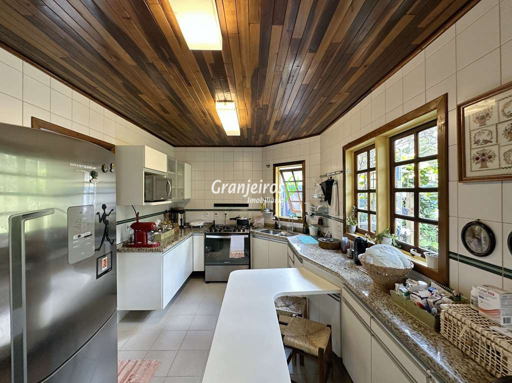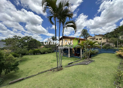 Casa rústica linda, avarandada, grande jardim com paisagismo e vista maravilhosa. Construção mista de alvenaria e madeira de lei (Imbuia). Ótima localização em rua tranquila e arborizada, sem saída. Grande jardim com paisagismo formado, frutíferas e gazebos. Living para 4 ambientes voltados para varanda e lazer, com grande jardim nos fundos e terreno lateral anexo. Estar, música, bar e jantar. Escritório/consultório com acesso interno, por uma entrada lateral externa independente. Varanda gourmet com cobertura de vidro, lareira e forno à lenha. Grande Jardim gramado, 3 gazebos, paisagismo formado com frutíferas, espaço para horta, pomar e piscina. Copa cozinha planejada repleta de armários com vista para o jardim. Área íntima com paredes internas de madeira. Hall íntimo / family room com roupeiro ideal para TV. São 3 dormitórios com armários, vista, sendo 1 suíte com ar-condicionado, closet e bay window. Banheiros com tampos em granito, espelho, gabinetes, box de vidro. 2 vagas descobertas.