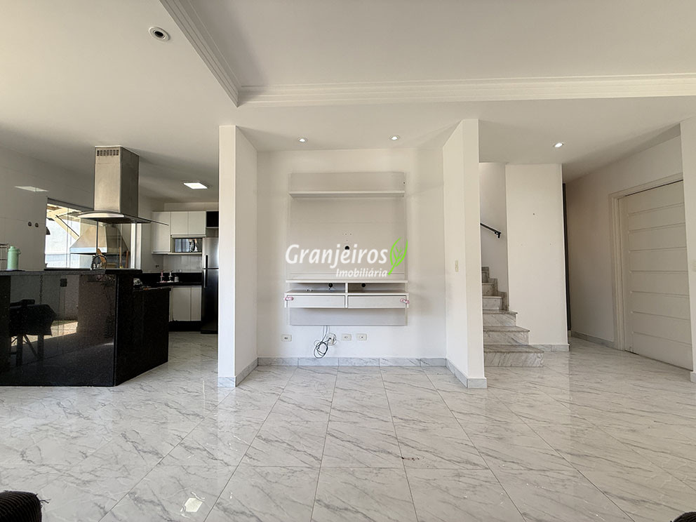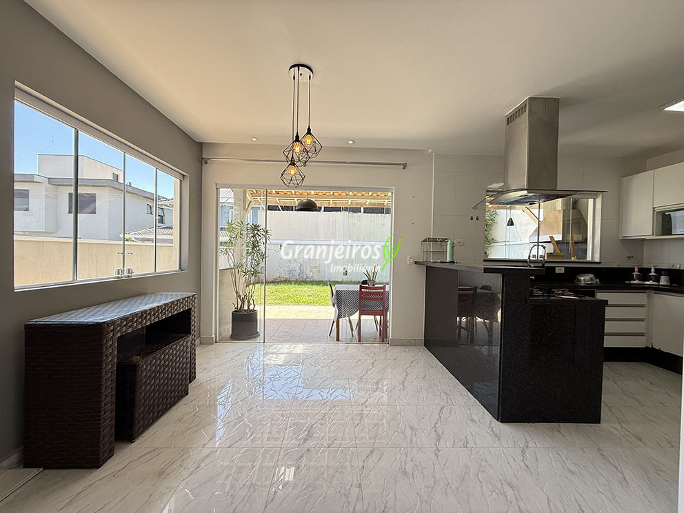 Esta Casa de Condomínio na Granja Viana, com 250m² de área total oferece espaços bem distribuídos e funcionalidade. Apresenta uma sala ampla para três ambientes, incluindo living com lareira e sala de jantar integrada à cozinha americana, totalmente equipada com armários planejados, cooktop, forno e despensa. A área íntima dispõe de três dormitórios, sendo uma suíte master com closet completo, roupeiro adicional, sacada frontal e banheiro com duas cubas e duas duchas. Complementam o imóvel duas vagas de garagem cobertas e uma área de serviço funcional. Localizada no desejado Condomínio Palm Hills, na Granja Viana, esta residência proporciona acesso a uma infraestrutura completa e segura. O condomínio oferece um clube privativo com piscina adulto e infantil, quadra poliesportiva, academia equipada, brinquedoteca, playground e mercado 24h, além de portaria e segurança 24 horas. Ideal para famílias que buscam conforto, lazer e tranquilidade em uma região valorizada de Cotia. Agende uma visita com a e conheça esta oportunidade.