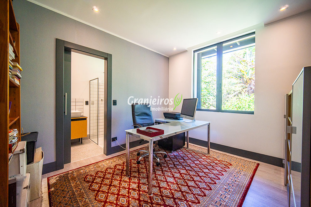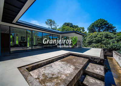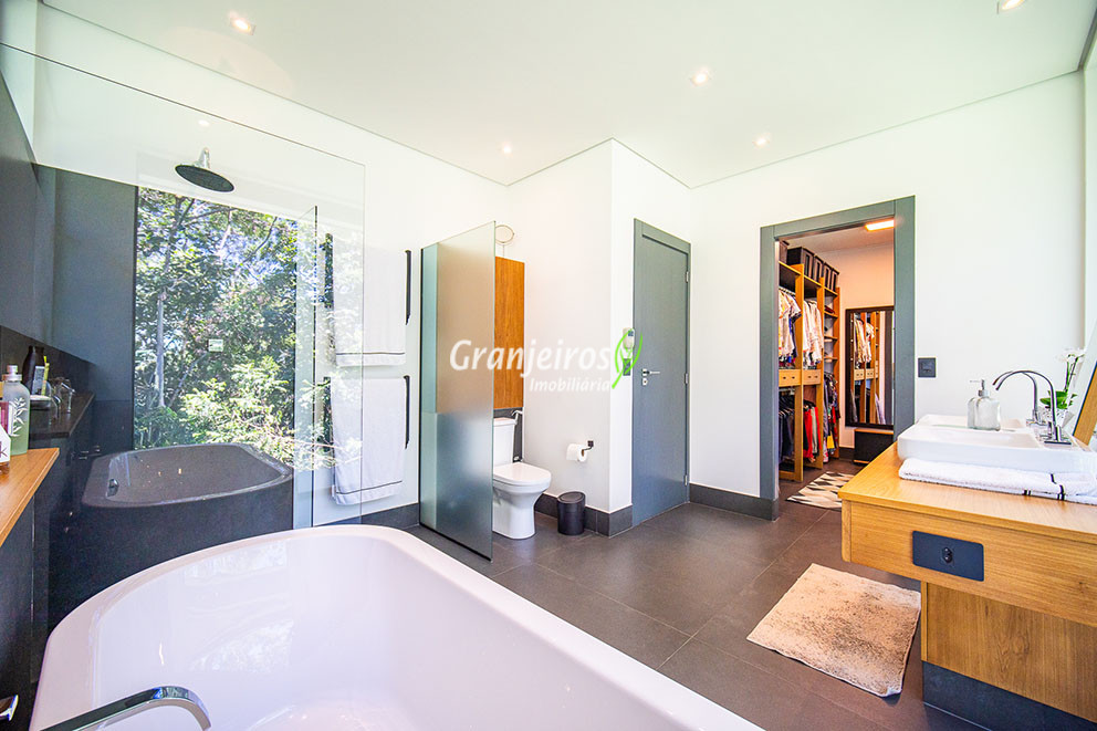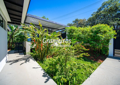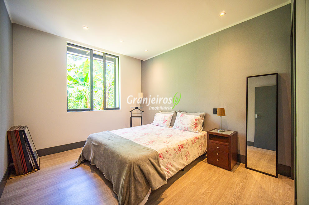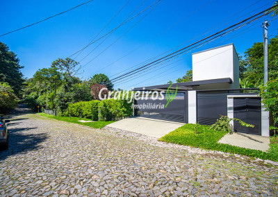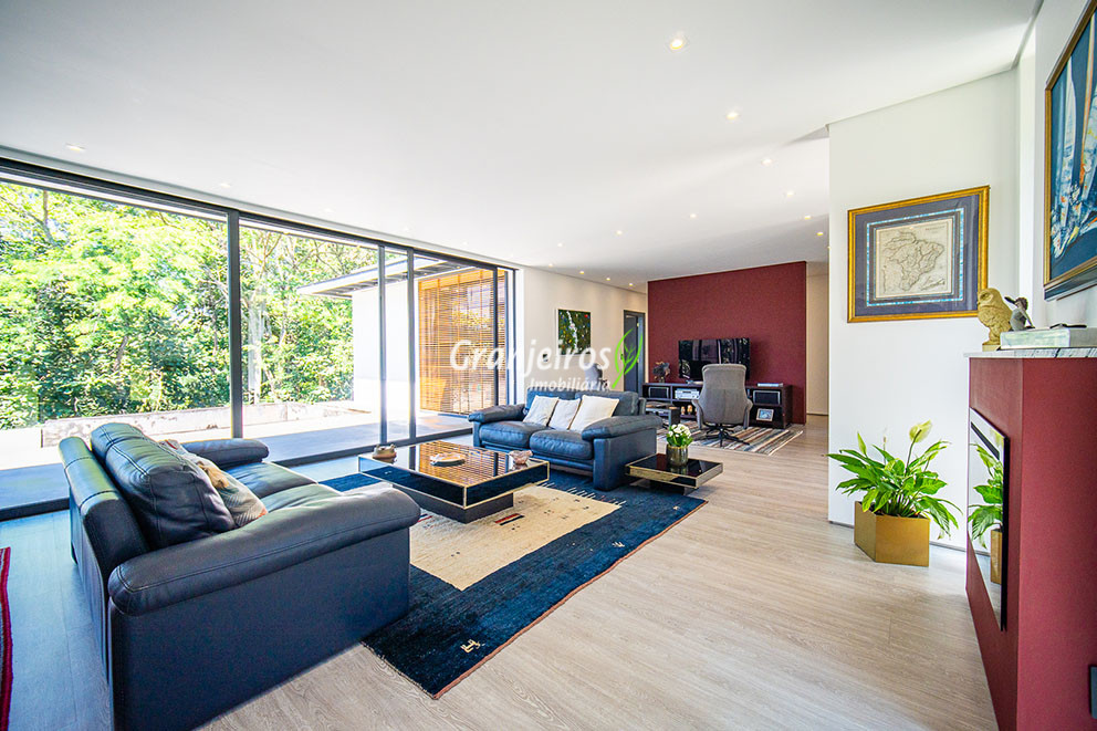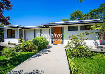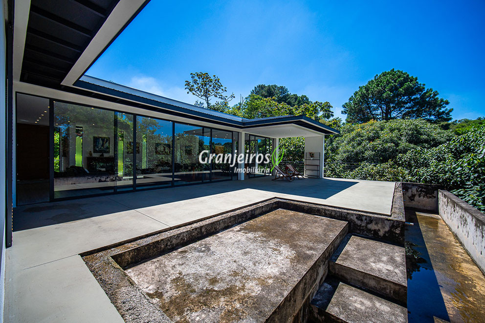 Casa térrea contemporânea, localizada no bairro Granja Viana. Implantada em um terreno privilegiado a residência oferece vista permanente para a copa das árvores garantindo privacidade silêncio e total integração com o verde. O projeto arquitetônico contemporâneo com inspiração californiana valoriza linhas retas grandes aberturas de vidro e abundante iluminação natural conectando os ambientes internos à paisagem externa O imóvel possui 3 suítes bem distribuídas com ótima ventilação e iluminação natural proporcionando conforto e funcionalidade no dia a dia. Os banheiros somam cinco ambientes bem planejados atendendo perfeitamente a área íntima e social da casa com acabamentos de qualidade oferecendo excelente aproveitamento dos espaços e contato direto com a natureza. A área social é integrada com sala de estar jantar e cozinha voltadas para a vista panorâmica da mata. A casa conta com cozinha planejada armários embutidos amplo quintal e energia fotovoltaica reforçando o conceito de sustentabilidade eficiência e manutenção simplificada. Localizada no condomínio Paisagem Renoir II e III a residência oferece segurança completa com portaria e monitoramento vinte e quatro horas além de duas vagas de garagem.
