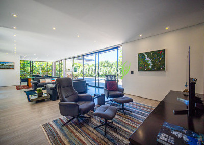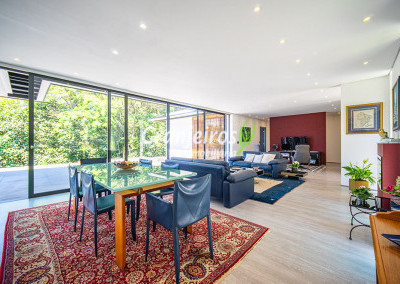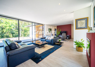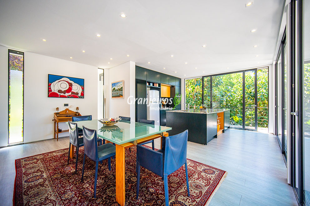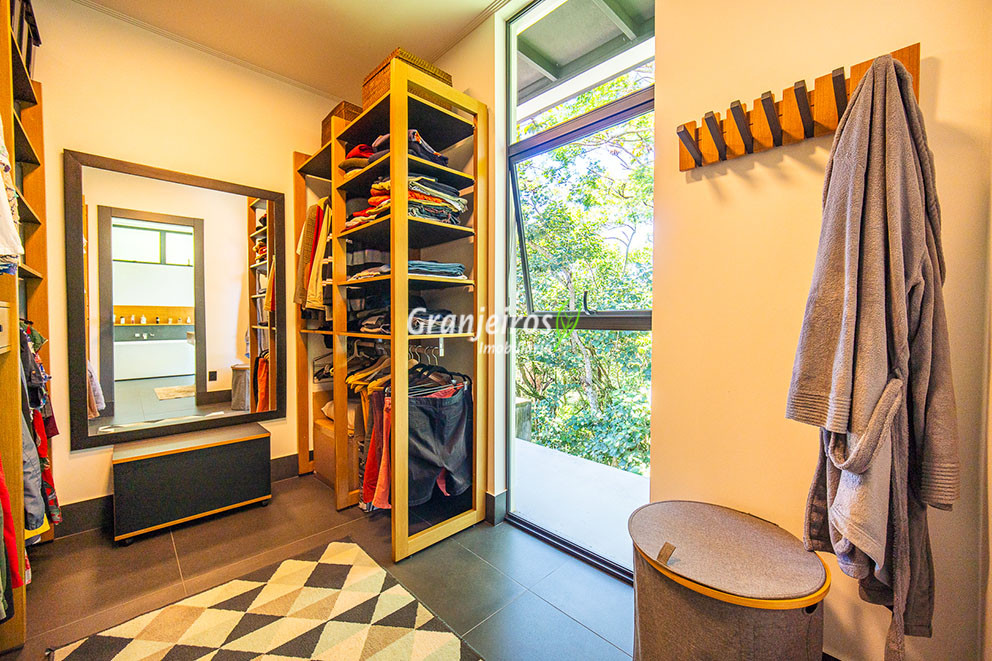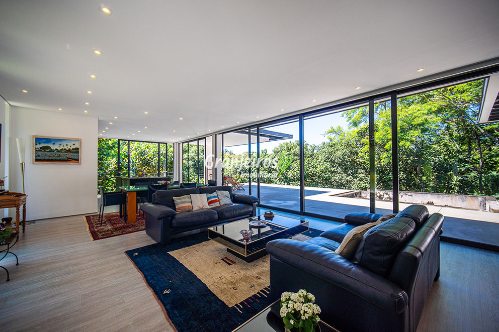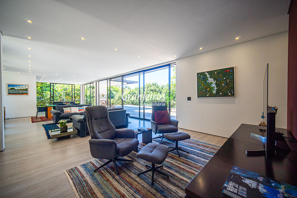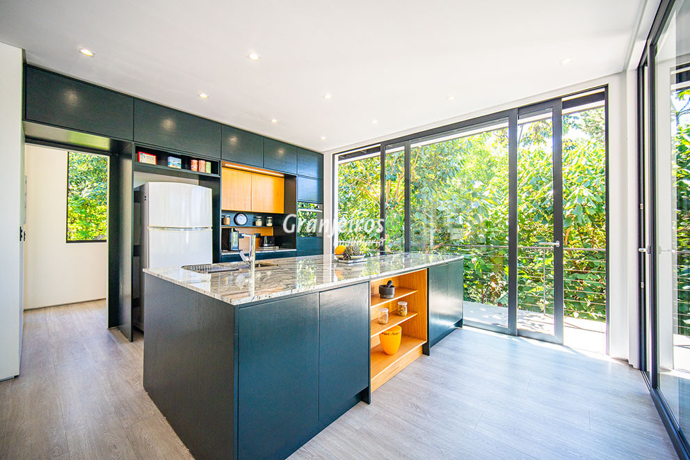 Casa térrea contemporânea, localizada no bairro Granja Viana. Implantada em um terreno privilegiado a residência oferece vista permanente para a copa das árvores garantindo privacidade silêncio e total integração com o verde. O projeto arquitetônico contemporâneo com inspiração californiana valoriza linhas retas grandes aberturas de vidro e abundante iluminação natural conectando os ambientes internos à paisagem externa O imóvel possui 3 suítes bem distribuídas com ótima ventilação e iluminação natural proporcionando conforto e funcionalidade no dia a dia. Os banheiros somam cinco ambientes bem planejados atendendo perfeitamente a área íntima e social da casa com acabamentos de qualidade oferecendo excelente aproveitamento dos espaços e contato direto com a natureza. A área social é integrada com sala de estar jantar e cozinha voltadas para a vista panorâmica da mata. A casa conta com cozinha planejada armários embutidos amplo quintal e energia fotovoltaica reforçando o conceito de sustentabilidade eficiência e manutenção simplificada. Localizada no condomínio Paisagem Renoir II e III a residência oferece segurança completa com portaria e monitoramento vinte e quatro horas além de duas vagas de garagem.