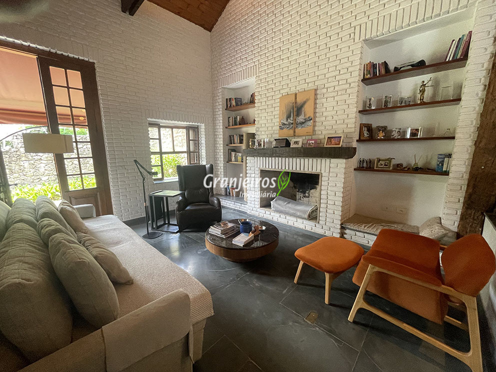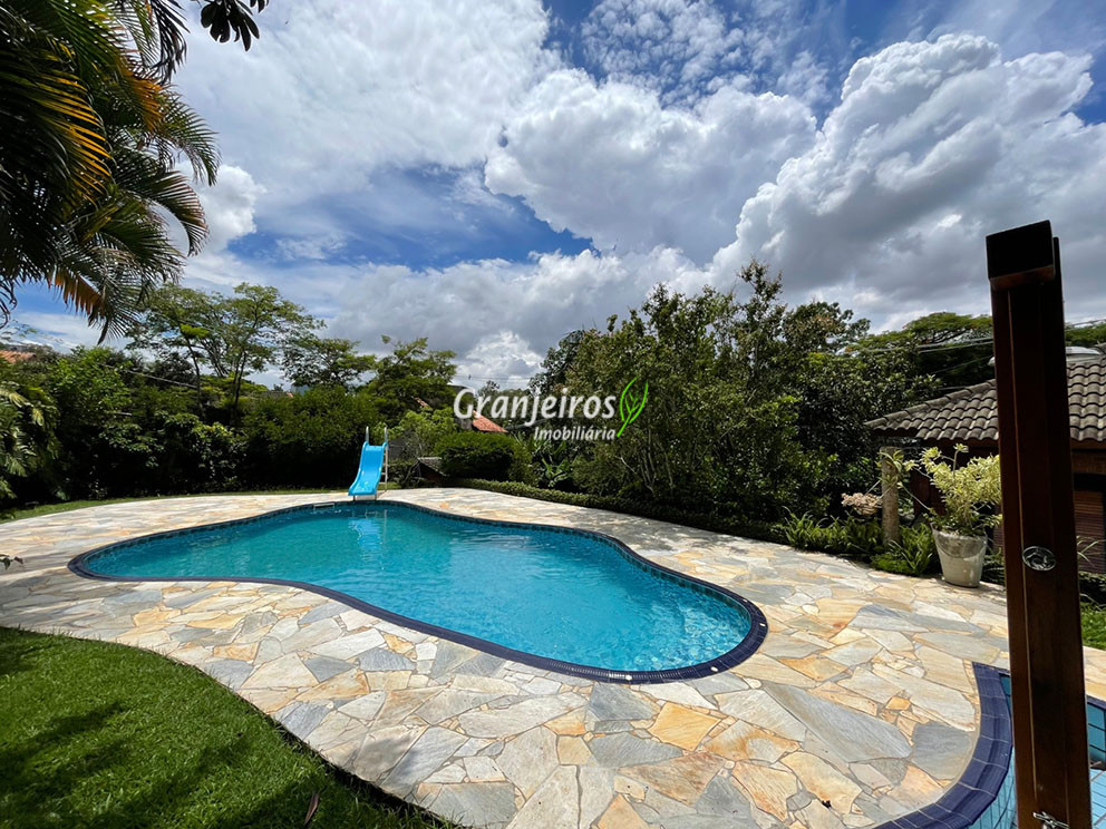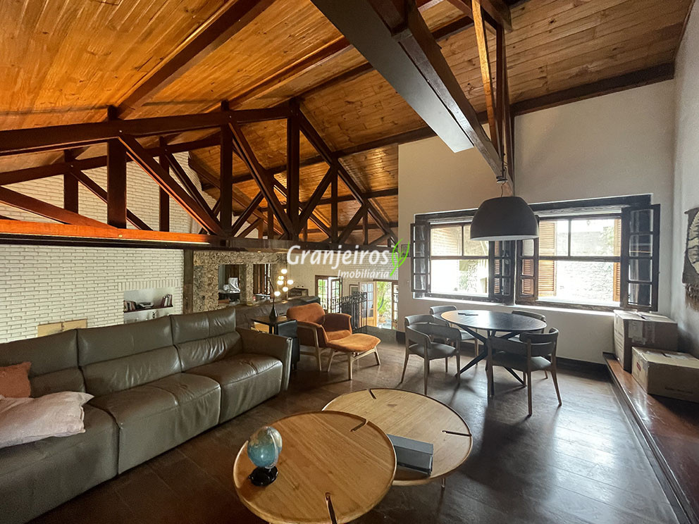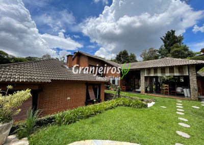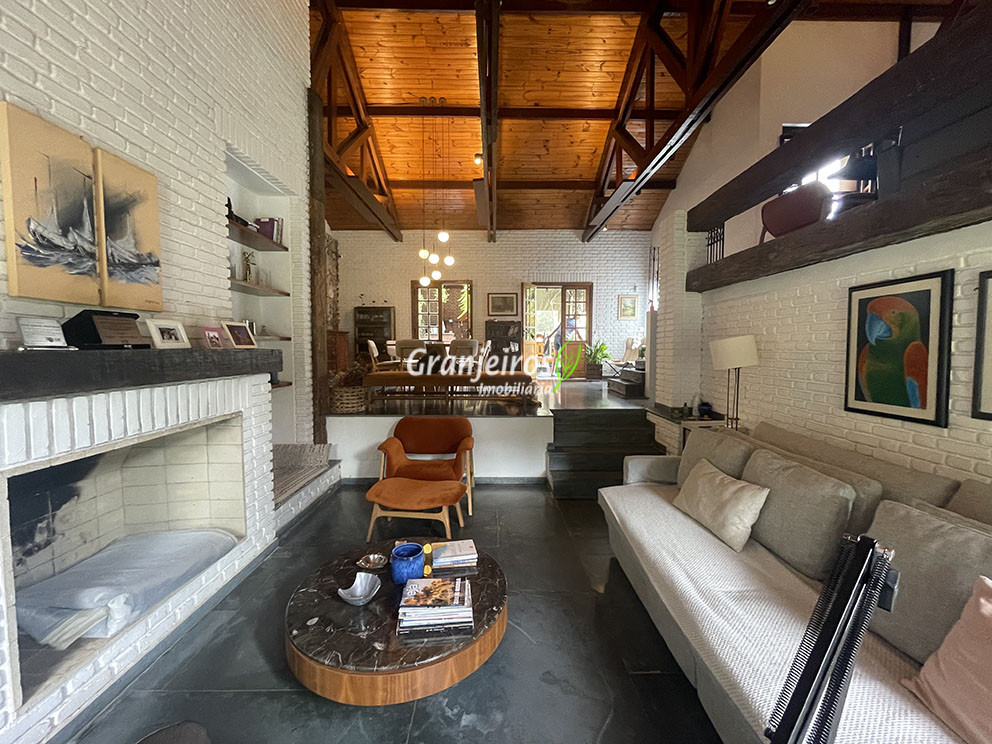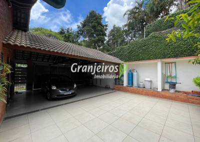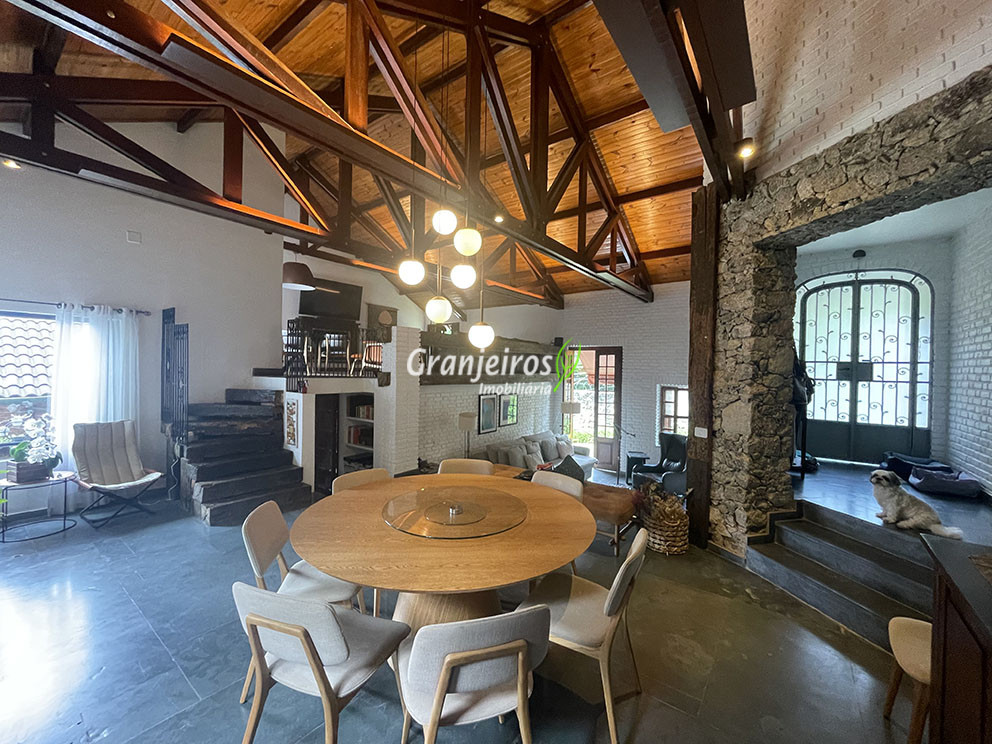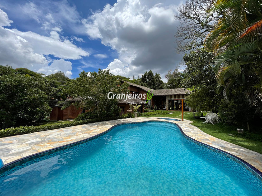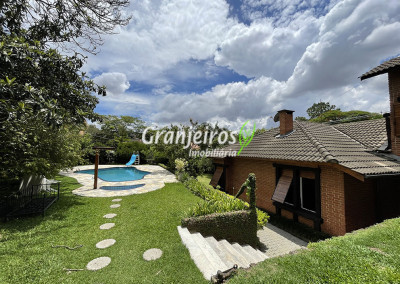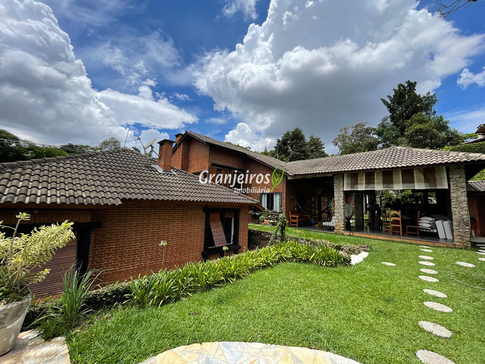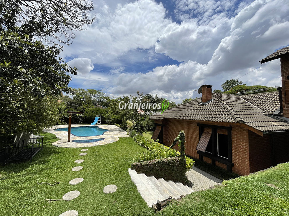 Casa térrea, estilo clássico da Granja Viana, em condomínio no bairro Chácara São João. Ideal para quem busca espaço, conforto e qualidade de vida em um dos endereços mais tranquilos e valorizados da região. O imóvel oferece ambientes amplos e bem distribuídos. São 4 amplos dormitórios, sendo 1 suíte espaçosa com grande closet e banheiro com hidromassagem. Conta ainda com um dormitório com lareira. A casa possui uma área de lazer generosa com piscina e lindo jardim, espaço gourmet com churrasqueira com dois ambientes com vista para a piscina, além de espaço para sauna e pomar com vária espécies frutíferas, horta e casinha de bonecas. Nos ambientes internos são 3 salas, sendo a principal com lareira e sala de jantar com fácil acesso a cozinha, esta repleta de armários planejados e despensa, mezanino espaçoso para home theater ou sala íntima. Na área de serviço, temos dormitório de empregados com banheiro privativo. Conta ainda com espaço anexo com casa de caseiros, lavanderia e quintal. Garagem abriga 4 veículos sendo 2 vagas cobertas. A casa possui energia solar proporcionando boa economia. Localizada em um condomínio fechado com segurança, próximo a todas as facilidades, escolas, comércio, restaurantes e supermercados.