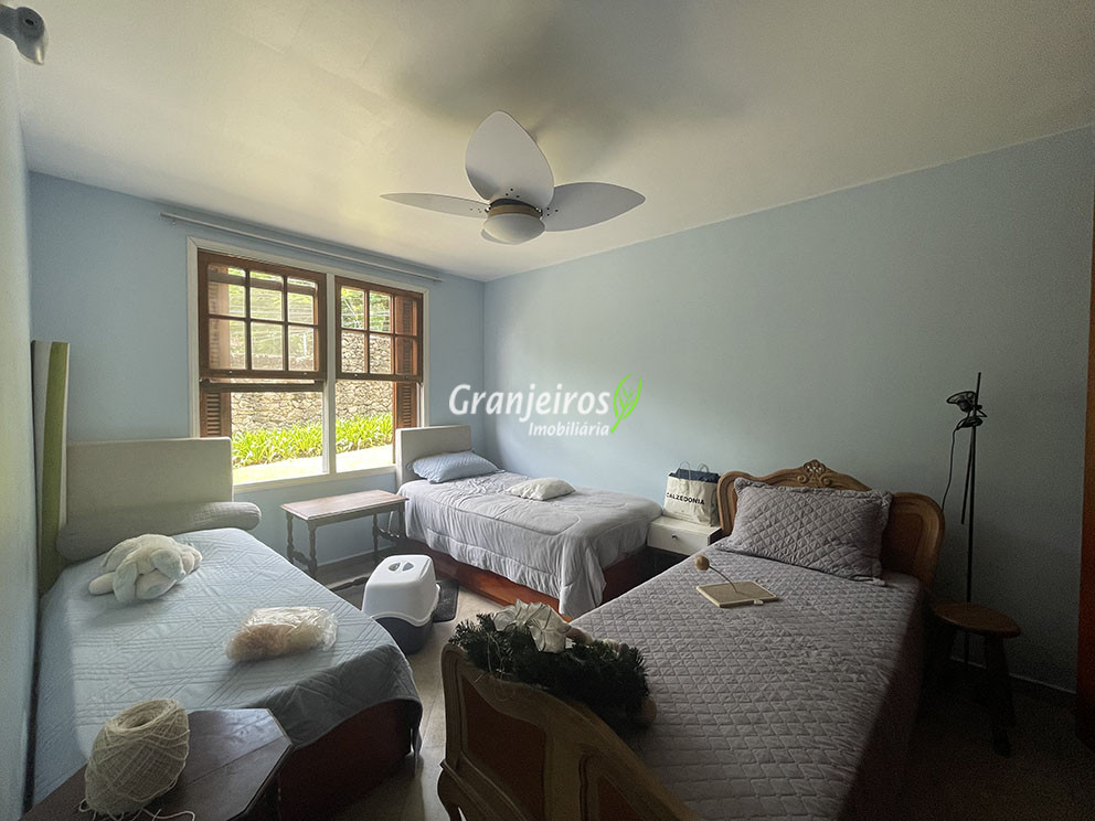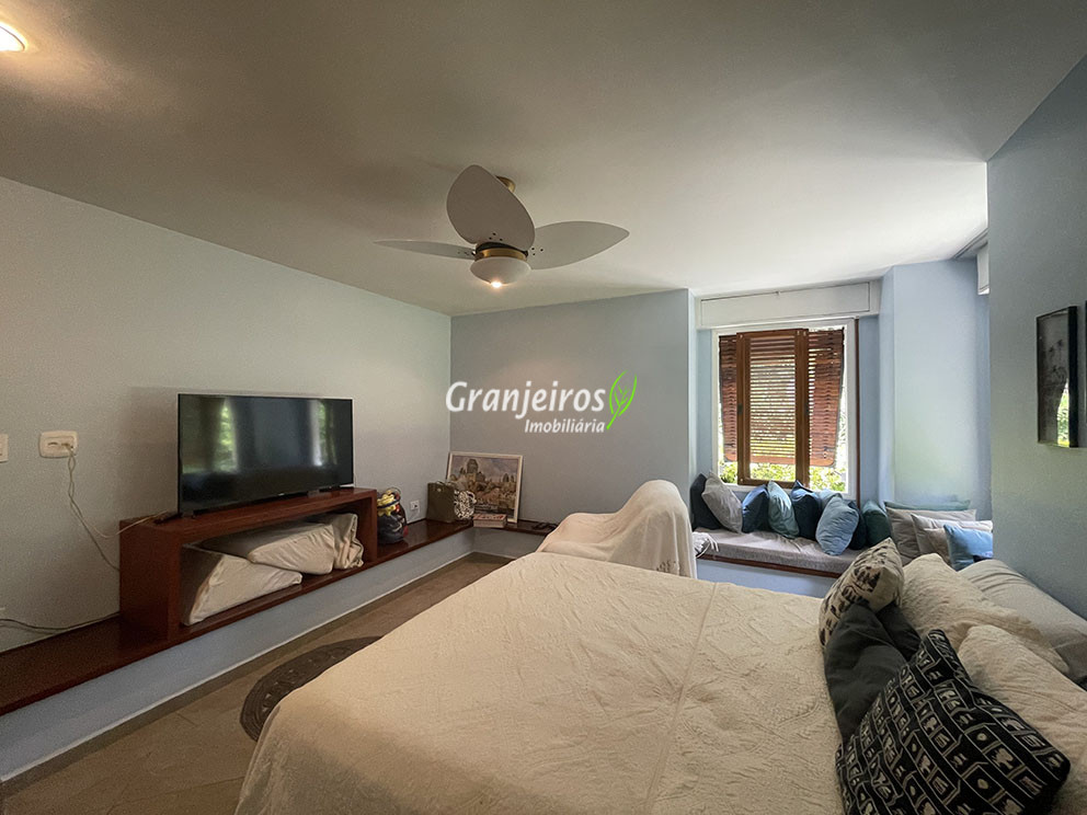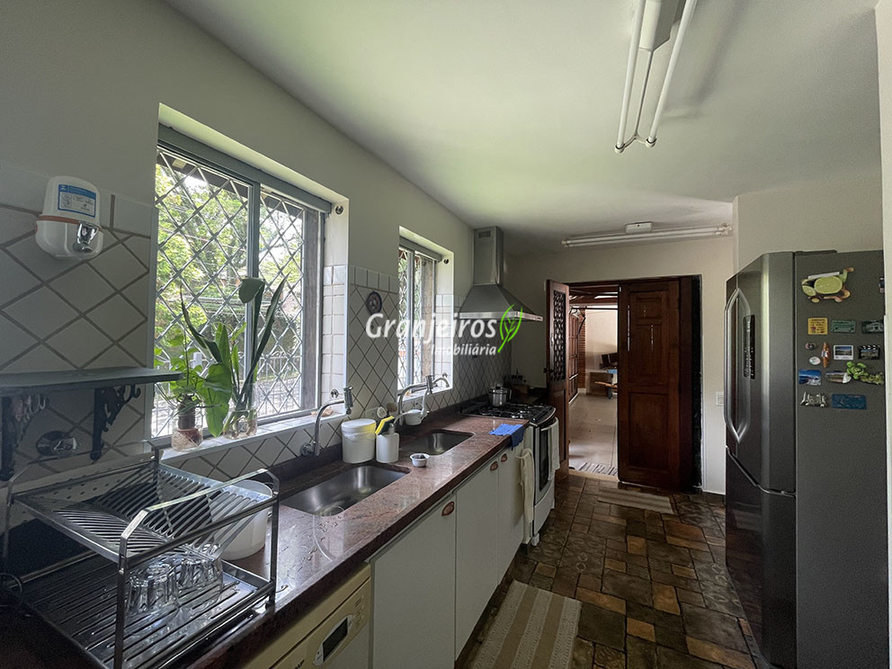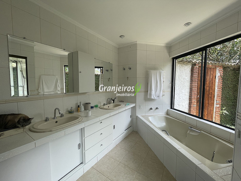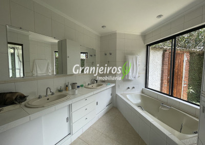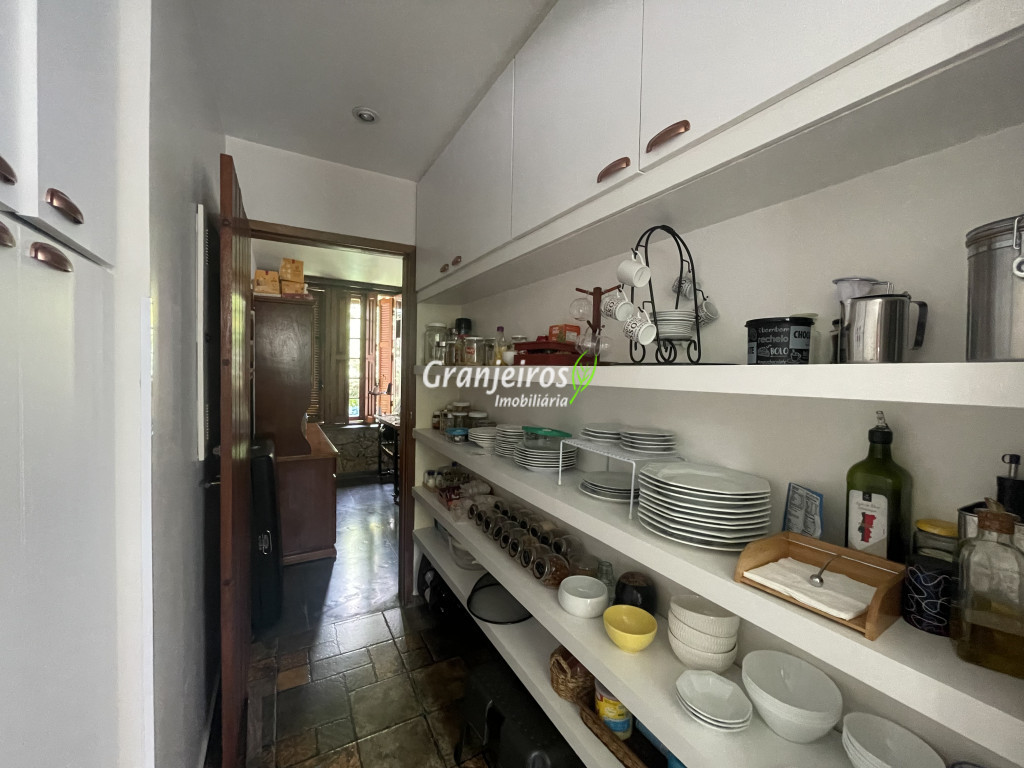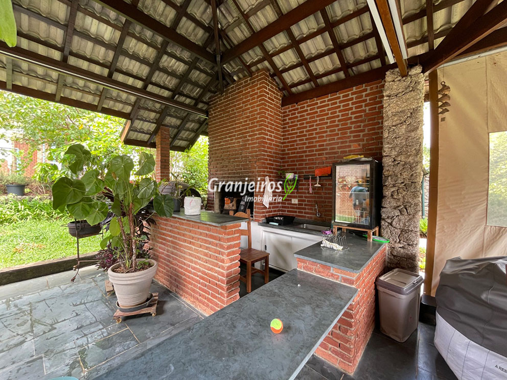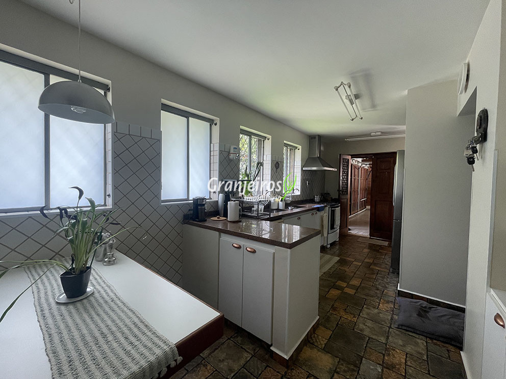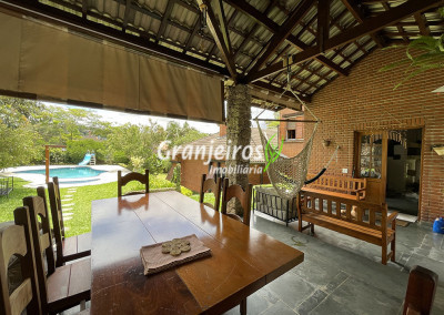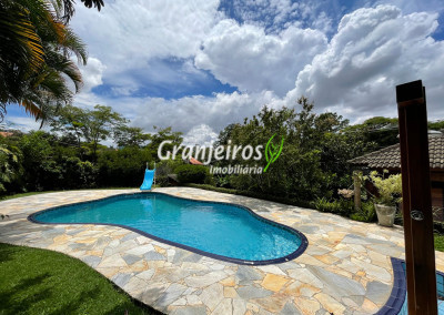 Casa térrea, estilo clássico da Granja Viana, em condomínio no bairro Chácara São João. Ideal para quem busca espaço, conforto e qualidade de vida em um dos endereços mais tranquilos e valorizados da região. O imóvel oferece ambientes amplos e bem distribuídos. São 4 amplos dormitórios, sendo 1 suíte espaçosa com grande closet e banheiro com hidromassagem. Conta ainda com um dormitório com lareira. A casa possui uma área de lazer generosa com piscina e lindo jardim, espaço gourmet com churrasqueira com dois ambientes com vista para a piscina, além de espaço para sauna e pomar com vária espécies frutíferas, horta e casinha de bonecas. Nos ambientes internos são 3 salas, sendo a principal com lareira e sala de jantar com fácil acesso a cozinha, esta repleta de armários planejados e despensa, mezanino espaçoso para home theater ou sala íntima. Na área de serviço, temos dormitório de empregados com banheiro privativo. Conta ainda com espaço anexo com casa de caseiros, lavanderia e quintal. Garagem abriga 4 veículos sendo 2 vagas cobertas. A casa possui energia solar proporcionando boa economia. Localizada em um condomínio fechado com segurança, próximo a todas as facilidades, escolas, comércio, restaurantes e supermercados.