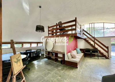 Além da residência principal, o imóvel oferece uma segunda construção independente, extremamente versátil, que abriga: