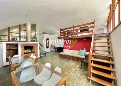 A casa principal foi concebida em formato loft, privilegiando integração, luz natural e fluidez dos ambientes. Atualmente conta com 1 ampla suíte com closet, em um layout que valoriza o espaço e o conforto.