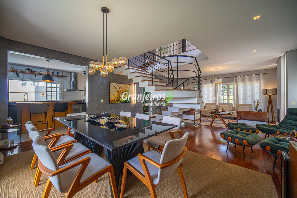 Localizada no condomínio Le Vivert Residencial, no centro da Granja Viana, esta casa oferece o equilíbrio ideal entre sofisticação, conforto e contato com a natureza. O bairro é um dos mais valorizados da região, com fácil acesso a comércios, escolas, academias e áreas de lazer, tornando a experiência de morar aqui ainda mais completa. A casa possui 4 suítes, com destaque para a suíte master que oferece um ambiente exclusivo com sauna privativa e amplo closet. O projeto arquitetônico prioriza integração e funcionalidade, com living para três ambientes e lareira, garantindo conforto nos momentos de convivência. A cozinha em conceito aberto é equipada com armários planejados e acabamentos modernos que valorizam a área social da residência. O imóvel conta com cinco banheiros, bem distribuídos para atender às necessidades da família com praticidade. A área externa é espaçosa, com um quintal agradável e espaço gourmet. Com aquecimento a gás, área de serviço privativa e garagem para 4 veículos, sendo 2 vagas cobertas.