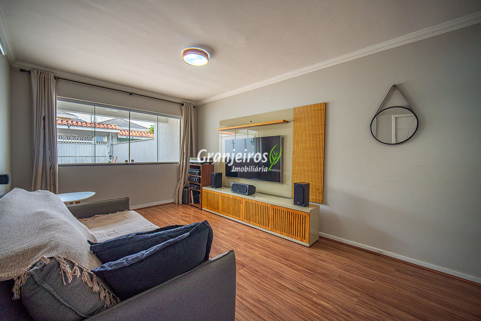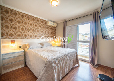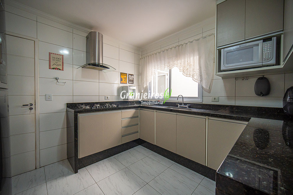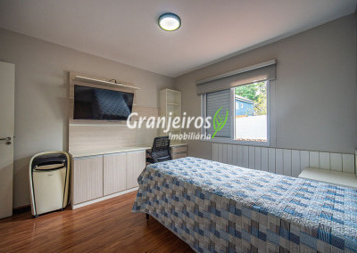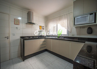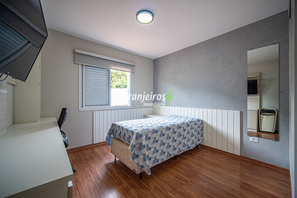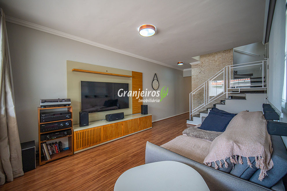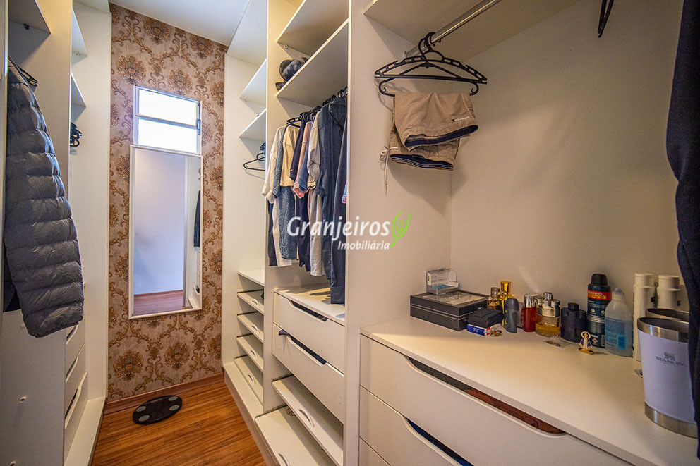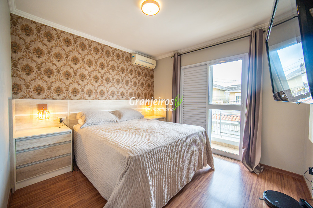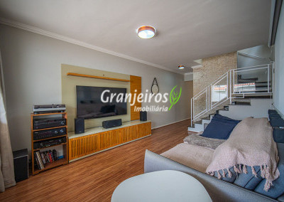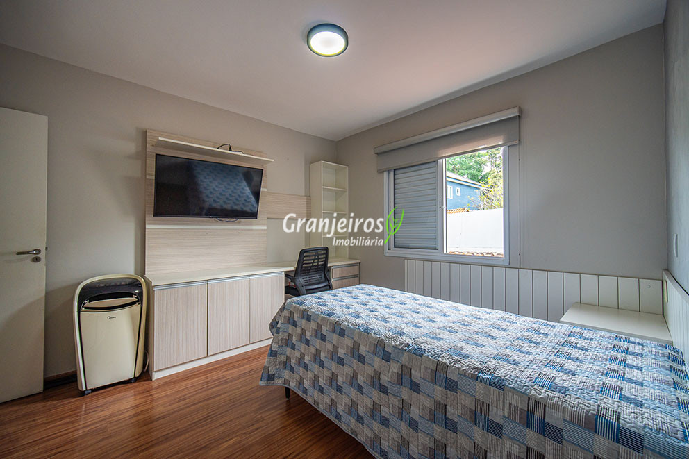 Casa aconchegante para sua família no Condomínio Chácara Cantagalo, localizada no Km 25 da Granja Viana. O bairro oferece tranquilidade, segurança e fácil acesso a comércios e serviços da região. A entrada lateral leva à sala de TV, conectada a um lavabo e à sala de jantar, climatizada com ar-condicionado, com piso laminado em todo o percurso, garantindo conforto e integração dos ambientes. A cozinha possui armários planejados e bancada em U, formando um triângulo de trabalho ergonômico, ideal para o preparo das refeições. A passagem leva à área de serviço com tanque de cerâmica e ao espaço gourmet, que conta com parede em cimento queimado, bancada com pia, armários e espaço para churrasqueira. A área externa possui corredor lateral que dá acesso aos fundos, ampliando a funcionalidade da casa. Na área íntima, são três quartos, sendo uma suíte com closet, todos com armários planejados, oferecendo conforto, organização e privacidade para toda a família.