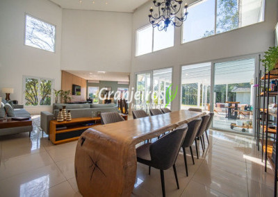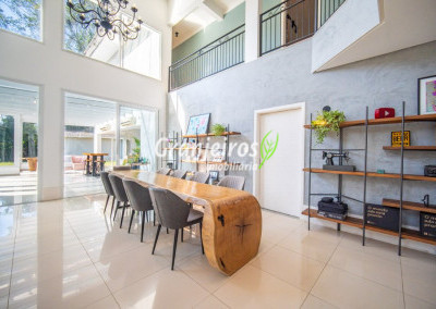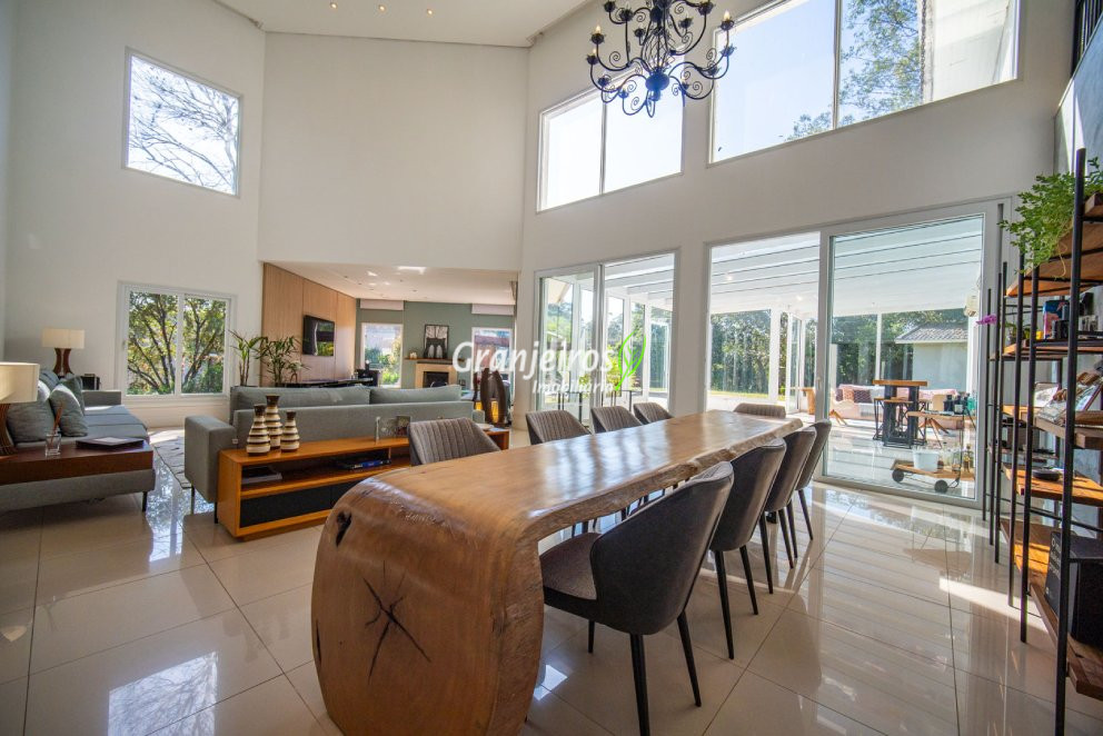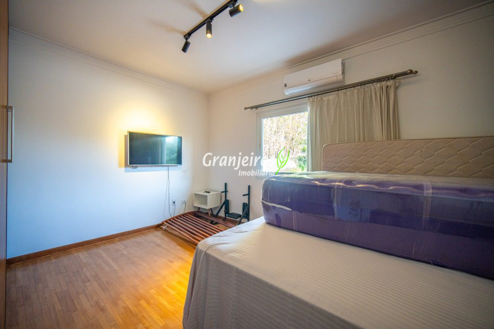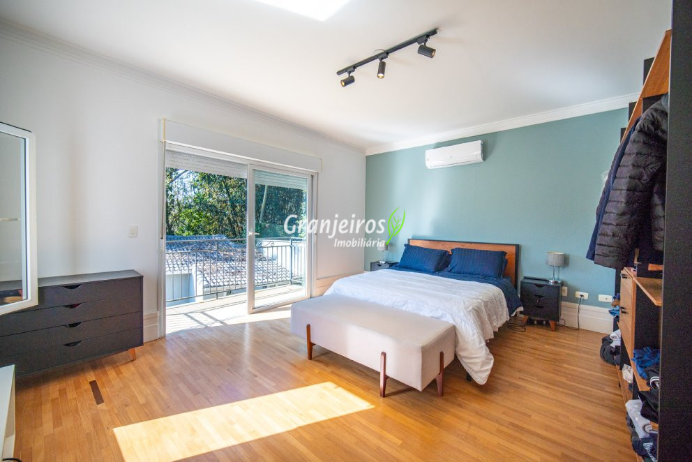 Residência projetada para oferecer espaços amplos e integrados, privilegiando o contato com a natureza e a qualidade de vida. A área externa é completa, com piscina privativa, deck ensolarado e um belo jardim, ideal para momentos de lazer em família. O imóvel conta com quatro quartos bem distribuídos, incluindo suítes confortáveis, além de banheiros modernos com acabamentos de alto padrão. As salas são espaçosas e integradas, criando um ambiente acolhedor e sofisticado que valoriza a iluminação natural. O destaque está na tecnologia e eficiência energética. A casa possui sistema fotovoltaico premium, com aproximadamente 80 painéis solares de última geração, que produzem em média 2,8 MWh/mês. Essa estrutura garante energia suficiente para manter a piscina aquecida, os aparelhos de ar-condicionado e o boiler em funcionamento contínuo, além de gerar uma economia significativa. O excedente ainda permite carregar veículos elétricos com autonomia de até sete mil quilômetros por mês. Outro diferencial é a preparação para automação residencial. A iluminação externa já é automatizada via Wi-Fi e toda a estrutura interna é compatível com sistemas europeus, como o Zigbee, possibilitando integração com soluções inteligentes de mercado. O condomínio Euroville oferece segurança 24 horas, monitoramento completo e excelente infraestrutura. A localização é estratégica, próxima a escolas, comércios e serviços, além de fácil acesso à Rodovia Raposo Tavares. Mais do que uma casa, este imóvel representa um estilo de vida sustentável e sofisticado no coração da Granja Viana, em uma das áreas mais valorizadas da região.
