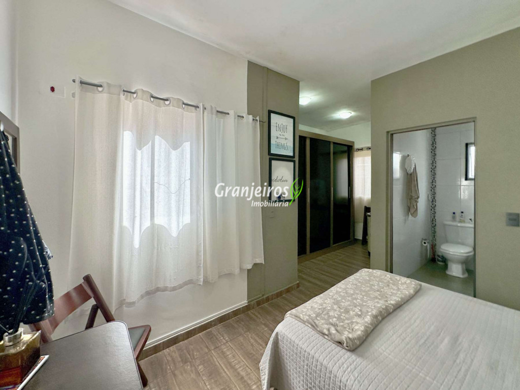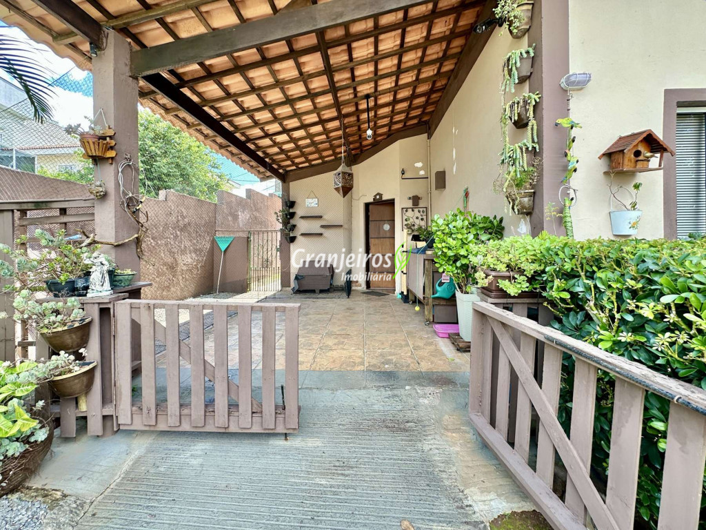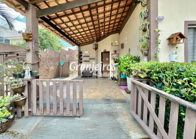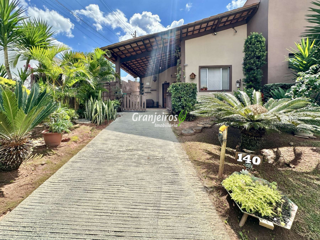 Casa TÉRREA em ótimo condomínio, com estrutura que permite até transformar num sobrado, apenas reforçando a laje. Casa única pelo seu valor e charme, localizada no miolo do condomínio.Pé direito com 3 metros. Imóvel com armários. Pisos em porcelanato rústico e cerâmica. Jardim com paisagismo formado. Quintal com espaço para horta e lazer com churrasqueira e um SPA com hidro. 2 dormitórios, sendo 1 suíte com espaço para closet. 2 banheiros, gabinete, espelho e box de vidro. Living para 3 ambientes:Estar, TV, jantar/bar. Lavabo com chuveiro.Cozinha planejada com armários e gabinetes, tampo em granito e cuba inox. Área de serviço aberta ensolarada integrada à cozinha, quintal e lavanderia fechada com tanque. Quintal com espaço para área gourmet e um SPA com hidro. Garagem para 3 vagas, sendo 1 coberta.