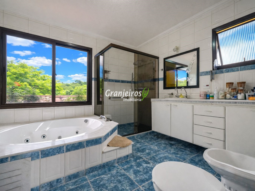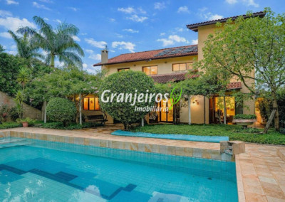 Projeto arquitetônico diferenciado com vista privilegiada. Living para 3 ambientes com paredes envidraçadas trazendo belíssima vista, muita claridade e ventilação. Salas de estar, lareira e jantar. Copa cozinha com planejados. Escritório. Mezanino utilizado como Home theater. São 3 suítes, master com lareira, terraço (vista), closet e wc com hidro, mais um dorm. com terraço, banheiros com bancadas de mármore, box blindex, Área Gourmet com charmosa cozinha e churrasqueira. Área de lazer com Sala de Jogos e espaço lounge. Linda piscina com aquecimento e wc. Suíte de empregada. Pomar. Terraço com cerâmica decorada, gesso trabalhado, luminárias projetadas, armários em madeira de lei, muito vidro compõem a casa. Oficina interna com Lavabo. Paisagismo implantado. Permuta: Estuda até 50% do valor em imóvel nas regiões de Osasco e Vila São Francisco.