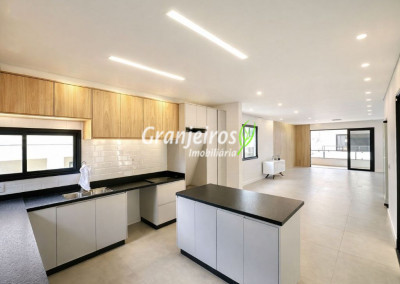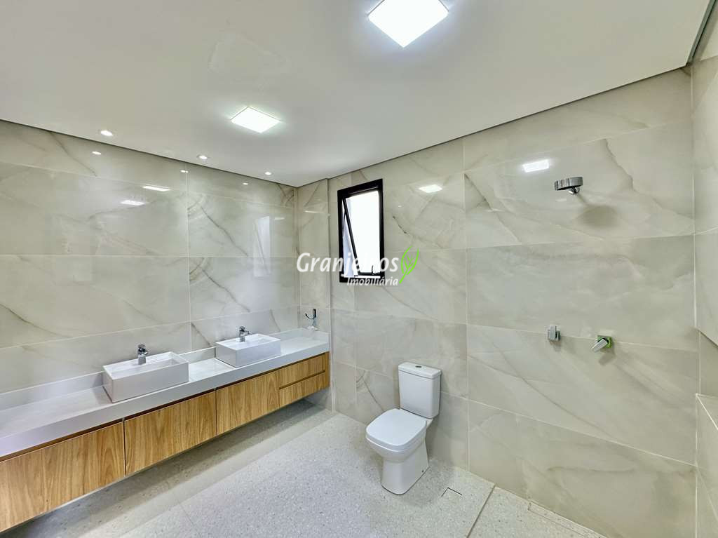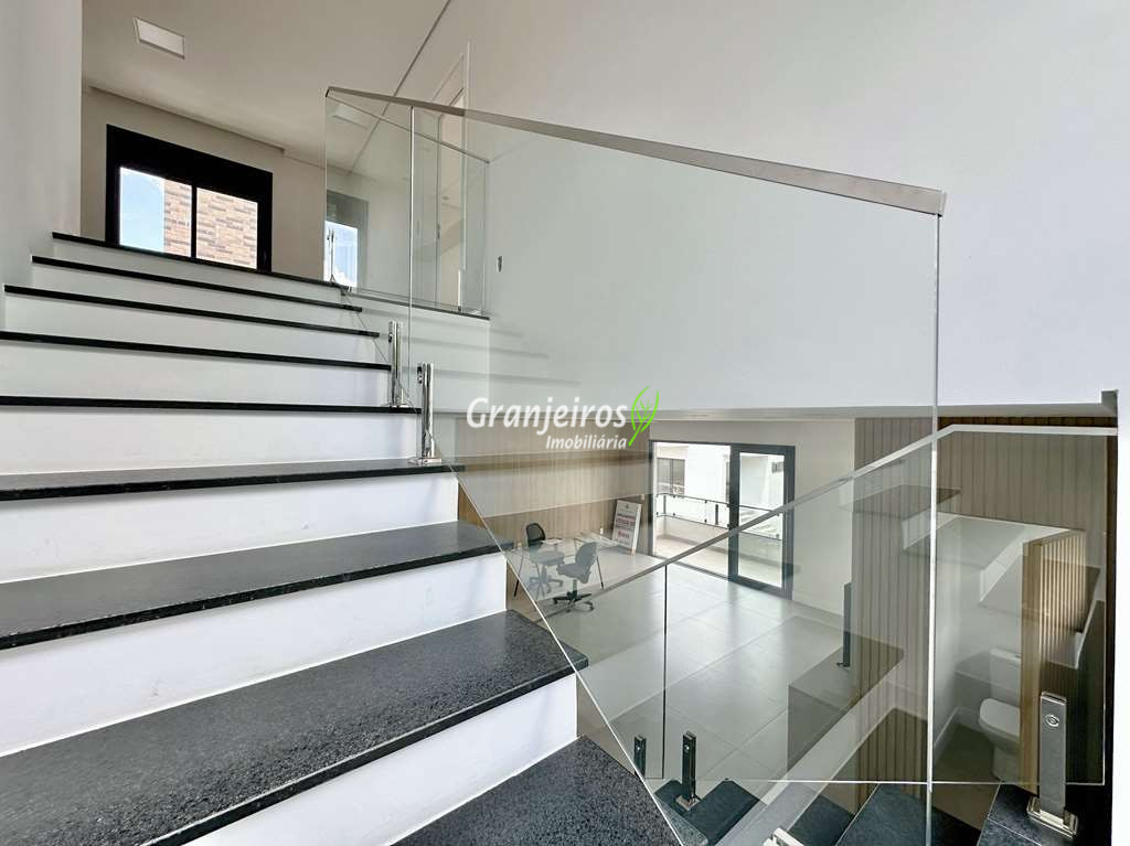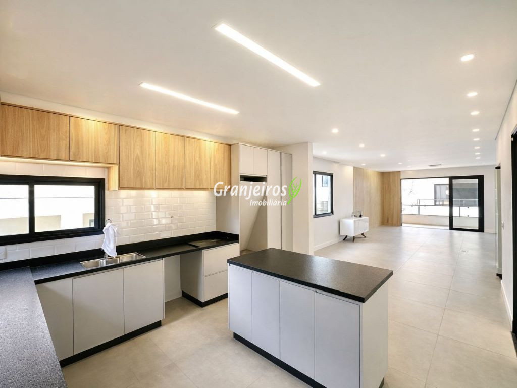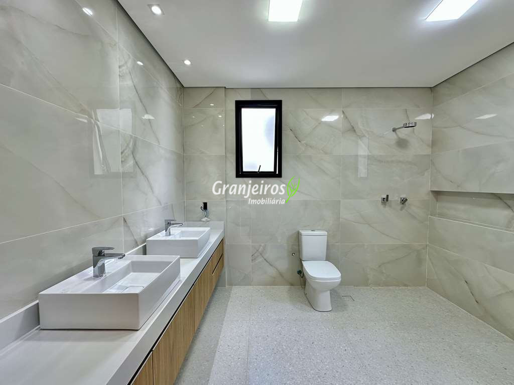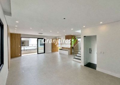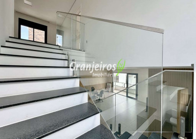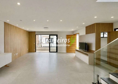 Novíssima! Excelente localização, perto dos melhores comércios e serviços da região. Shoppings, supermercados, escolas, farmácias, padarias, restaurantes, bancos, postos de gasolina, academias etc. Ótima vista com privacidade. Living para 4 ambientes integrados à cozinha, varanda gourmet e terraço. Jantar, estar, TV e bar. Lavabo. Varanda Gourmet planejada com armários e gabinetes, bancada em “L” com tampos em pedra São Gabriel escovada, cuba inox, torneira gourmet e ilha com balcão para 2 bancos. Hall íntimo no piso superior com sala para TV/escritório, podendo ser revertido para ser o 4º dormitório. São 3 suítes, sendo a master com closet, terraço com guarda corpo de vidro e metal. Banheiros com tampos, louças e metais sanitários, revestimento do piso e paredes até o teto em porcelanato, sendo a master com 2 cubas. Escada de revestidas com acesso interno ao living pela garagem. Área se serviço aberta ensolarada e lavanderia planejada com armários, bancada em granito e tanque inox. Apartamento de serviço com quarto, banheiro e acesso externo pela garagem. Depósito sob a escada de acesso ao pavimento térreo. Garagem coberta para 4 carros. Aquecimento: Boiler elétrico.