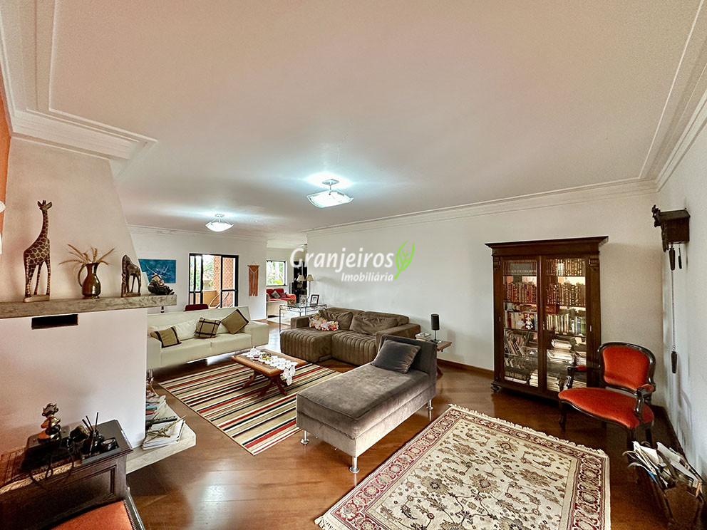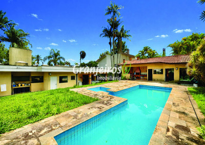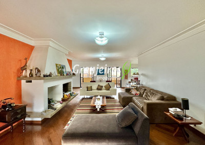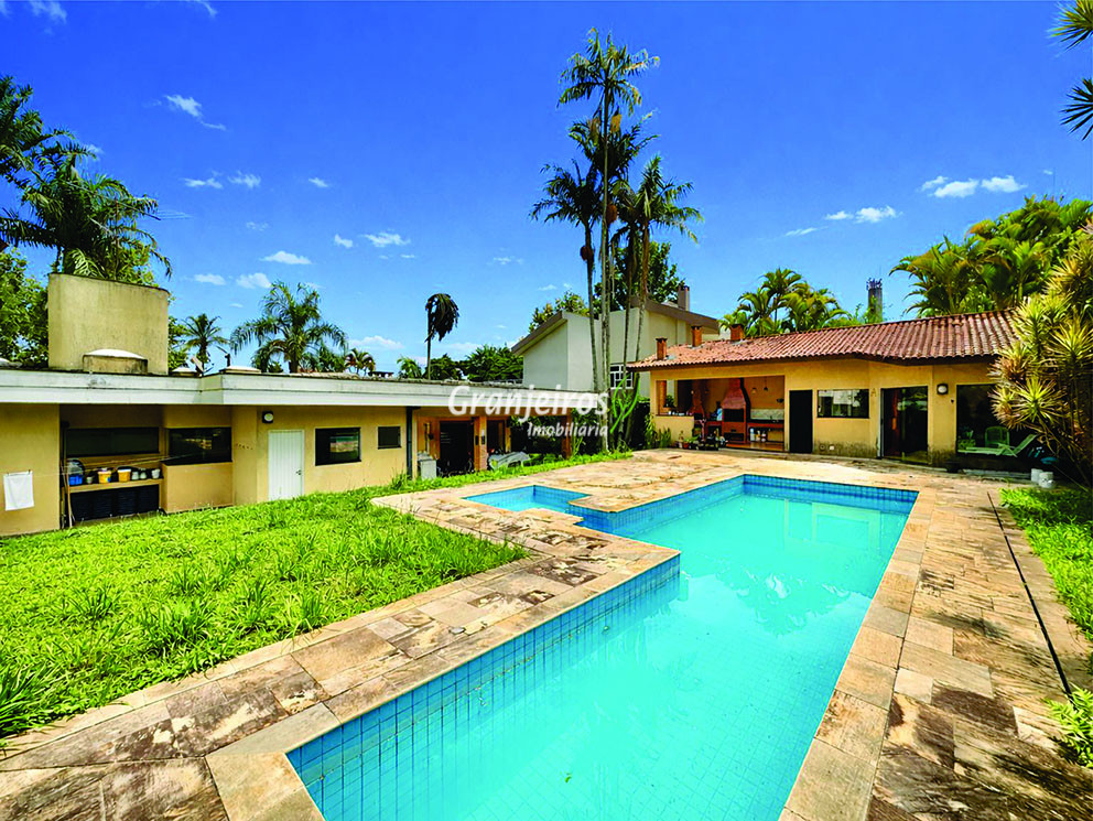 Casa ampla e funcional, muito confortável, construída para morar. Imóvel repleto de armários. Salão Multiuso com 90m², lavabo e depósito. Ideal para jogos, escritório, home office, brinquedoteca, atelier, academia, estúdio. Adega. depósito embaixo da escada. São 5 suítes, sendo:3 suítes no corpo principal da casa, planejadas, sendo a master com closet sr e sra, 1 ste no térreo com acessibilidade, ideal para hóspedes ou serviço, com entrada independente pela garagem,1 ste externa na área gourmet. Lavabo com lavatório externo, com piso e tampo em mármore Crema Marfil. Living para 6 ambiente, com duas varandas. Estar, lareira imponente, bar, música, jantar com porta balcão para a varanda e family room/home theater planejado e mais reservado. Copa cozinha planejada bem arejada e iluminada, integrada à sala de jantar, repleta de armários e gabinetes, com espaço sala de almoço e café. Lazer em amplo quintal com jardim, paisagismo formado com 9 Palmeiras Imperiais, 1 Palmeira Real e frutíferas: goiaba, jabuticaba, limão cravo, maracujá. Salão Gourmet anexo completo e integrado à piscina, com churrasqueira, forno e fogão a lenha, forno de pizza. Suíte Multiuso ideal para hóspedes, TV, escritório, ou atelier, envidraçada integrada ao espaço gourmet e piscina. Vestiário M e F, piscina 12,5m x 4m (43m³), com raia e piscina infantil e grande solário. Garagem para 10 vagas, sendo 5 cobertas. Permuta: Estuda até R$ 400 mil, estúdios na Zona Oeste de São Paulo (preferencialmente Pinheiros / Jardins) próxima ao Metrô.