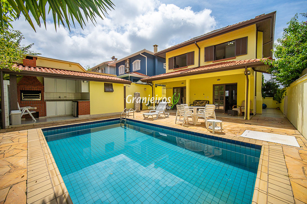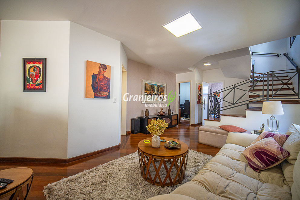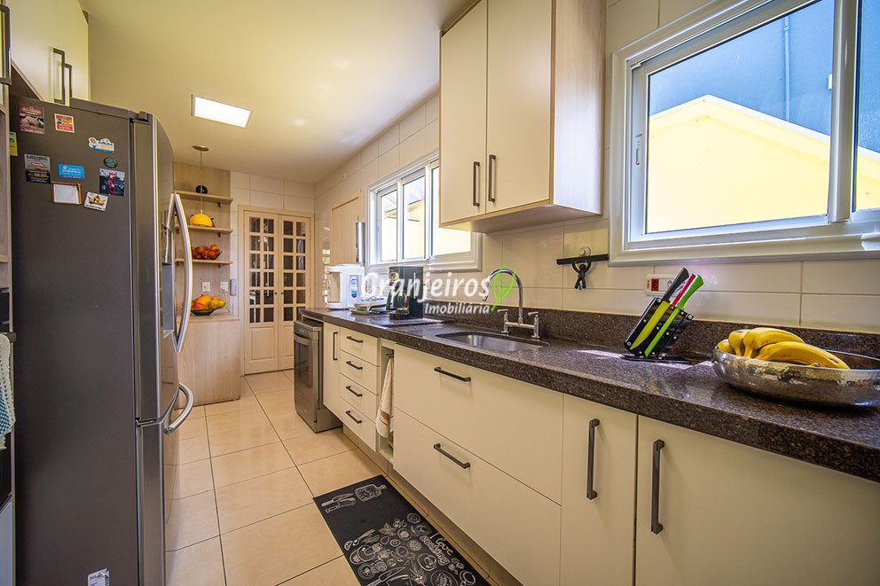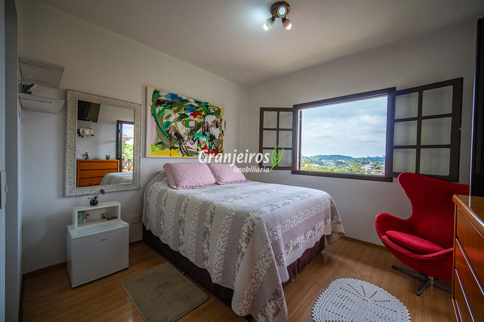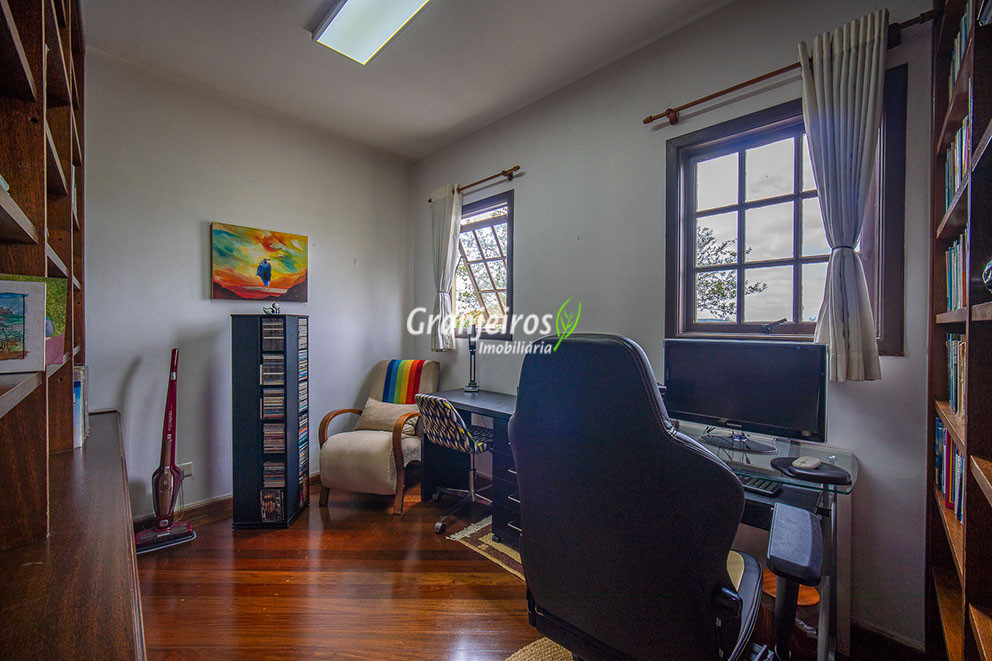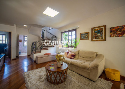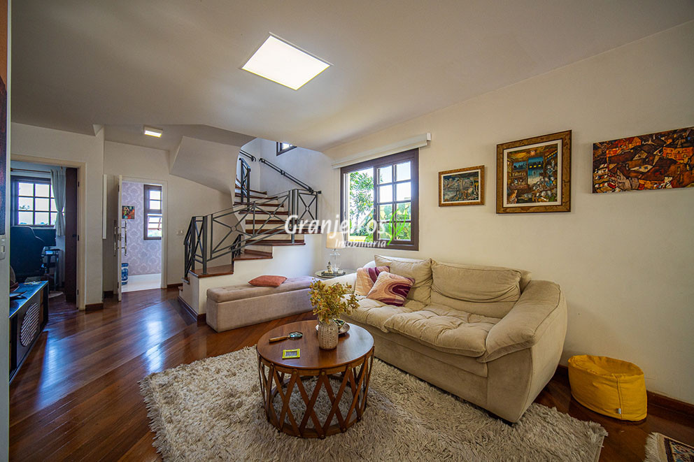 Casa à venda no Condomínio Villanova, localizado no bairro Granja Viana, em Cotia. Situada no ponto mais alto do condomínio, esta casa isolada oferece uma vista privilegiada, além de excelente privacidade e ventilação natural, graças aos amplos corredores laterais. O living é espaçoso e integrado, com sala de estar, sala de jantar e uma charmosa sala de inverno com lareira, com acesso à área externa. A casa conta ainda com um escritório funcional, já equipado com estantes, e um charmoso lavabo. A cozinha é ampla, bem ventilada e planejada com armários e bancadas que facilitam o dia a dia, inclusive com espaço para refeições rápidas. A área de serviço é isolada, coberta e também possui armários planejados, oferecendo mais organização e praticidade. Na parte íntima do imóvel, há uma sala multiuso que atualmente funciona como sala de TV. São três suítes confortáveis, todas com armários embutidos. O quarto principal, uma suíte master, possui varanda com vista aberta, closet, banheiro com cuba dupla e uma banheira de hidromassagem para relaxamento completo. A área externa da casa é ideal para quem valoriza lazer e convivência. O espaço conta com uma varanda ampla, quintal com piscina aquecida por placas solares, churrasqueira com pia de apoio, armários planejados, ducha externa e um lavabo exclusivo para a área da piscina. A garagem acomoda até quatro veículos, sendo duas vagas cobertas além de um depósito funcional. O condomínio Villanova oferece uma excelente infraestrutura de segurança e lazer. Possui controle de acesso 24 horas, além de diversas opções de lazer, como piscinas adulto e infantil, quadra poliesportiva, academia equipada, playground, salão de festas, brinquedoteca, salão de jogos e espaço gourmet. Com acesso facilitado à Rodovia Raposo Tavares, o bairro Granja Viana é conhecido pela qualidade de vida e pela presença de escolas renomadas, supermercados, academias e o Shopping Granja Viana, que está a poucos minutos do imóvel.
