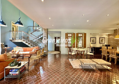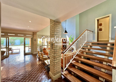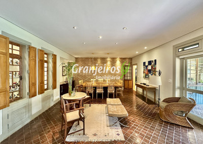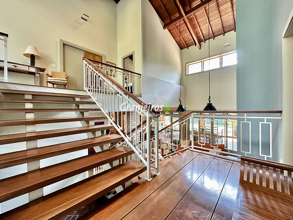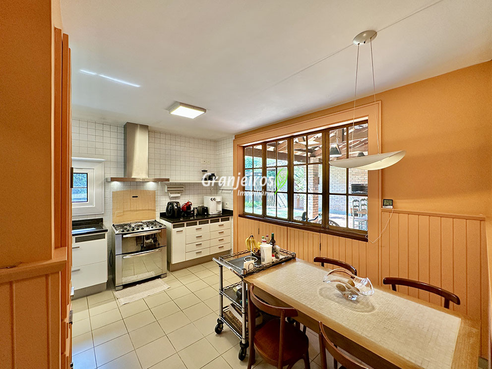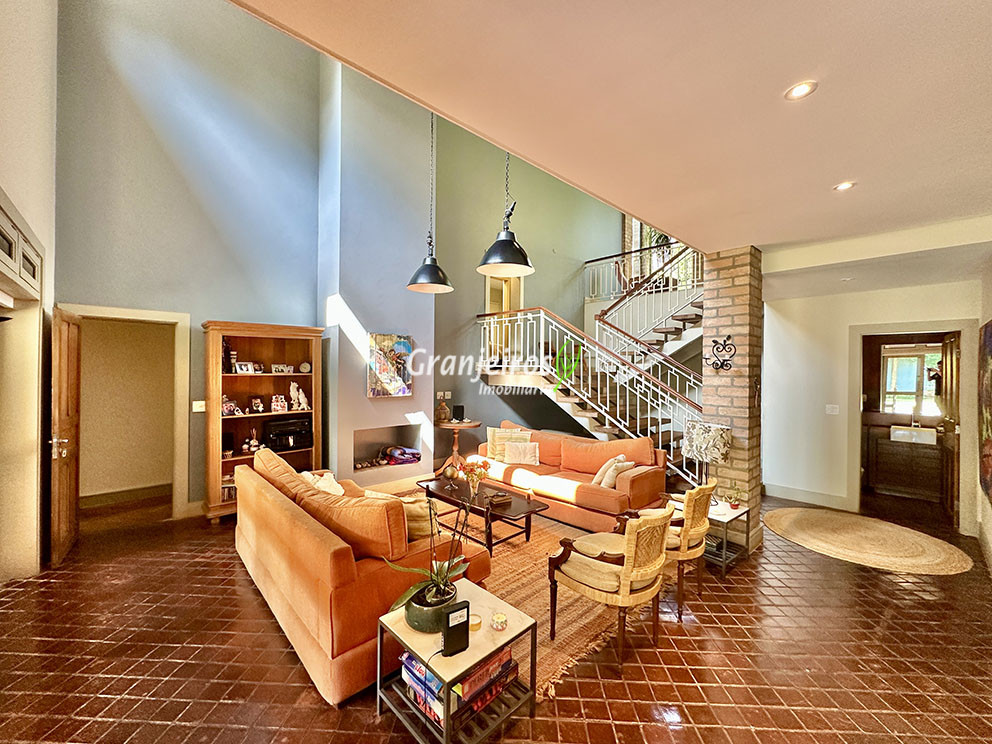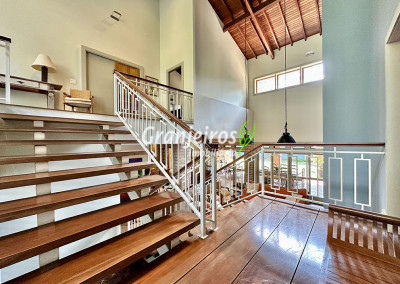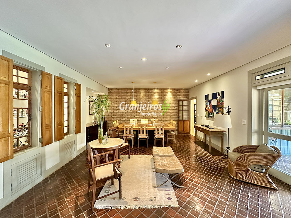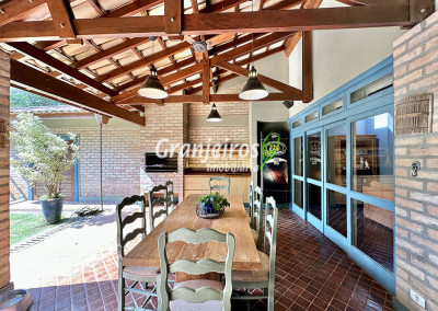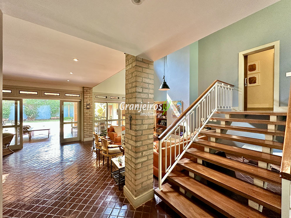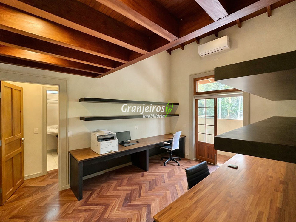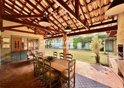 Casa construída por um casal de arquitetos, para morar! Ótima localização em final de rua tranquila, arborizada e sem saída. Condomínio fechado com controle de acesso e segurança 24 horas. Imóvel repleto de armários. Portas e janelas em madeira e vidro, com venezianas nos quartos. Muitas em Pinho de Riga, garimpadas em demolições. Pisos em mármore Travertino, porcelanato, tacos de madeira, cerâmica. Jardim com paisagismo formado, com irrigação automática programável. Projeto para construção da piscina, foi aprovado na prefeitura e registrado na matrícula em cartório. Só não foi construída por opção! Living para 5 ambientes integrados ao lazer com varanda gourmet e jardim gramado com gazebo. Estar, lareira a gás, jantar para 10 pessoas com aparador, música e bar. Varanda Gourmet ampla para 3 ambientes, refeições, estar e ganchos para 3 redes, voltada para o jardim com gazebo e local para piscina. Churrasqueira com bancada em madeira, cuba inox, gabinetes, espaço para geladeira e ganchos para 3 redes. Copa cozinha com espaço para almoço e café, repleta de armários planejados, vista para o jardim, integrada à sala de jantar e varanda gourmet, por um balcão retrátil com janelões basculantes, que se abrem parcial ou totalmente. Sala de Home Theater com frigobar, lareira à lenha, estantes e ar-condicionado. Escritório/ Atelier com varanda e escada de ferro p/ o mezanino, com ar-condicionado, preparado para claraboia, com acesso ao sótão e fácil manutenção na elétrica e hidráulica da casa.