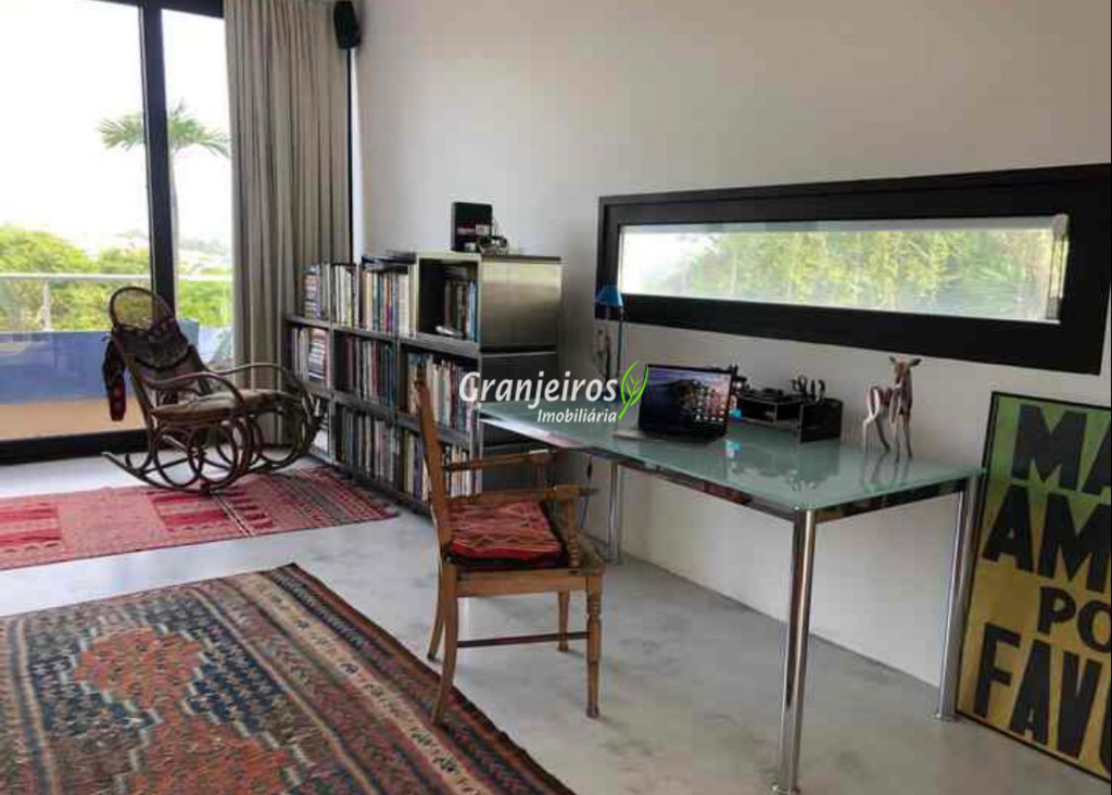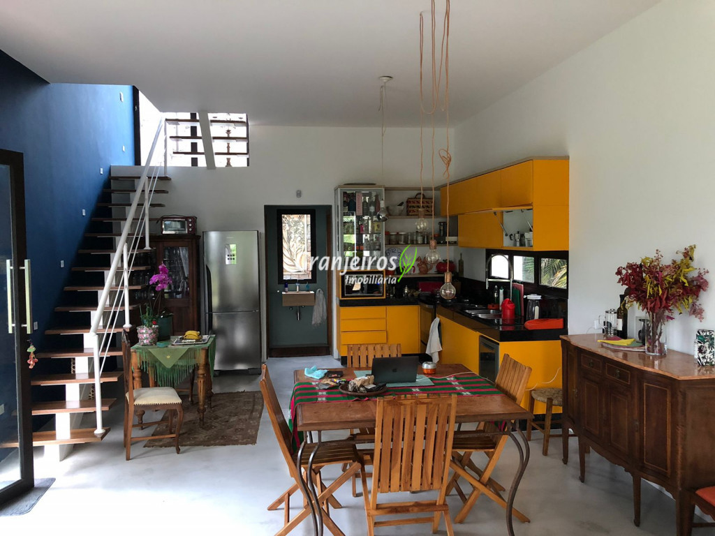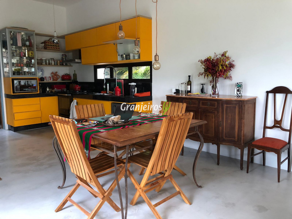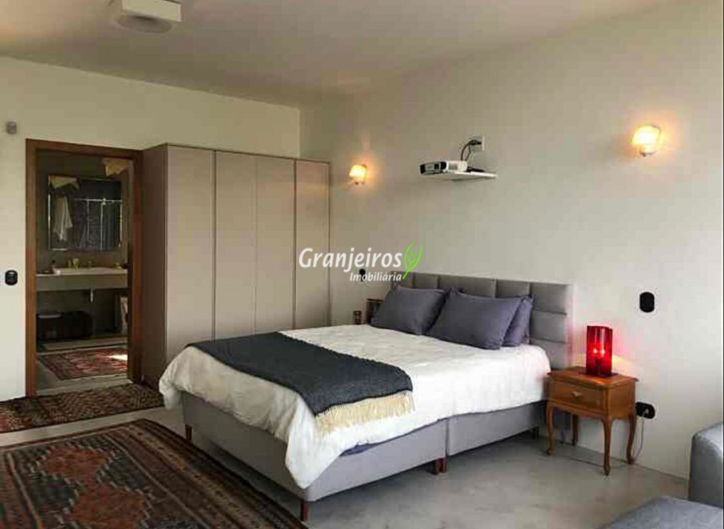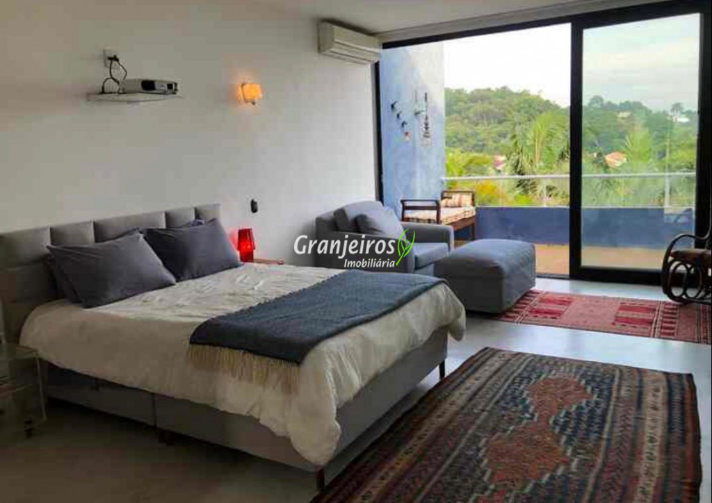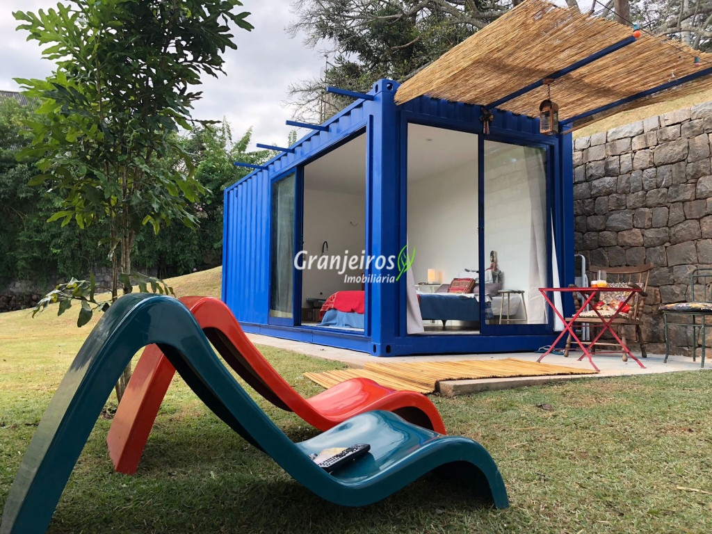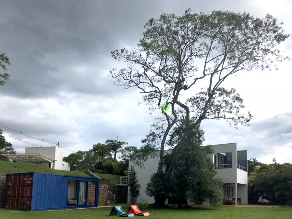 Moderno loft em estilo industrial, implantado em um terreno excepcional com vista espetacular para áreas verdes permanentes. Construído em concreto, possui esquadrias sob medida, amplos janelões envidraçados e portas de correr que integram os ambientes à área de jardim. O imóvel conta com uma ampla sala para dois ambientes, com lareira e acesso direto à varanda, além de cozinha planejada integrada e lavabo. No pavimento superior, destaca-se uma espaçosa suíte de aproximadamente 70 m², com varanda privativa e banheiro com bancada em concreto e box. A área externa é um verdadeiro diferencial: amplo gramado com espaço para construção de piscina, ducha em pedra estilo cascata e um container totalmente adaptado como casa de hóspedes, com sala reversível para dormitório, cozinha completa e banheiro. Tudo isso em um ambiente ensolarado, com vista deslumbrante. Na área de serviço, o imóvel dispõe de lavanderia e depósito. 2 vagas de garagem cobertas.
