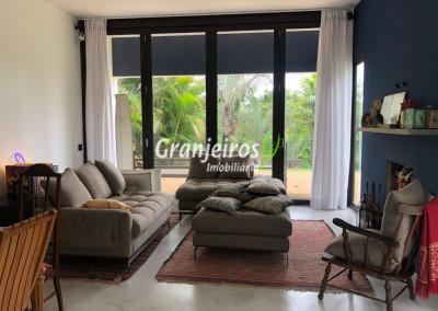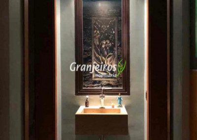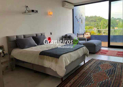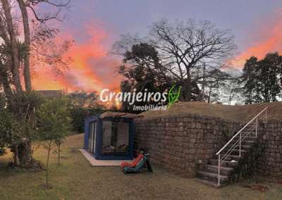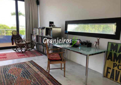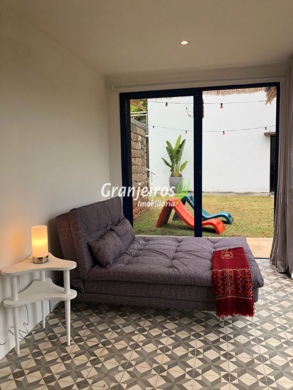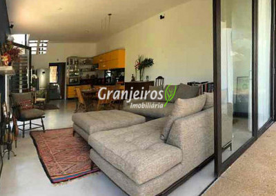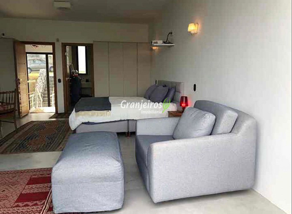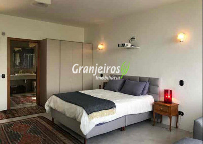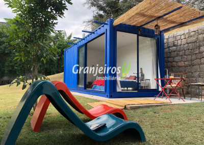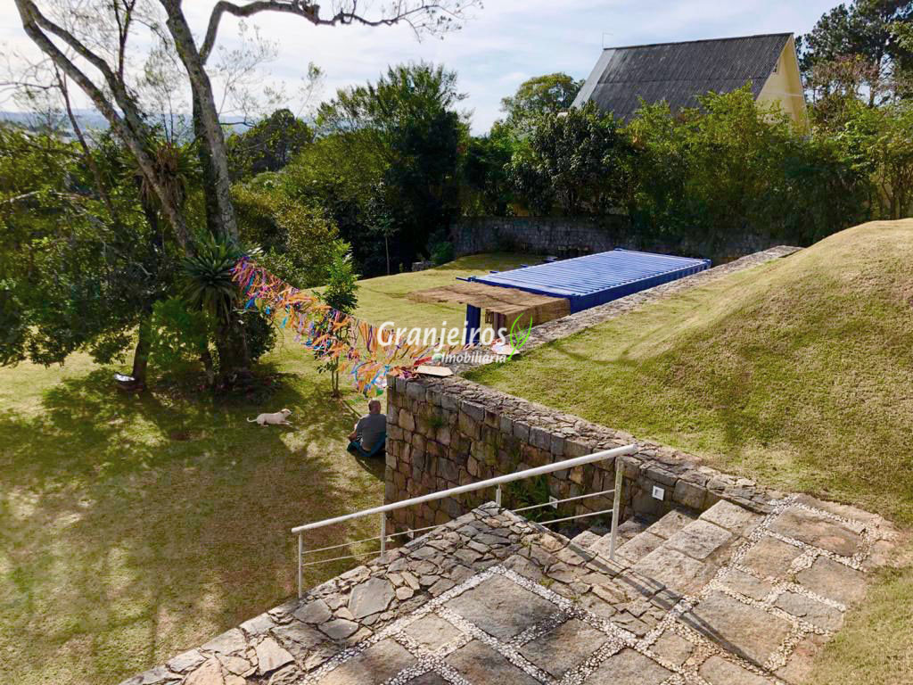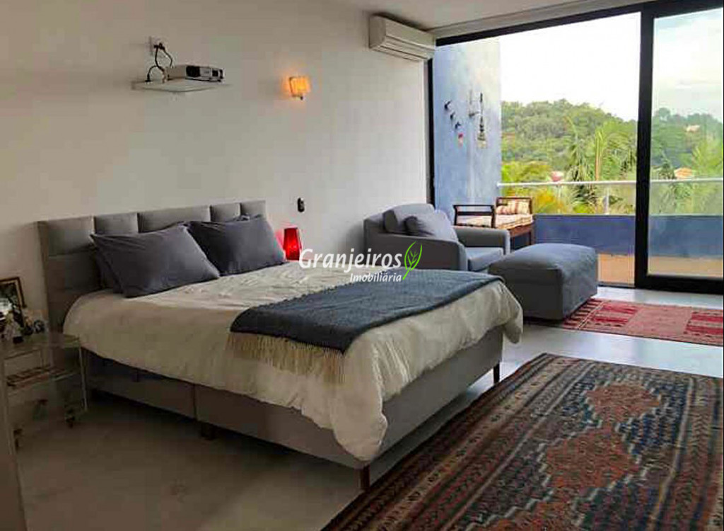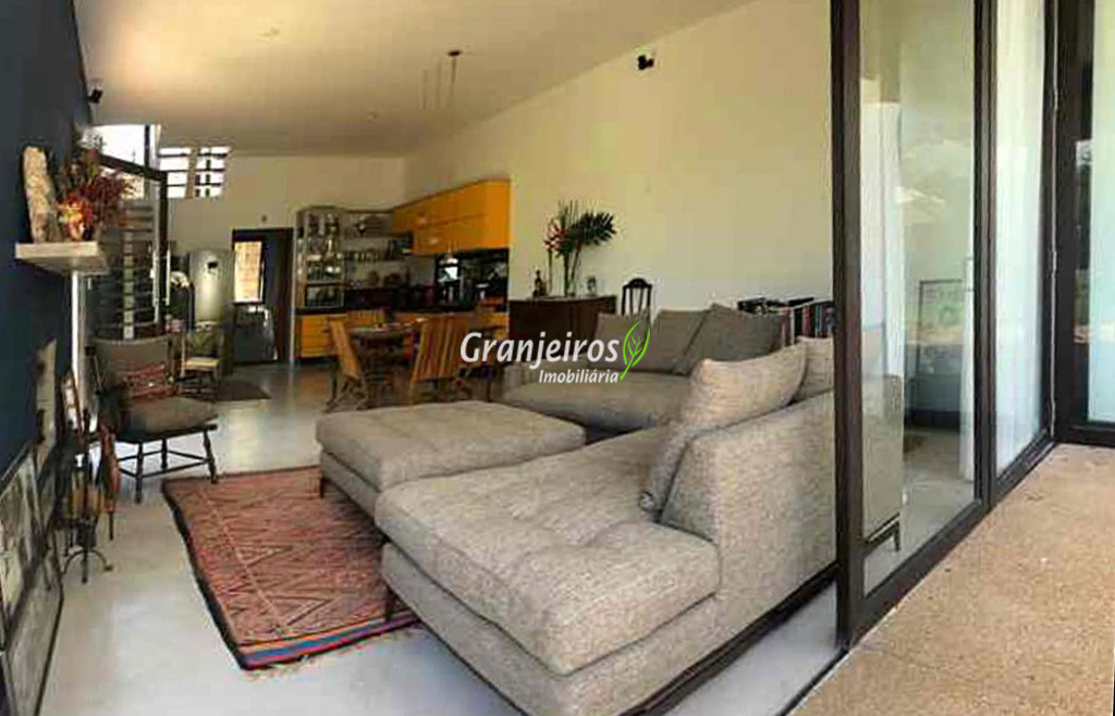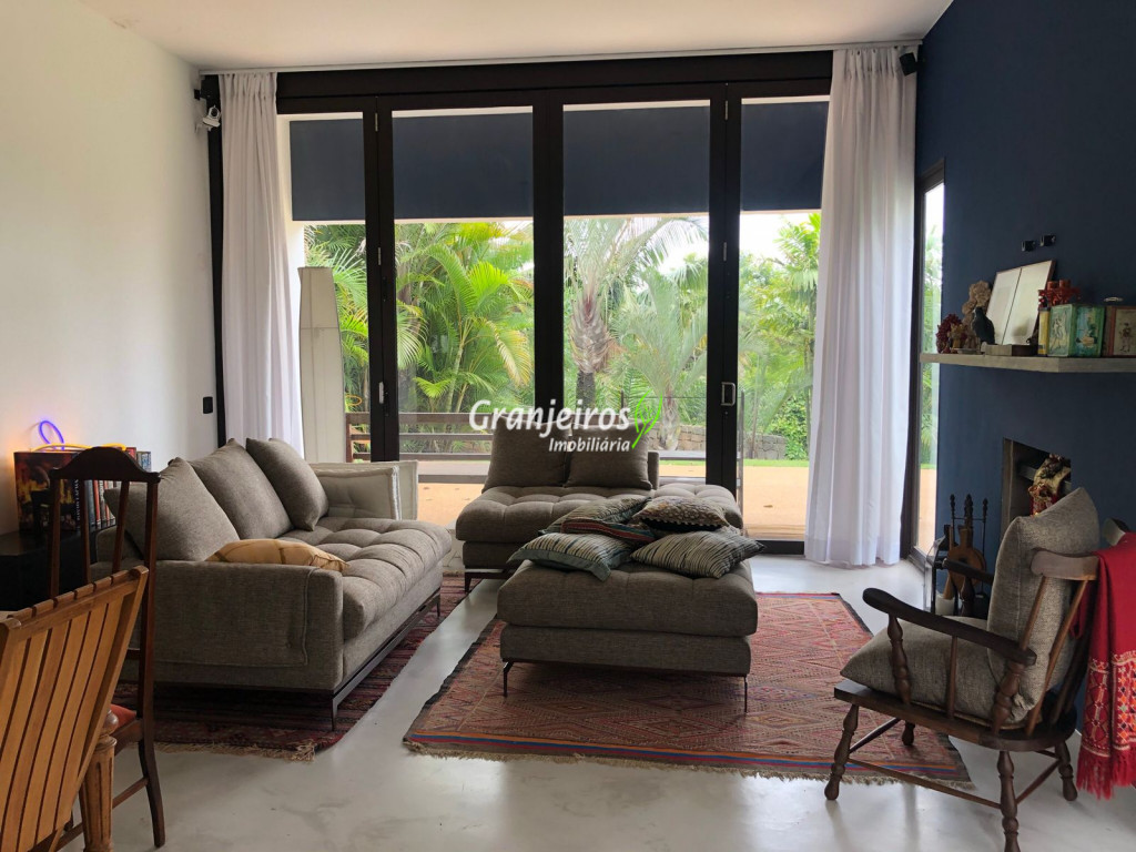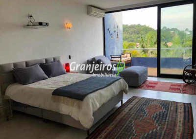 Moderno loft em estilo industrial, implantado em um terreno excepcional com vista espetacular para áreas verdes permanentes. Construído em concreto, possui esquadrias sob medida, amplos janelões envidraçados e portas de correr que integram os ambientes à área de jardim. O imóvel conta com uma ampla sala para dois ambientes, com lareira e acesso direto à varanda, além de cozinha planejada integrada e lavabo. No pavimento superior, destaca-se uma espaçosa suíte de aproximadamente 70 m², com varanda privativa e banheiro com bancada em concreto e box. A área externa é um verdadeiro diferencial: amplo gramado com espaço para construção de piscina, ducha em pedra estilo cascata e um container totalmente adaptado como casa de hóspedes, com sala reversível para dormitório, cozinha completa e banheiro. Tudo isso em um ambiente ensolarado, com vista deslumbrante. Na área de serviço, o imóvel dispõe de lavanderia e depósito. 2 vagas de garagem cobertas.