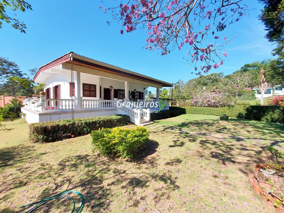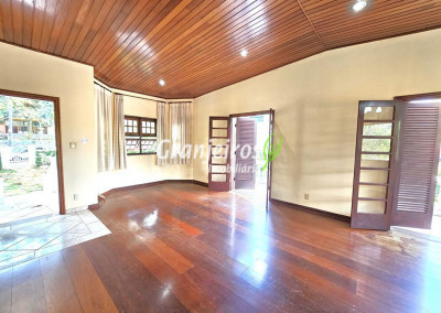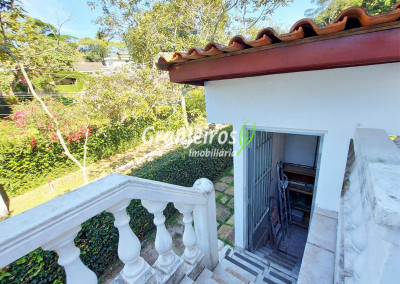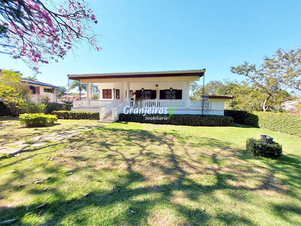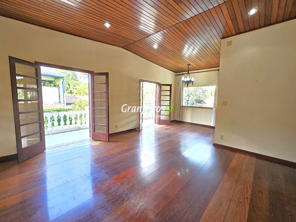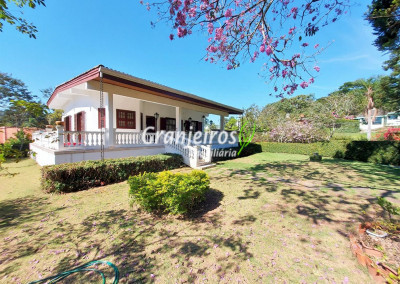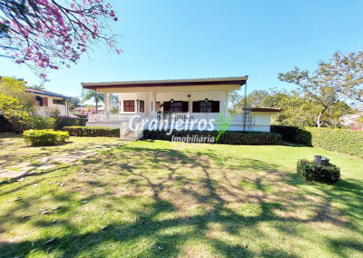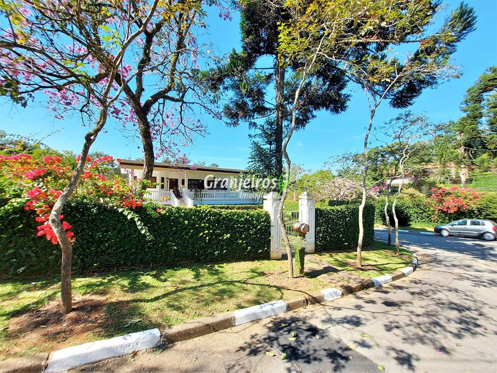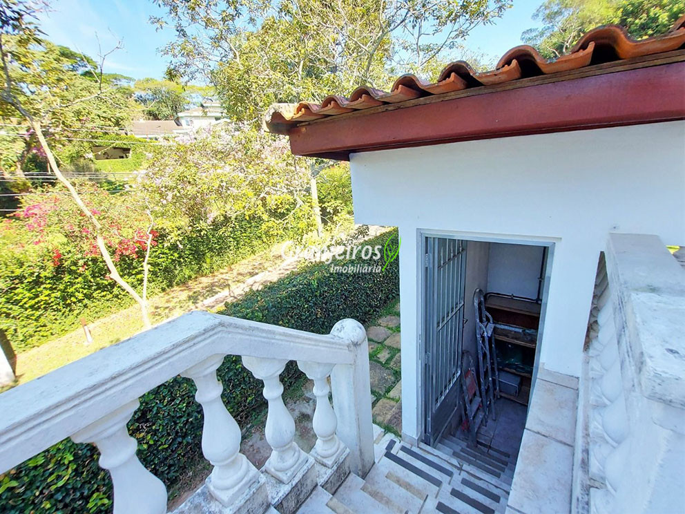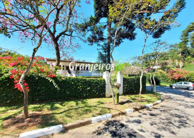 Condomínio Fechado com controle rígido de acesso e segurança. Casa térrea, somente dois ambientes (salões) no piso inferior. Área gramada ampla, com possibilidade de instalação de piscina (sol direto). Portas e janelas em madeira e vidro. Pisos: em madeira (tábuas largas), cerâmica e carpete de nylon. 2 acessos, social, serviço/garagem. Entrada social. Casa com graciosa varanda, ampla e vista para o jardim + terraço elevado do gramado com proteção (balaústres). Living para 3 ambientes, salas de estar, jantar e tv. 2 dormitórios.1 banheiro amplo completo, com box em vidro. Cozinha com passagem para a lavanderia, (necessita modernização). Lavanderia. 2 salões amplos no piso inferior, utilizados como depósito e academia; Garagem coberta com portão. Estado de Conservação: Necessita reforma e modernização. Permuta: Estuda até 50% do valor, por imóvel na região da Granja Viana.