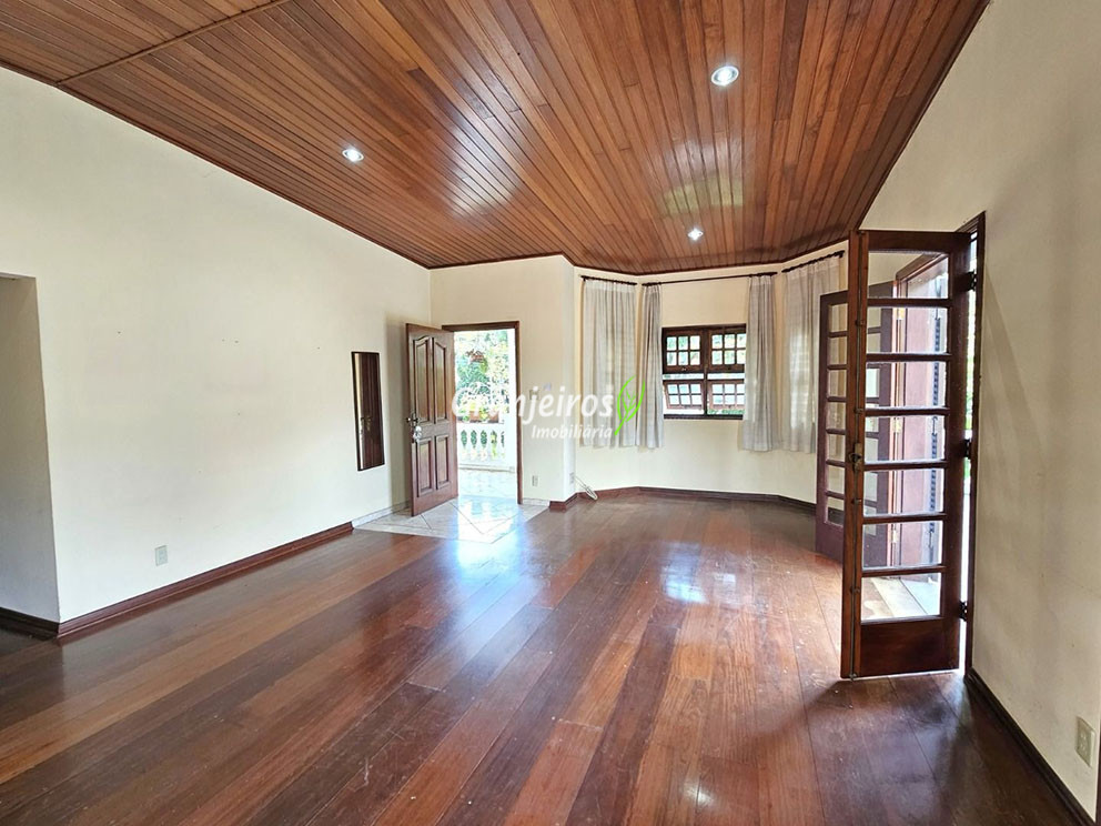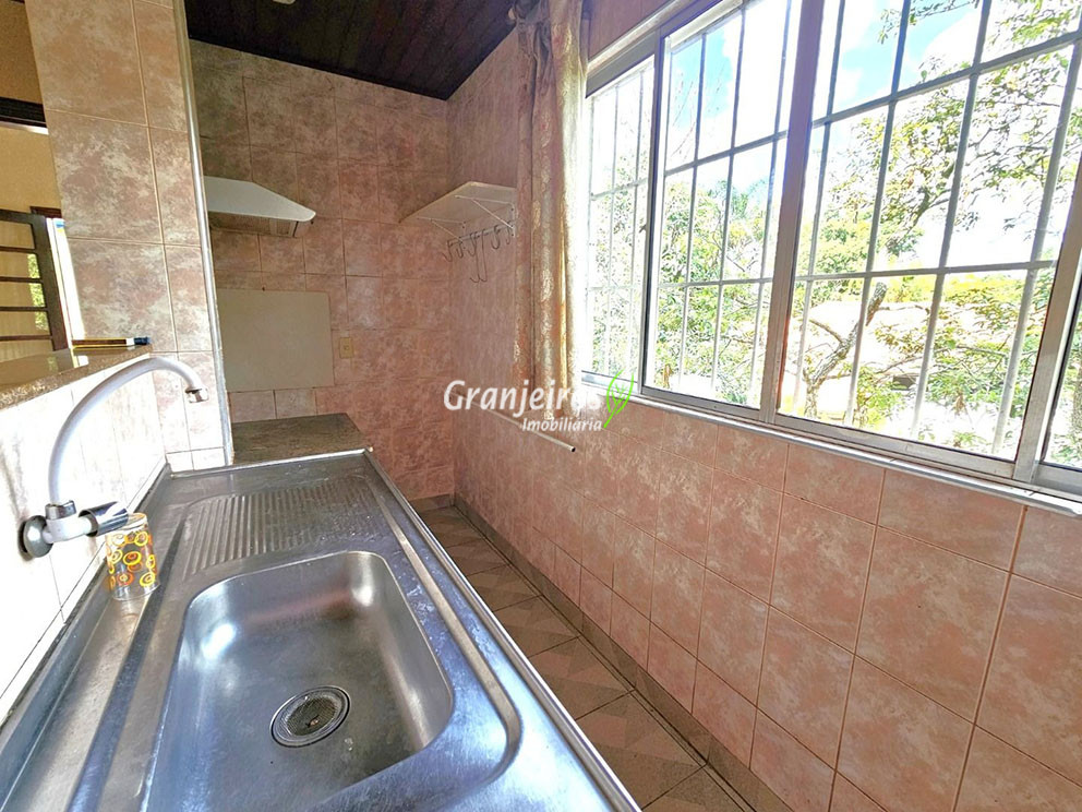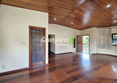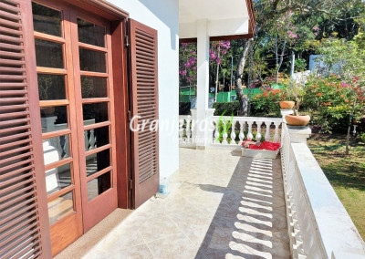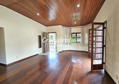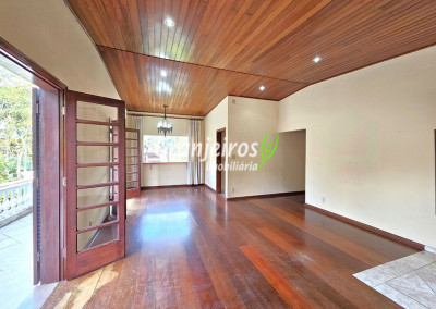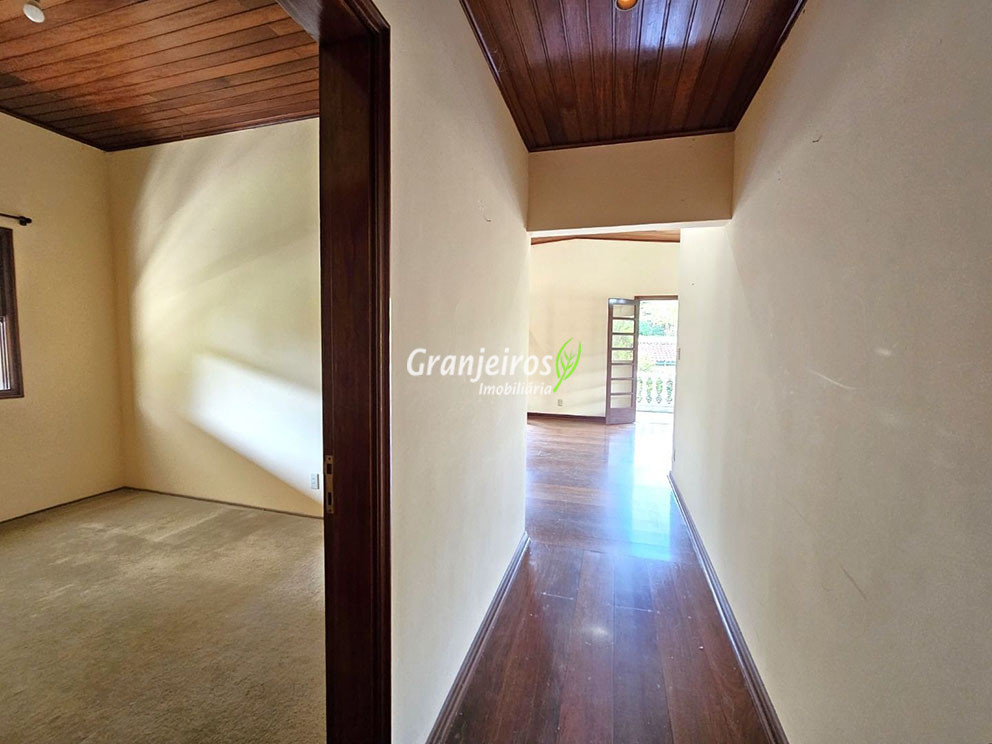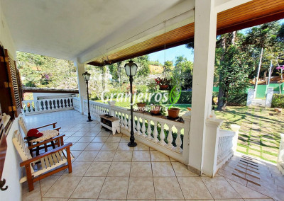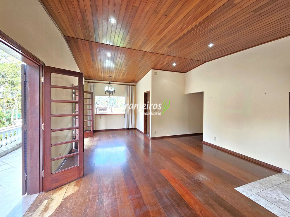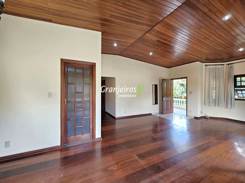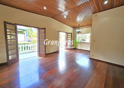 Condomínio Fechado com controle rígido de acesso e segurança. Casa térrea, somente dois ambientes (salões) no piso inferior. Área gramada ampla, com possibilidade de instalação de piscina (sol direto). Portas e janelas em madeira e vidro. Pisos: em madeira (tábuas largas), cerâmica e carpete de nylon. 2 acessos, social, serviço/garagem. Entrada social. Casa com graciosa varanda, ampla e vista para o jardim + terraço elevado do gramado com proteção (balaústres). Living para 3 ambientes, salas de estar, jantar e tv. 2 dormitórios.1 banheiro amplo completo, com box em vidro. Cozinha com passagem para a lavanderia, (necessita modernização). Lavanderia. 2 salões amplos no piso inferior, utilizados como depósito e academia; Garagem coberta com portão. Estado de Conservação: Necessita reforma e modernização. Permuta: Estuda até 50% do valor, por imóvel na região da Granja Viana.