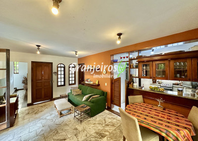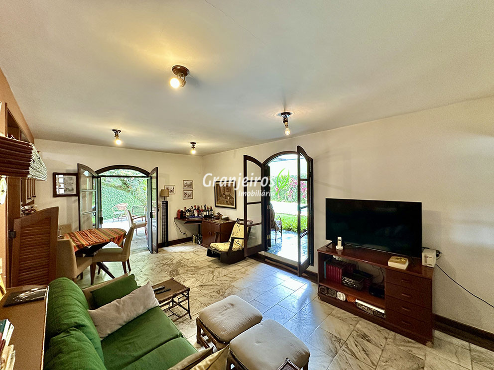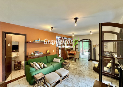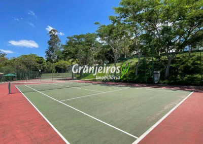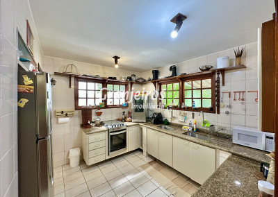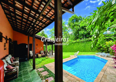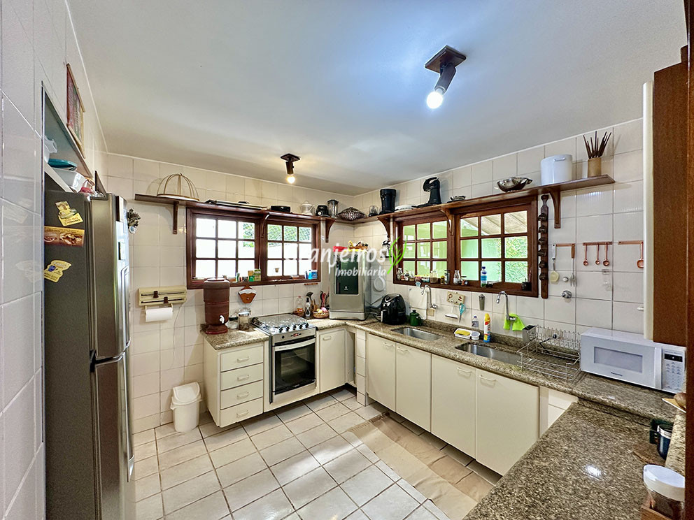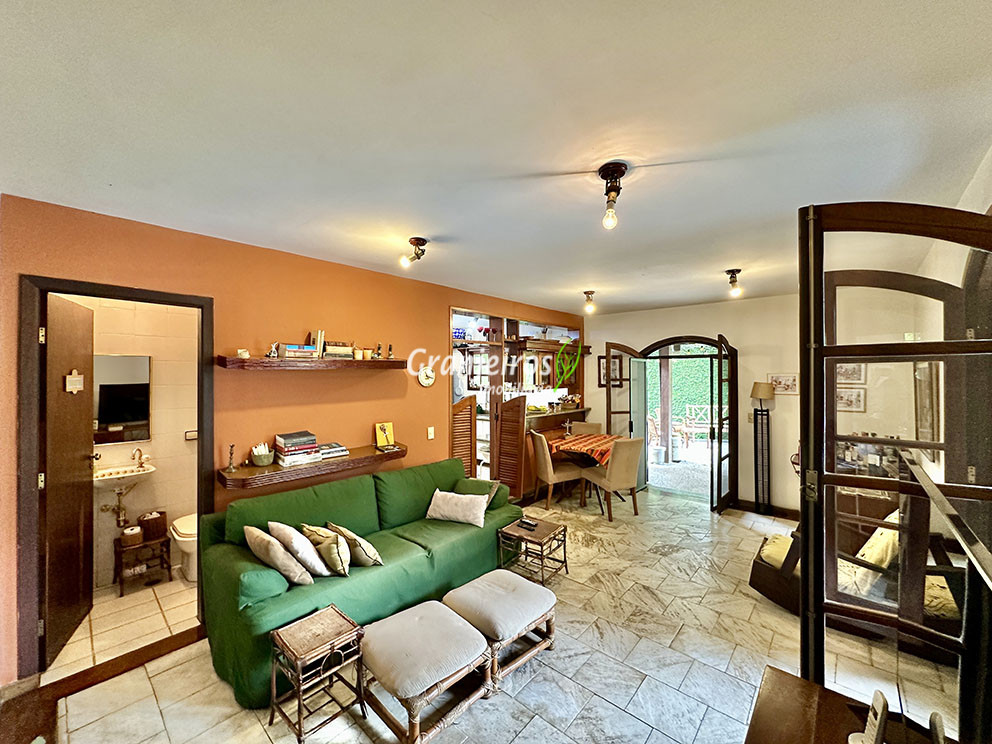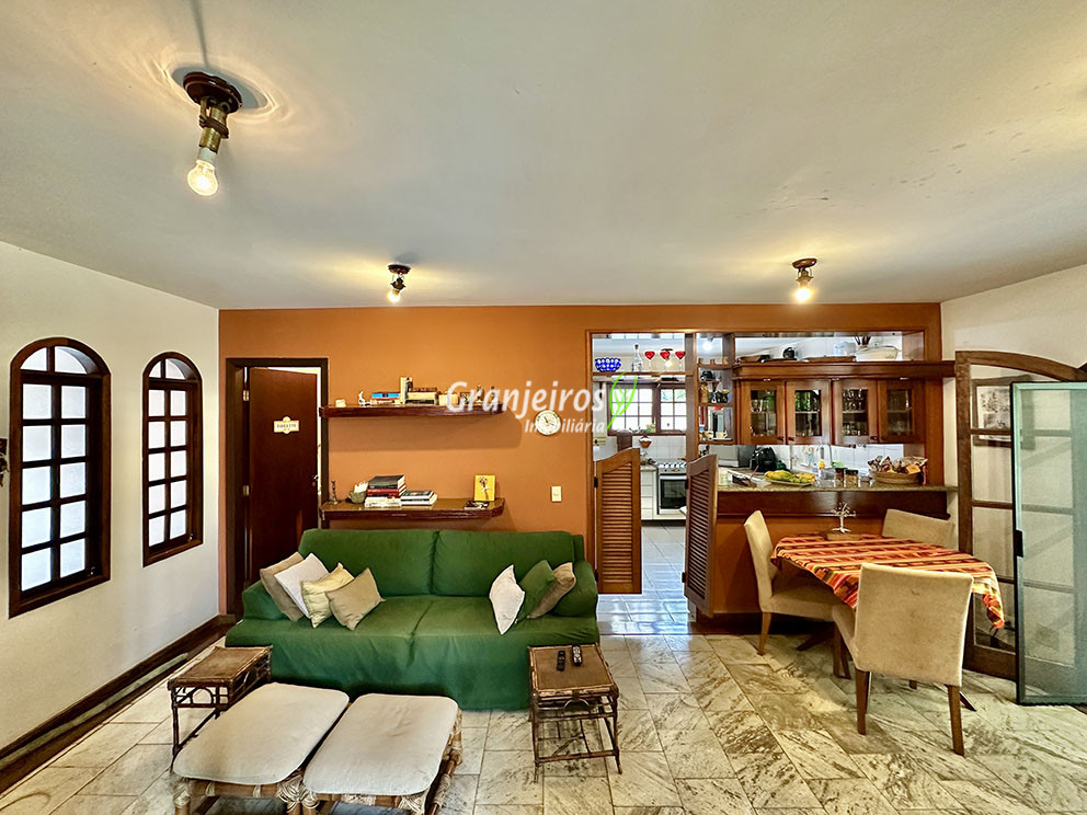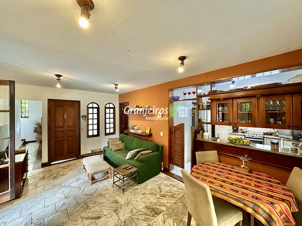 Casa térrea avarandada, construída para morar, com materiais de qualidade e manutenção permanente. Ótima localização em final de rua tranquila, arborizada e sem saída. Privacidade nos fundos com APP - Área de Preservação Permanente do condomínio. Imóvel repleto de armários em madeira maciça. Jardim com paisagismo formado. Living para 4 ambientes integrados à cozinha e voltados para varanda e lazer. Estar, TV, bar e jantar integrada à cozinha. Varanda em L integrada ao living e cozinha, com ganchos de rede, bancada em granito, cuba inox com espaço pronto para uma churrasqueira portátil ou até desenvolver uma área gourmet completa. Piscina de alvenaria 7m x 3m, revestida em vinil, aquecimento solar, solário e casa de máquinas. Copa cozinha americana planejada integrada à sala de jantar, com balcão, tampo em granito, 2 cubas inox e nichos. Lavabo com pia decorada. Hall íntimo envidraçado. 3 dormitórios sendo 1 suíte, todos com armários de marcenaria em madeira maciça, 2 dormitórios com portas balcão voltados para a varanda, jardim e piscina e a master com closet. Banheiros com bancadas em granito, gabinetes, espelhos e box de vidro, sendo a suíte master com hidro. Suíte de serviço. Depósito. Garagem para 4 vagas, sendo 2 cobertas. Permuta: Estuda por apto na região de Pinheiros (S.Paulo) até R$ 600 mil