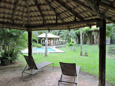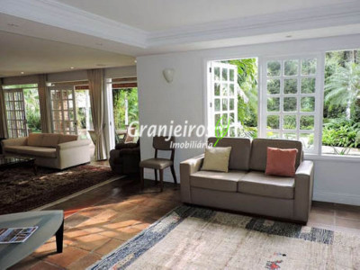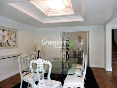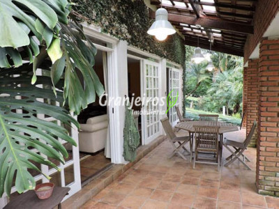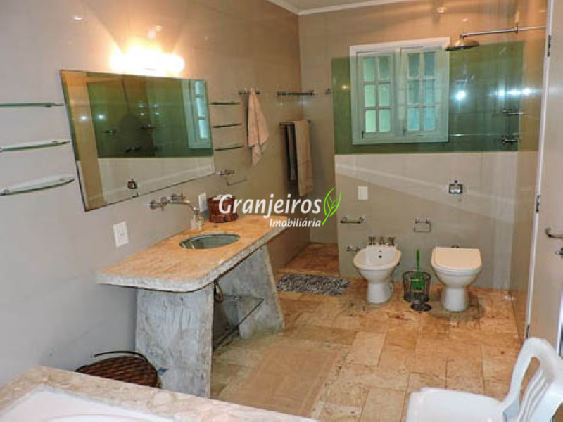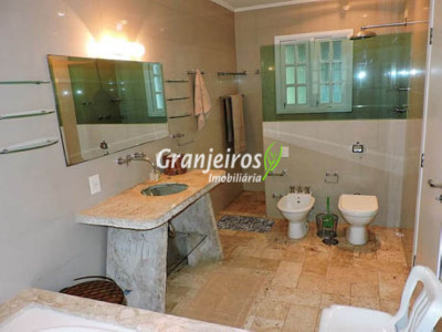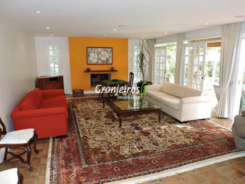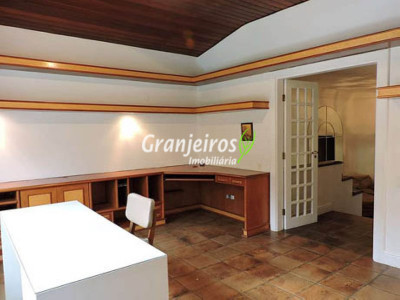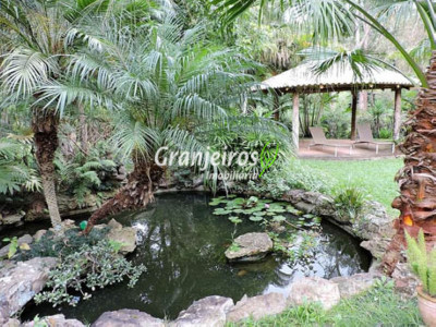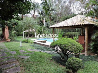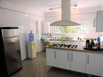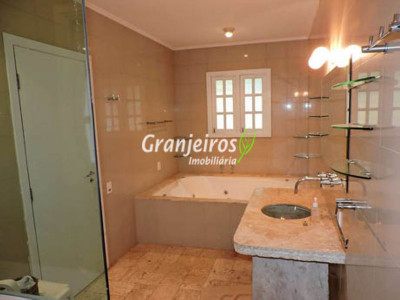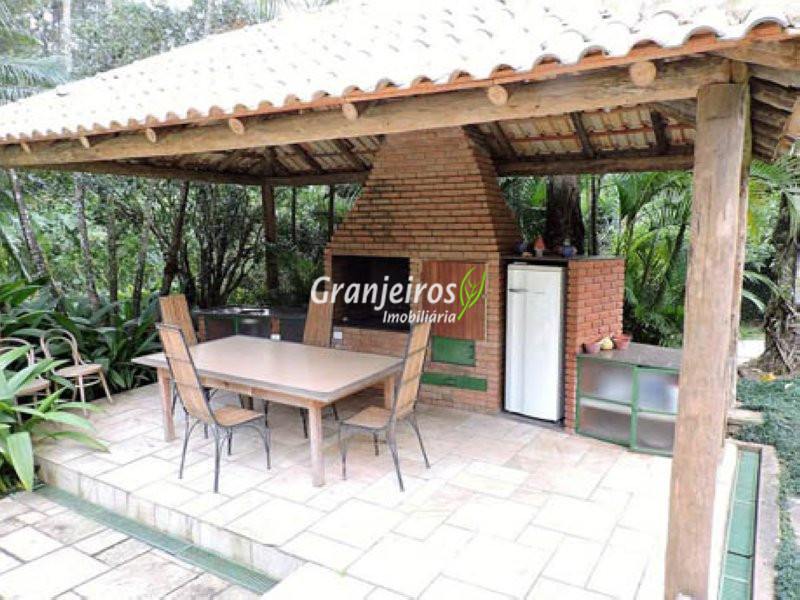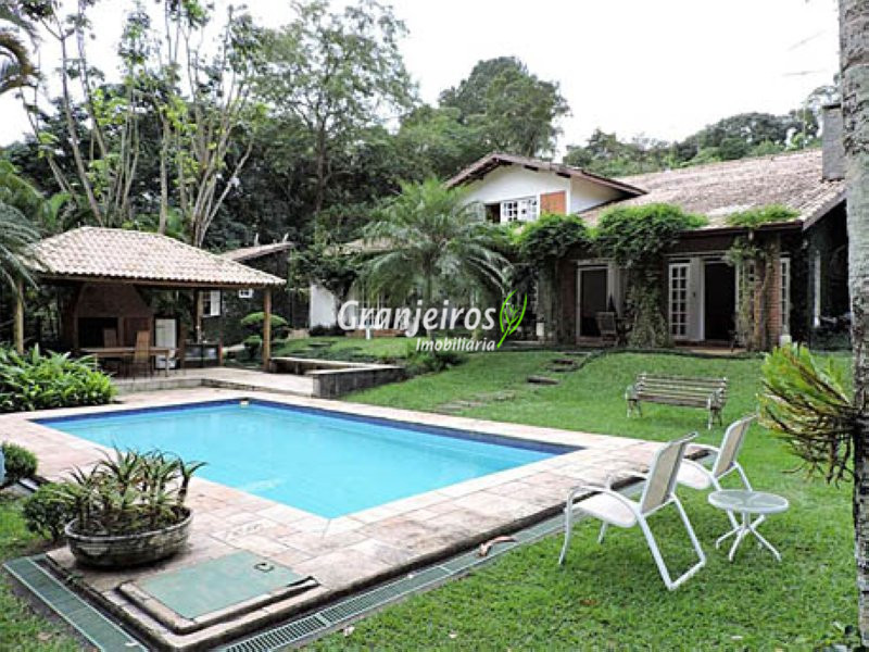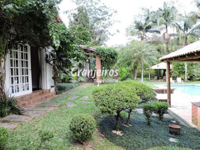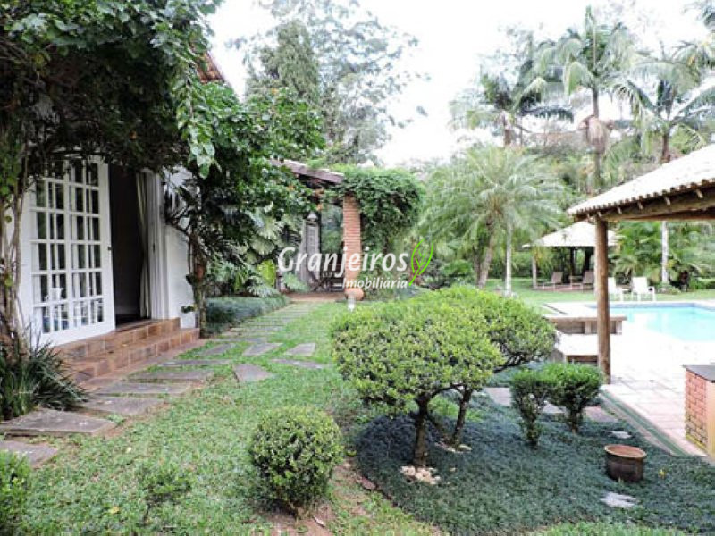 Condomínio rústico com lotes grandes e muito verde. Casa com estilo de campo. Ampla e com muitos jardins, localizada próximo ao centrinho da Granja. Hall social com lavabo. Living para 3 ambientes, com lareira e piso em lajotas. Nicho para bar e linda varanda. Escritório repleto de móveis planejados, com vista para área de lazer. 3 amplas suítes, com armários. Piso em carpete de madeira. Máster com grande closet e hidro. Cozinha clara e espaçosa, com copa. Repleta de armários planejados. 3 despensas. Jardim com paisagismo e lago de carpas. Quiosque gourmet com churrasqueira. Quiosque relax ao lado da piscina. Piscina em alvenaria, com aquecimento e casa de máquinas nova. Lavanderia espaçosa. Dependências de empregada. Garagem com 4 vagas cobertas, mais 4 vagas descobertas e depósito. Quintal ensolarado com horta. Canil. Casinha de ferramentas/jardineiro. Aquecimento central da água: gás passagem (02 unidades). Sabesp - 3 caixas de 1 mil litros cada. Água de nascente - para rega do jardim. Estuda permuta até 60% do valor, por imóveis com boa liquidez!