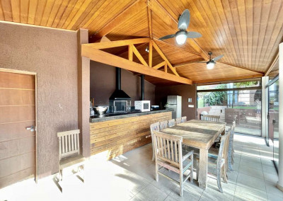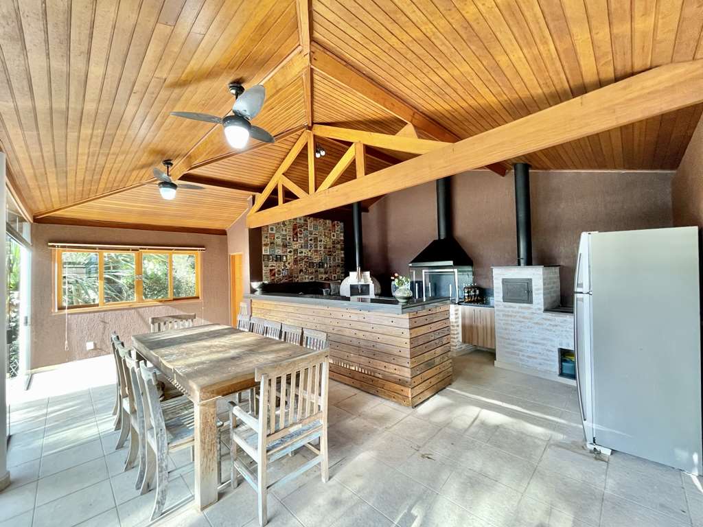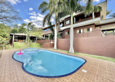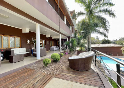 Muito espaço e privacidade; Casa nova e moderna com linda vista para área verde; Living para quatro ambientes, com pé direito duplo e lareira; Ampla varanda nas salas, voltada para piscina; Sala de home theater isolada por portas de correr; 5 suítes, todas com closet e varanda envidraçada (máster com hidro e varanda exclusiva); Banheiros modernos e claros, com box de vidro e pias em mármore; Completo e moderno espaço gourmet anexo à piscina, com churrasqueira, forno à lenha, forno de pizza, pia e bancadas em granito; Piscina adulto e infantil, com hidro e amplo deck de madeira debruçado sobre a mata e com vista para o verde; Vestiário completo; Playground de madeira; Cozinha clara e espaçosa com armários planejados e despensa; Lavanderia com armários; Casa de caseiro completa, com acesso independente; Depósito; Duas unidades de aquecimento dágua (gás passagem) atendendo toda a casa, inclusive a cozinha; Caixa dágua tipo torre e gerador de energia automático; Moderno sistema de alarme e CFTV na casa toda; 3 vagas cobertas 3 descobertas. Permuta: estuda até 50% do valor, por imóvel na região do Morumbi, litoral norte (SP) ou Guarujá. Também automóveis.
