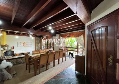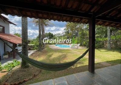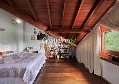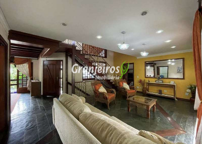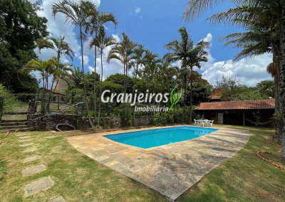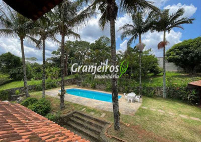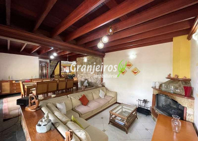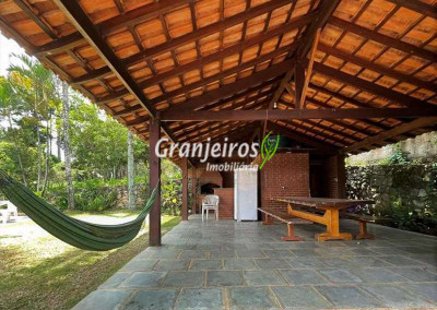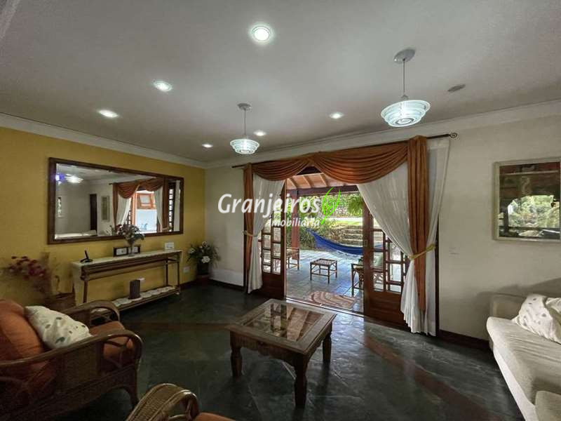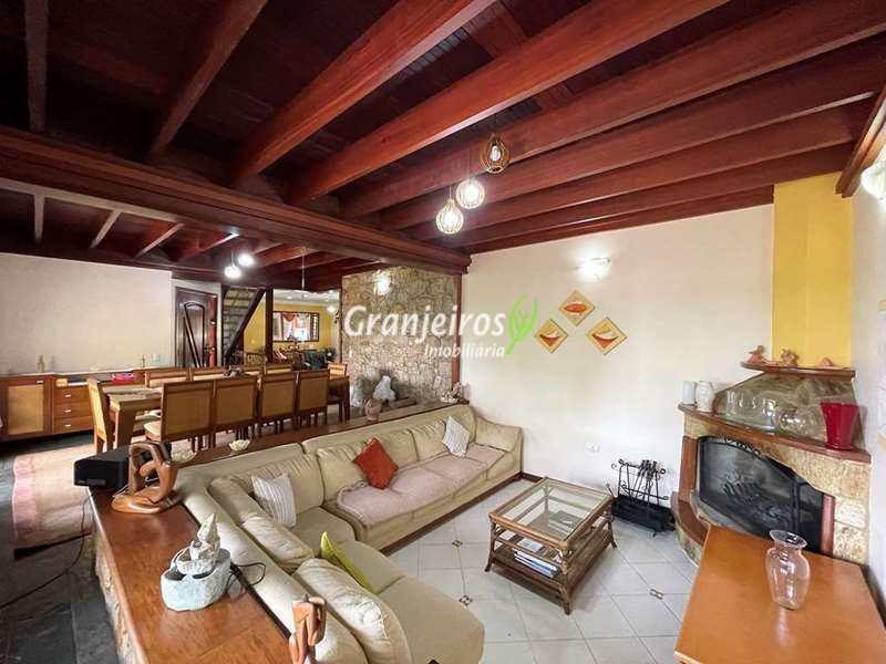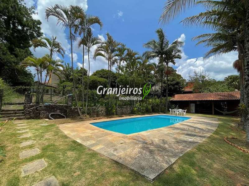 Casa confortável, com ótimo acabamento, muito lazer e natureza. Imóvel repleto de armários. Portas e janelas em madeira jatobá e vidro. Pisos em tabuas largas, ardósia com molduras em madeira, porcelanato, cerâmica e pedras. Pomar: manga, jabuticaba, laranja, acerola, limão, seriguela, pitanga e maracujá. 3 entradas: social, garagem, lazer / serviço. Hall de entrada social. Lavabo com tampo em Travertino. Hall íntimo. Family room, ideal para TV. Escritório. 6 dormitórios com armários, sendo: Suíte no piso superior (+ 1 dorm anexo), integrada ao mezanino, com closet e armários, banheiro com hidro, varanda e linda vista. 4 dormitórios com 2 banheiros no piso térreo. Banheiros com espelho, bancada, pia, gabinetes e box de vidro Escada de madeira com guarda corpo em ferro e madeira. Grande mezanino com espaço multiuso, ideal para, jogos, escritório, atelier, música, academia, brinquedoteca. Living para 5 ambientes voltados para 2 varandas, uma na frente e outra nos fundos para o quintal, lazer, grande jardim e pomar. Salas de estar, TV, jantar, bar e lareira em desnível. ANEXO gourmet com churrasqueira, bancada, pia e balcão. Lavabo. Espaço preparado para sauna e ducha. Piscina de fibra 10m x 4m, com prainha, escada interna, ducha, solarium e casa de máquinas. Copa cozinha planejada, com grande bancada, 2 cubas e despensa. Área de serviço aberta ensolarada e lavanderia fechada, com 2 tanques e dependências de empregada. Canil com 4 baias, mais um grande pátio cercado. Amplo espaço nos fundos do lote, ideal para se fazer um campinho de futebol, horta ou pomar. Portão Automático. Garagem para 6 vagas, sendo 3 cobertas com banheiro e depósito, mais um grande pátio. Aquecimento: Chuveiro elétrico em uso. Preparado para aquecimento central. Abastecimento de água: Sabesp. Armazenamento: 4.000 litros.