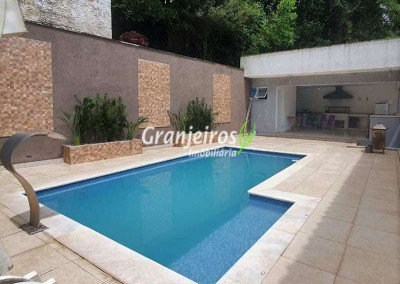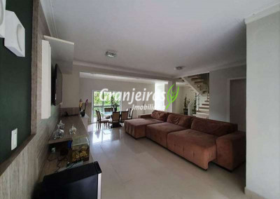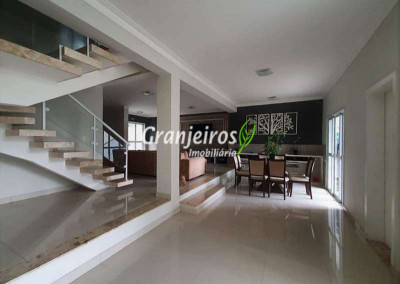 Projeto arrojado e privilegiado! Acabamentos impecáveis, porcelanato de primeira linha, esquadrias e janelas sob medida, portas pivotantes. Cozinha com pia e bancada em granito preto São Gabriel, com muitos armários planejados. Área externa uma ampla área gourmet com churrasqueira, piscina com pastilha de porcelana, cascata, prainha e hidromassagem completam o lazer que a sua família não pode perder. Andar superior com 3 amplas suítes repleta de armários, sendo duas avarandadas com vista espetacular, na suíte master com um ótimo closet e sala de banho com hidromassagem. Entrada lateral direto para a área de lazer facilita as reuniões de família e encontros de amigos.