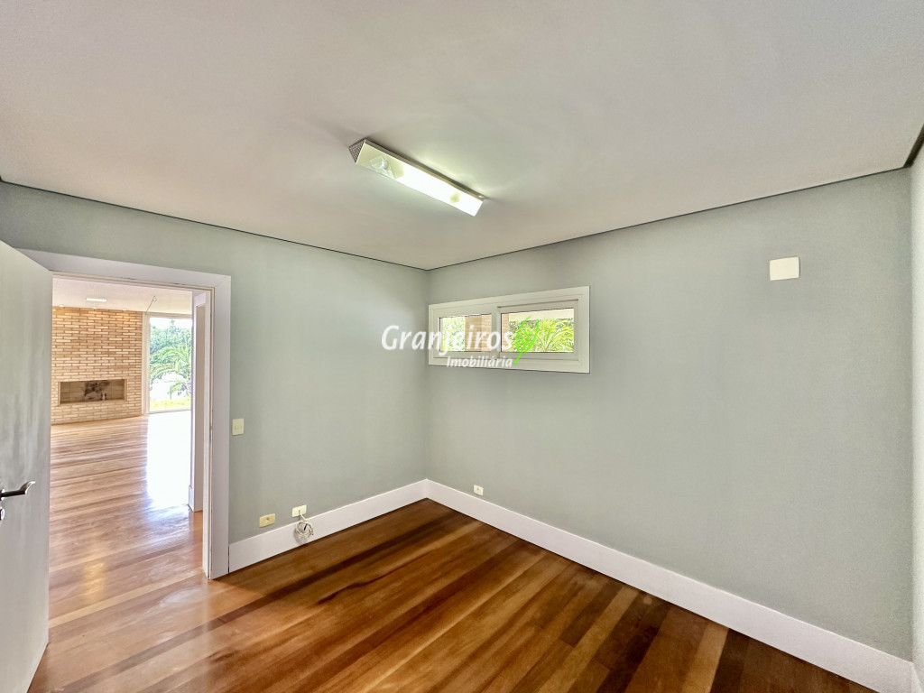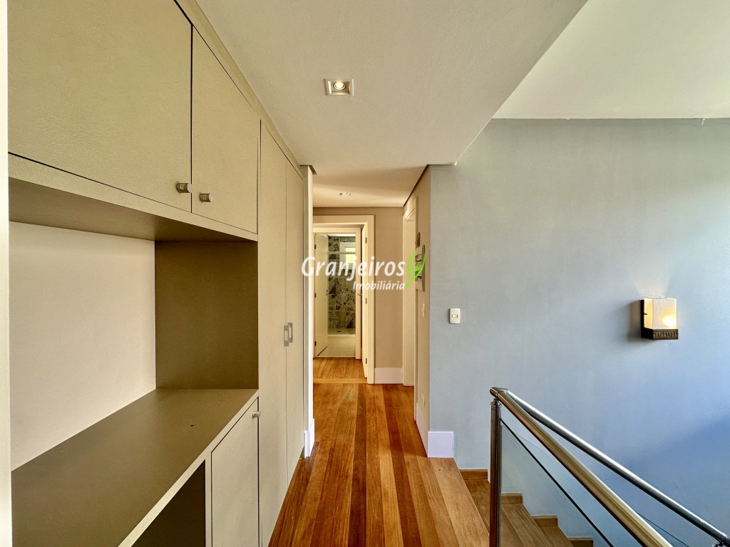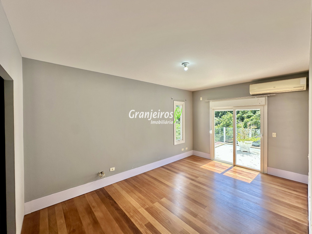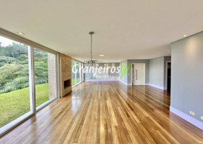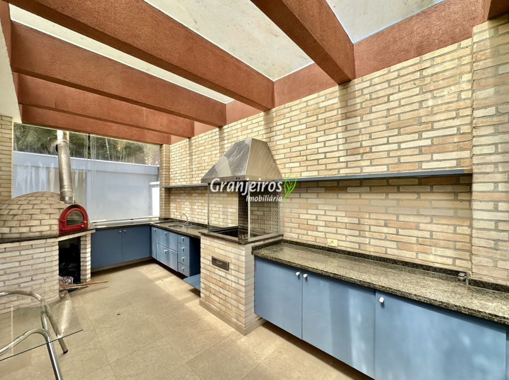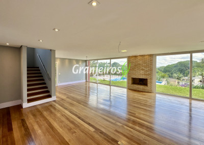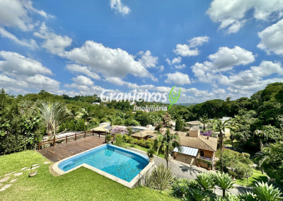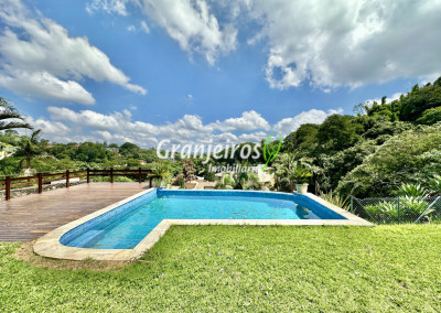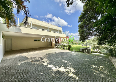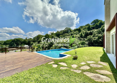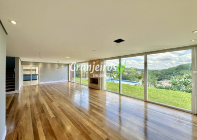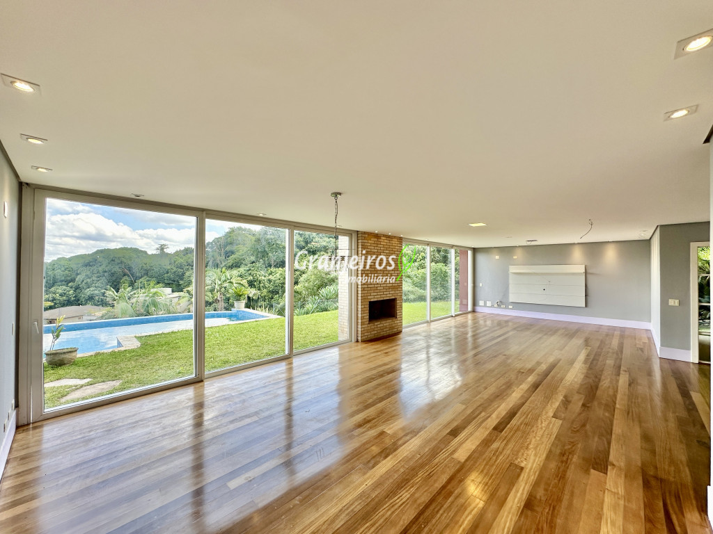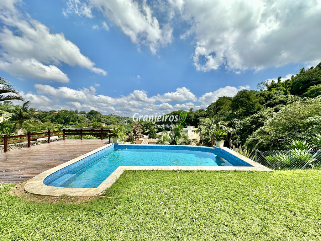 Condomínio residencial fechado, privativo, com poucas casas e muita natureza preservada. Linda casa moderna, com ótimo acabamento e vista deslumbrante. Casa integrada com a área gourmet e lazer. Envidraçada, ensolarada, arejada e muito bem iluminada. Repleta de armários. Pisos em tábuas de madeira, porcelanato e pedra. Portas e janelas alemãs em PVC com vidros temperados. Coifas em aço inox. Louças e metais Deca. 3 entradas: social, lazer e serviço. Hall de entrada social. Escritório, home theather. Living para 3 ambientes com lavabo. Salas de jantar, estar e lareira. Voltadas para o lazer com varanda gourmet e jardim. Varanda gourmet integrada com churrasqueira, coifa, forno de pizza, bancadas e gabinetes. Jardim com paisagismo. Piscina de alvenaria com hidro, borda infinita, solarium e deck. Vestiário. Escada revestida em madeira com guarda cormo em vidro e metal. 4 suítes, sendo 3 com ar condicionado e integradas por um grande terraço panorâmico com guarda corpo de vidro. Banheiros com detalhes em pastilhas, gabinetes, espelhos e box de vidro, sendo a máster com ponto para receber hidro. Copa cozinha com armários planejado, bancada em “U” e despensa. Área de serviço com lavanderia e armários planejados. Suíte de serviço com entrada independente. Garagem para 5 vagas, sendo 3 cobertas. Aquecimento: Boiler solar com suporte elétrico. Abastecimento de água: Sabesp. Permuta: Estuda proposta por imóvel com liquidez em São Paulo, Granja Viana ou Jundiaí.