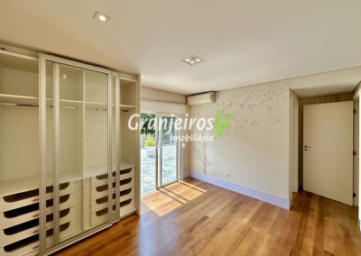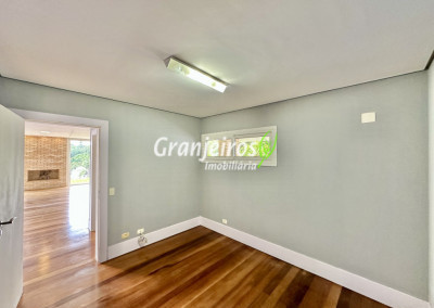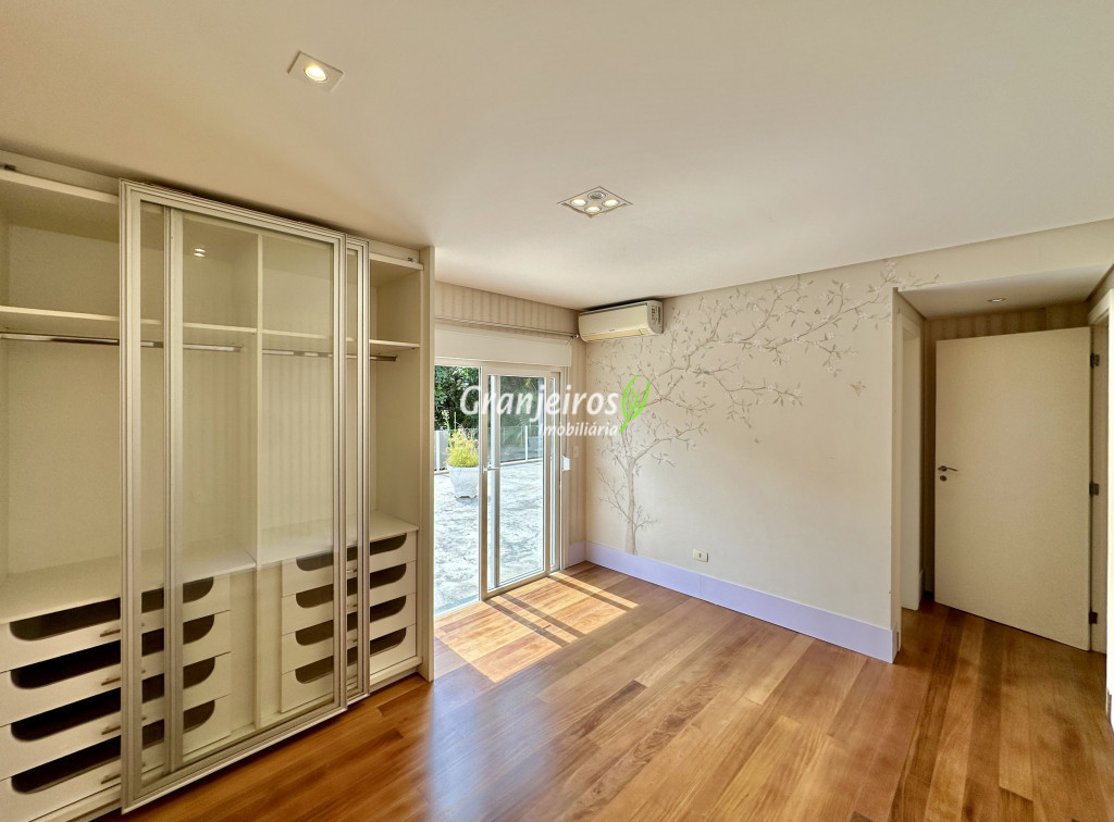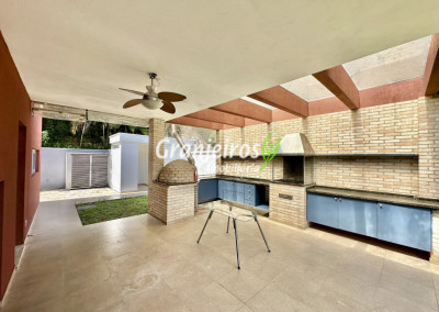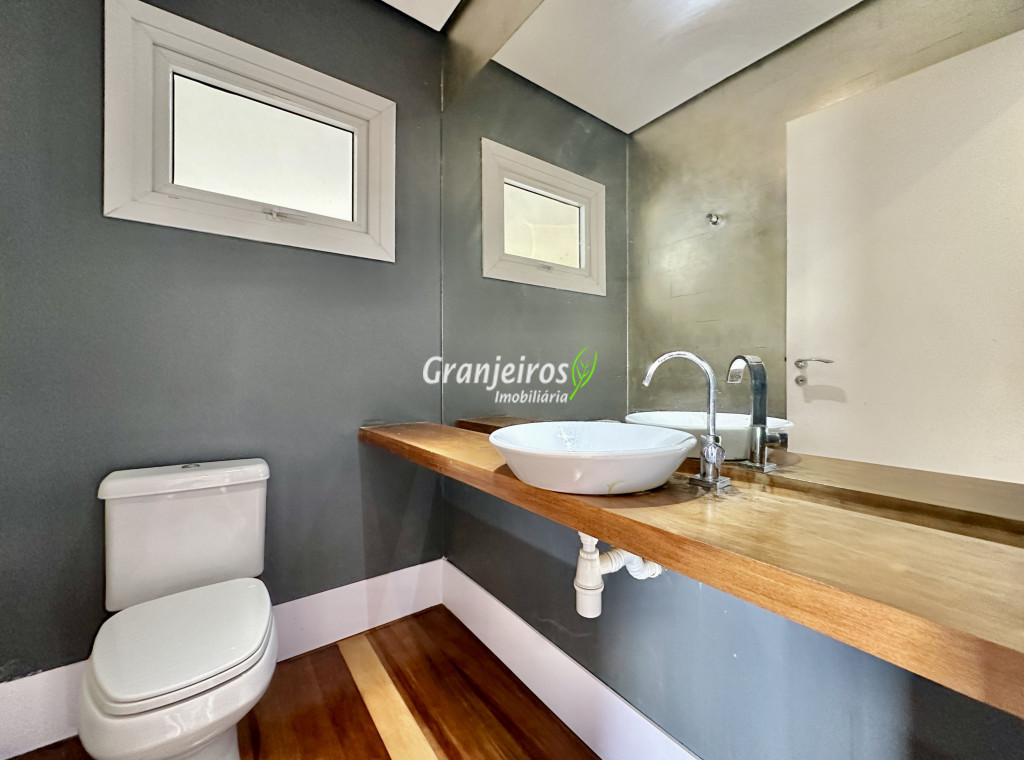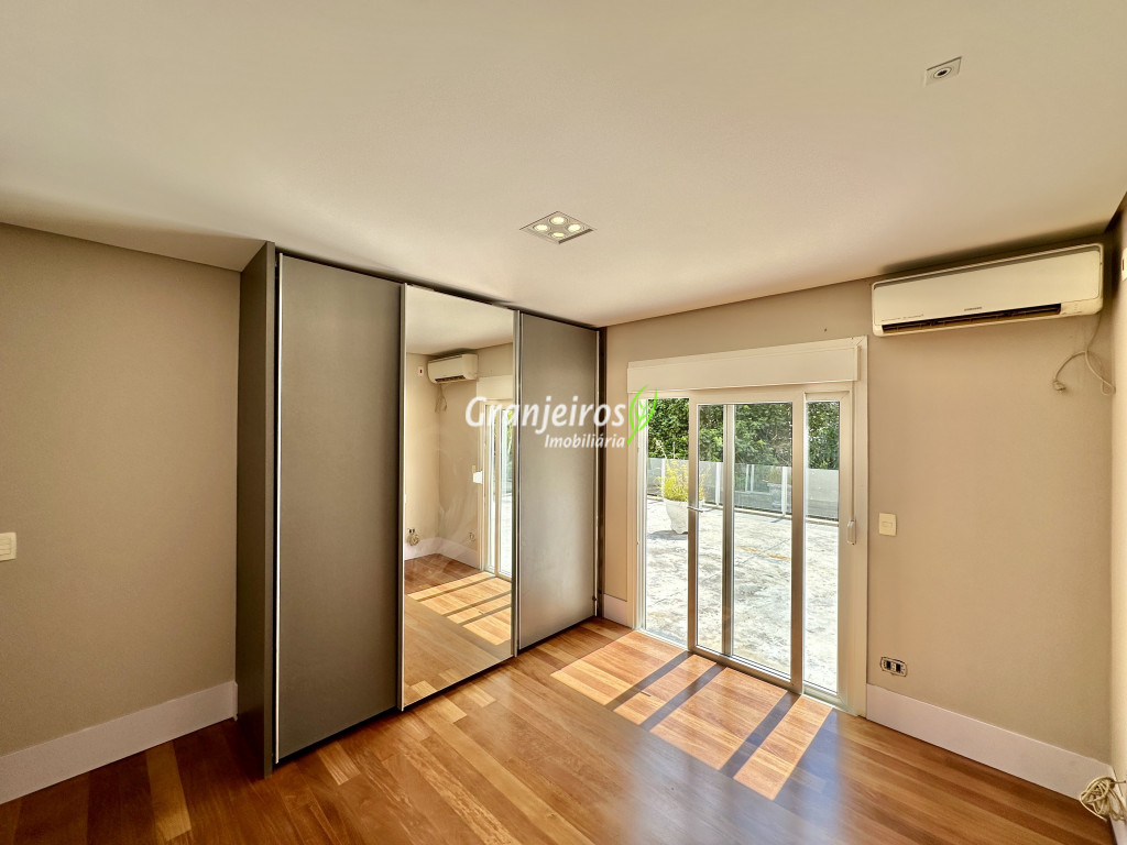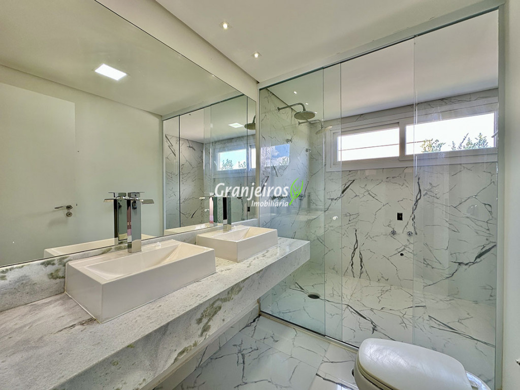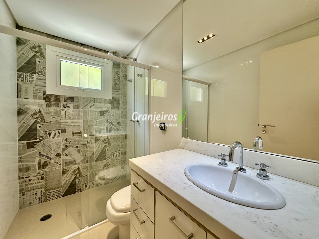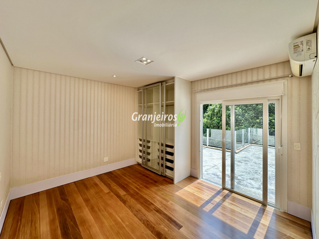Condomínio residencial fechado, privativo, com poucas casas e muita natureza preservada. Linda casa moderna, com ótimo acabamento e vista deslumbrante. Casa integrada com a área gourmet e lazer. Envidraçada, ensolarada, arejada e muito bem iluminada. Repleta de armários. Pisos em tábuas de madeira, porcelanato e pedra. Portas e janelas alemãs em PVC com vidros temperados. Coifas em aço inox. Louças e metais Deca. 3 entradas: social, lazer e serviço. Hall de entrada social. Escritório, home theather. Living para 3 ambientes com lavabo. Salas de jantar, estar e lareira. Voltadas para o lazer com varanda gourmet e jardim. Varanda gourmet integrada com churrasqueira, coifa, forno de pizza, bancadas e gabinetes. Jardim com paisagismo. Piscina de alvenaria com hidro, borda infinita, solarium e deck. Vestiário. Escada revestida em madeira com guarda cormo em vidro e metal. 4 suítes, sendo 3 com ar condicionado e integradas por um grande terraço panorâmico com guarda corpo de vidro. Banheiros com detalhes em pastilhas, gabinetes, espelhos e box de vidro, sendo a máster com ponto para receber hidro. Copa cozinha com armários planejado, bancada em “U” e despensa. Área de serviço com lavanderia e armários planejados. Suíte de serviço com entrada independente. Garagem para 5 vagas, sendo 3 cobertas. Aquecimento: Boiler solar com suporte elétrico. Abastecimento de água: Sabesp. Permuta: Estuda proposta por imóvel com liquidez em São Paulo, Granja Viana ou Jundiaí.